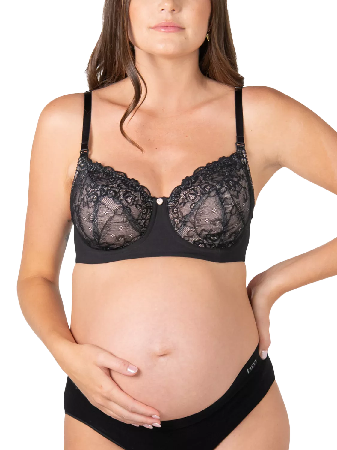 Temptation is the lace maternity and nursing bra that delivers everything—elegance, lift, and serious breastfeeding support. Crafted with luxurious lace and cotton-lined cups, it’s made for mamas who want full coverage, a secure flexiwire fit, and all-day confidence. From pregnancy to postpartum, its convertible racerback and high support up to a J cup make it a must-have plus-size nursing bra for fuller busts.