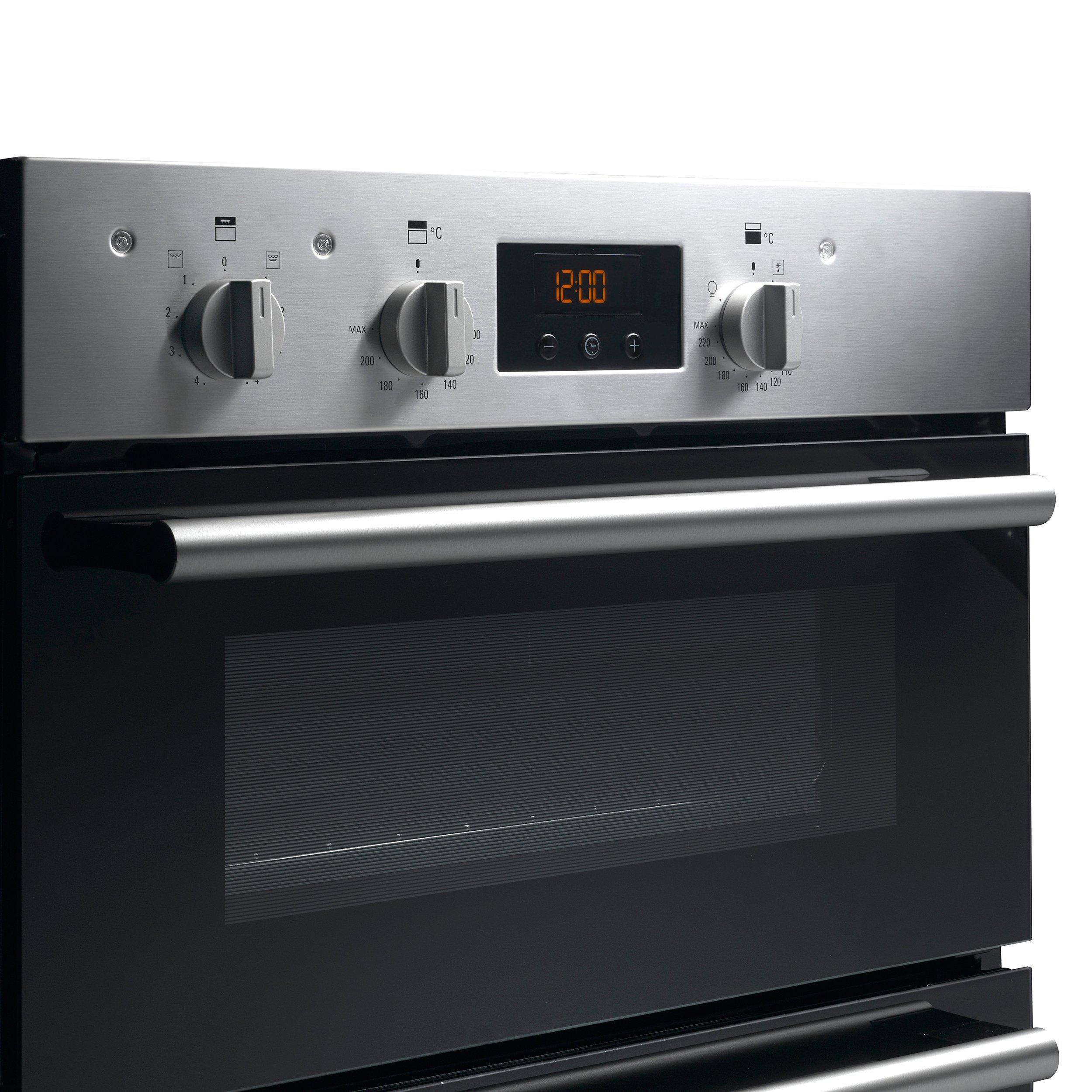 With a 74-litre capacity in the main, multifunctional oven and a 42-litre capacity in the smaller top oven, you'll have plenty of space for your favourite dishes. Use the double oven to cook separate dishes at different temperatures. For example, use the special Circulaire fan function in the main cavity for even cooking and the slow cook function for casseroles in the upper oven. It has a handy defrost mode and a clock and digital timer.