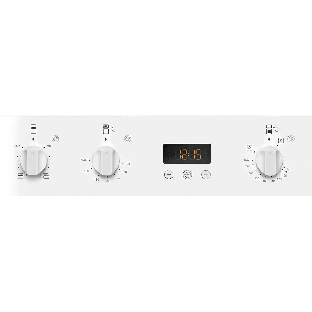 The top oven features conventional cooking and has a twin variable grill, the half grill option providing a solution for small portions with maximum performance. Cleaning the Hotpoint DH53WS is straightforward too, thanks to enamel linings, while double-glazed doors provide peace of mind. Finally, the 24 hour electronic programmable timer offers added convenience and flexibility when cooking.