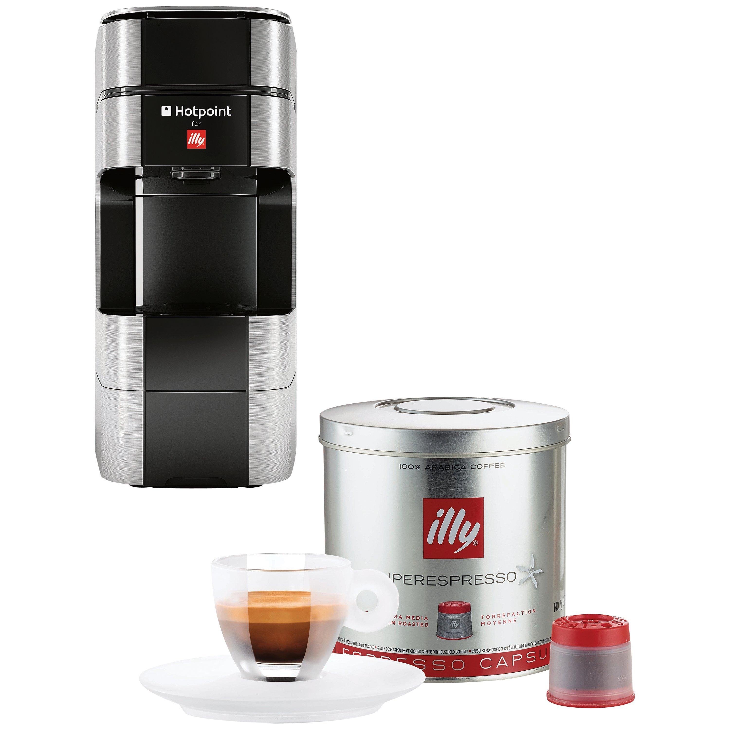 Enjoy the perfect espresso coffee at home with this Hotpoint for Illy coffee machine. It uses Illy coffee capsules to brew your drink and comes in an attractive glossy finish that will look amazing on your kitchen counter. It creates short, powerful espressos as well as larger lungos and along with 19 bar pump pressure, it’ll serve them in moments.