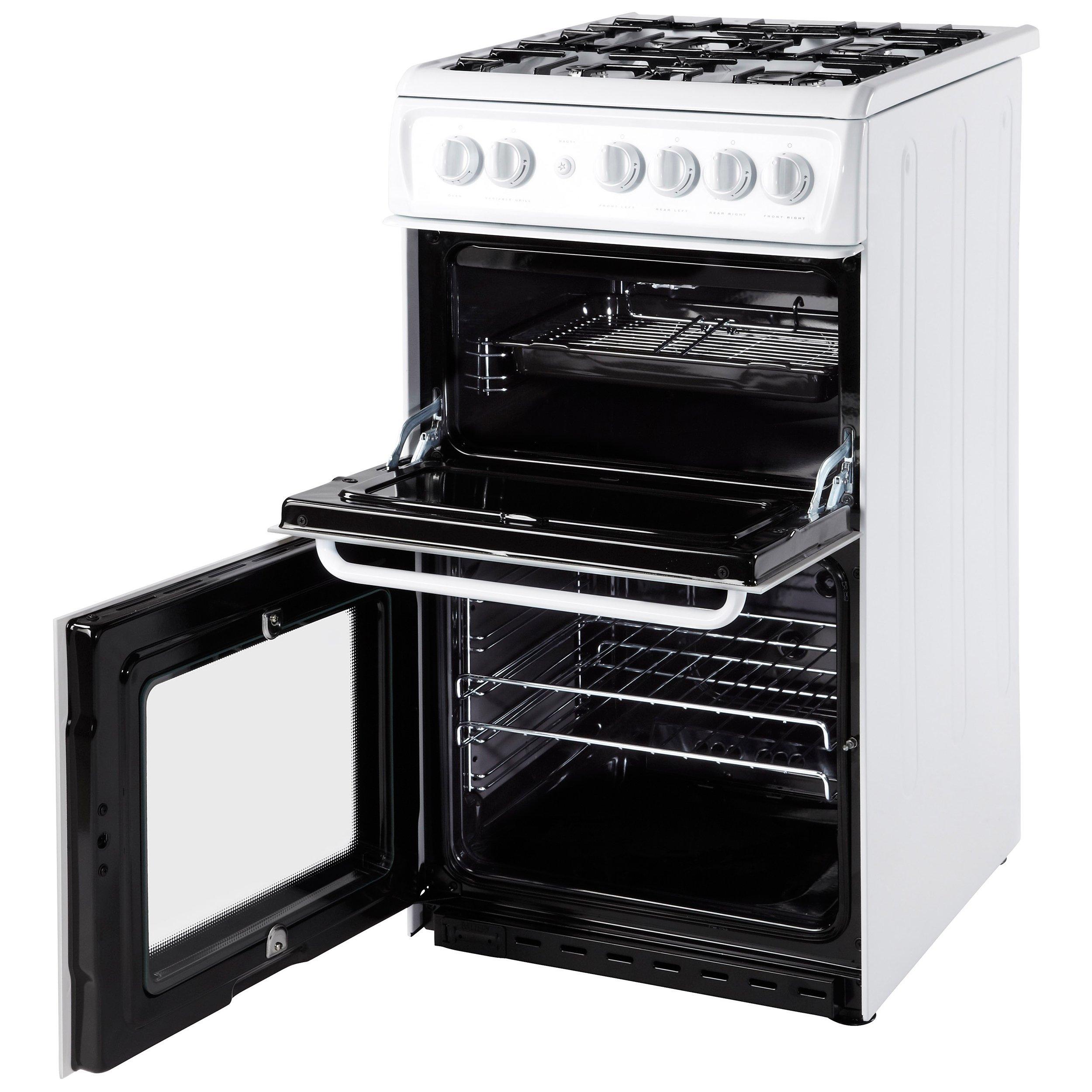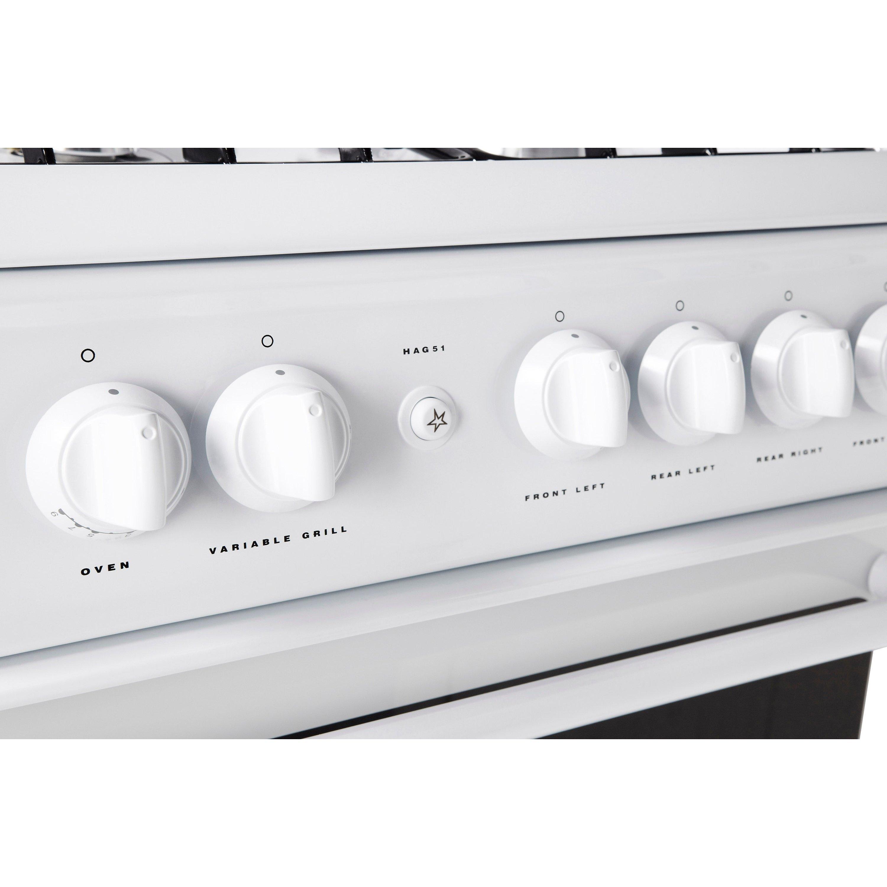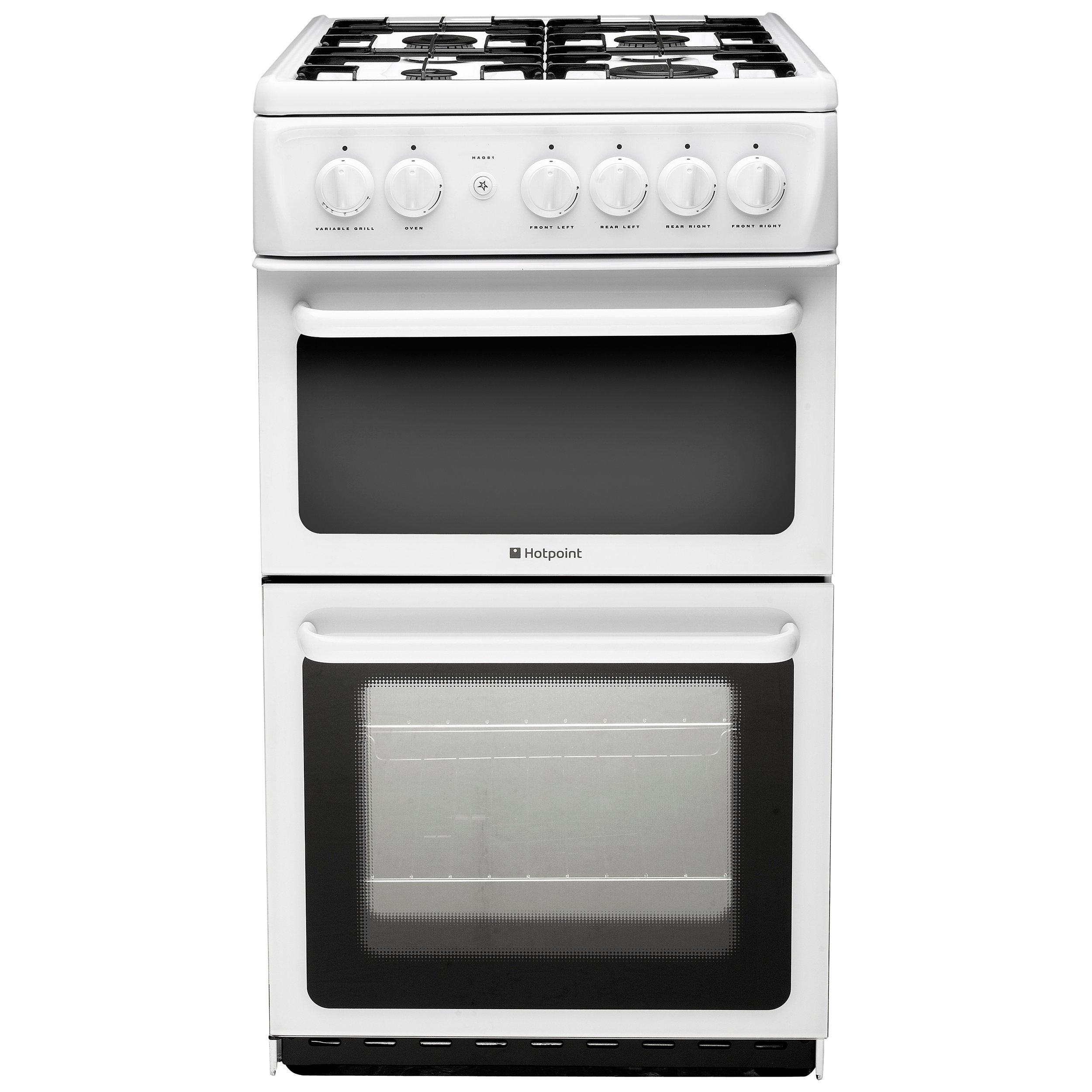 The Hotpoint HAG51P is a neat white slot-in gas oven and at 50cm wide it's perfect if space is at a premium.