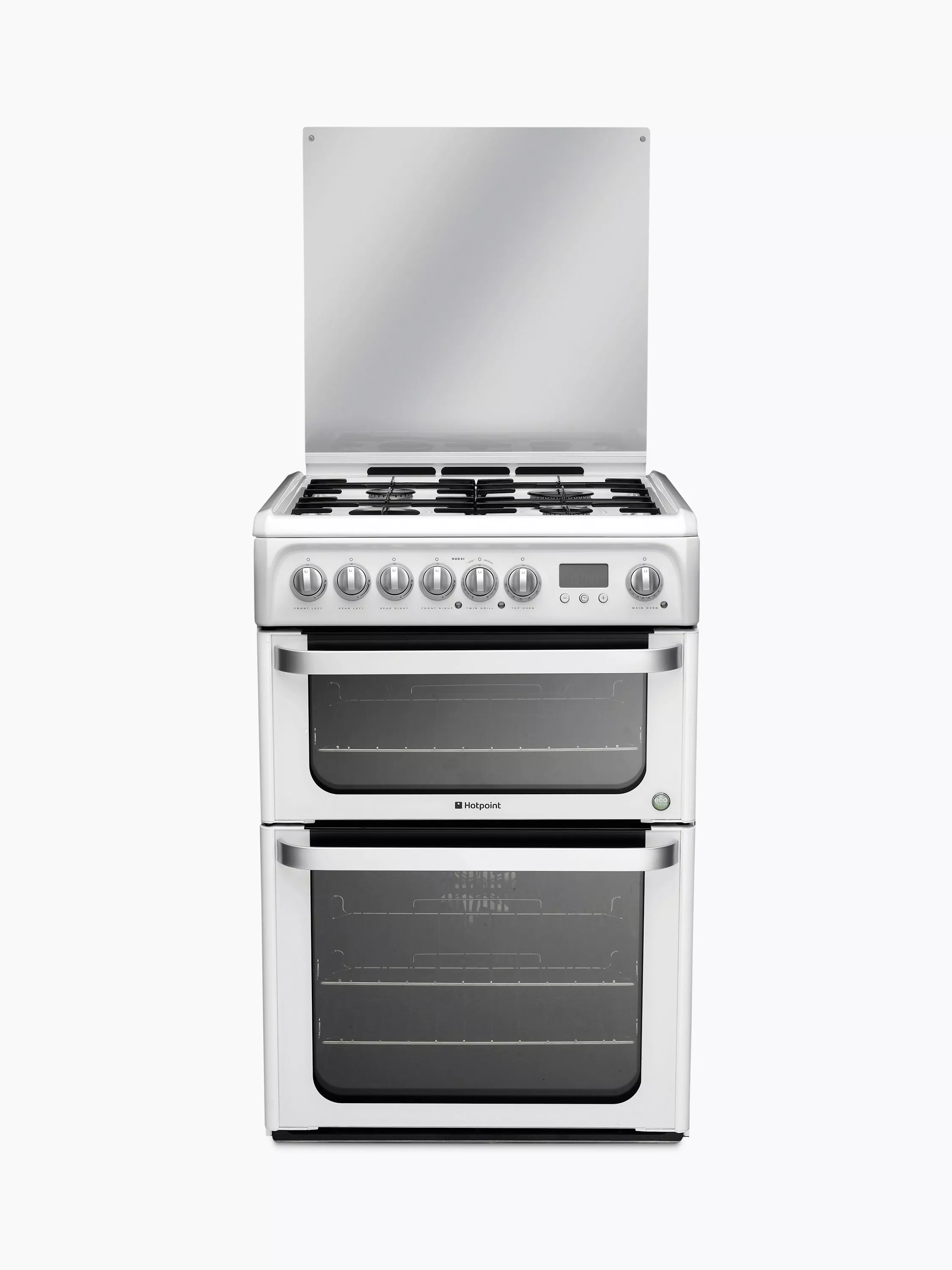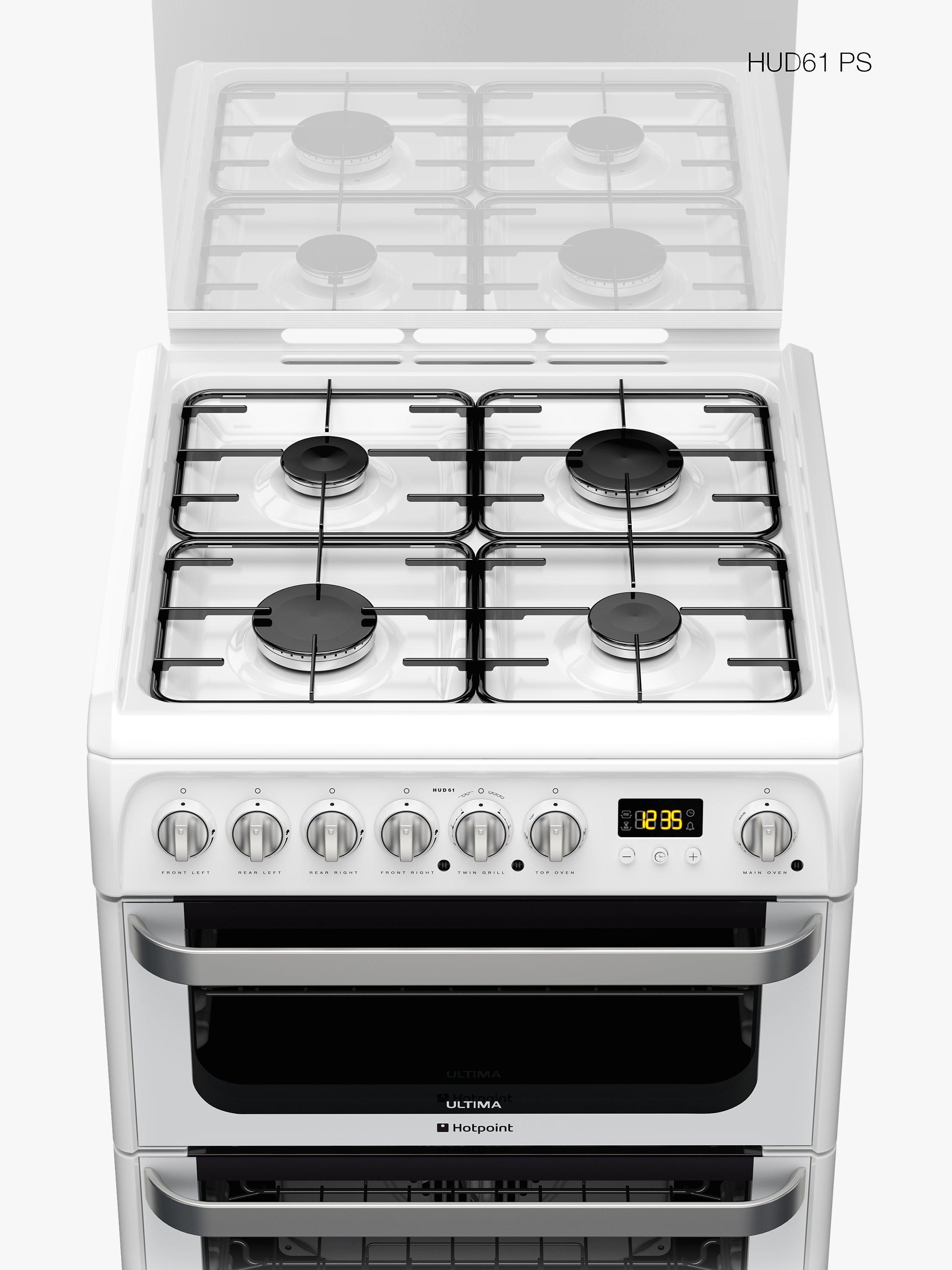 For a sleek and stylish dual fuel cooker, look no further than the pristine white Hotpoint HUD61PS. With a width of just 60cm, this cooker is perfect for those whose kitchen space is at a premium.