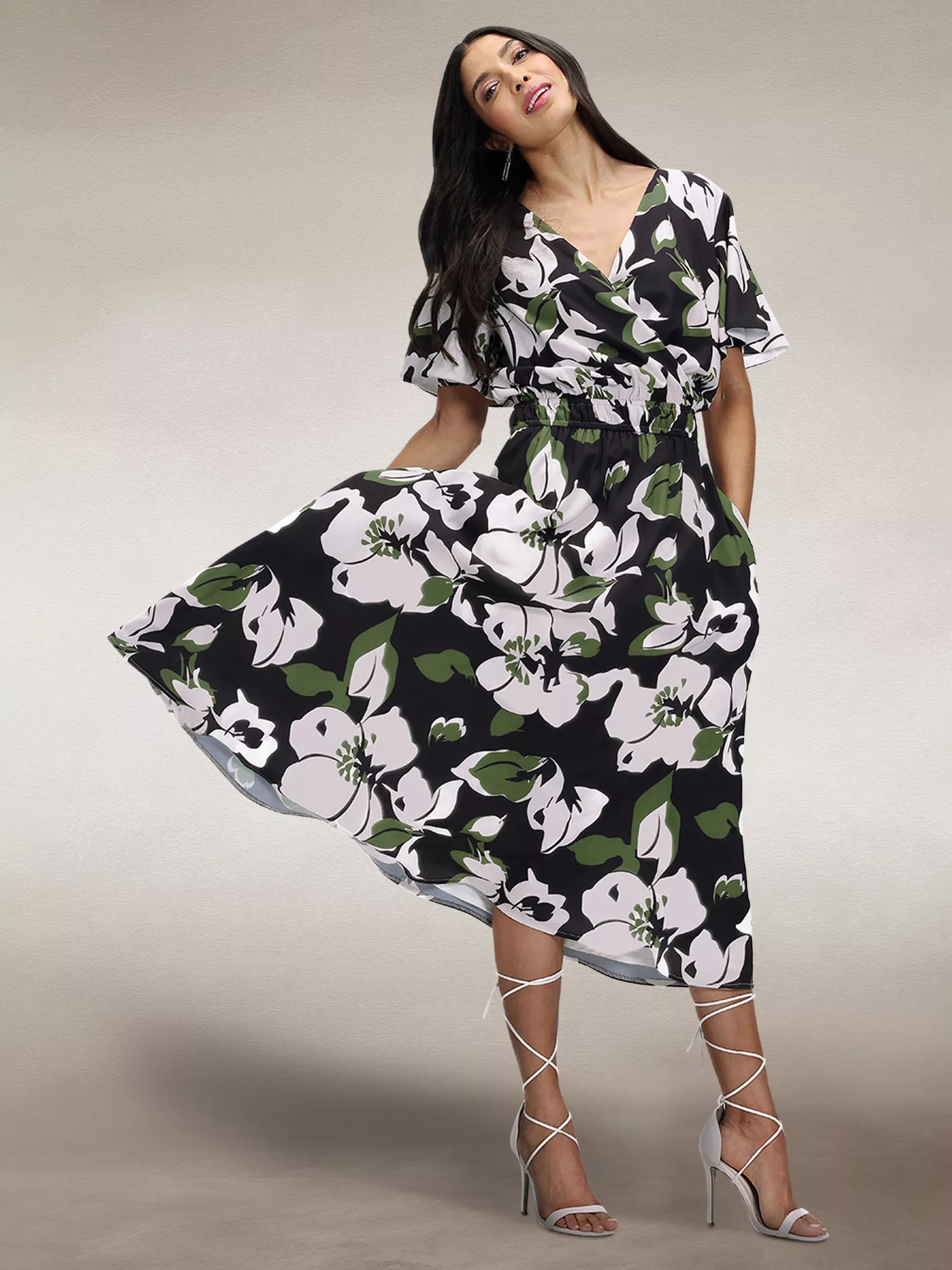 HotSquashChiffon Flared Midi Dress, Green/White
