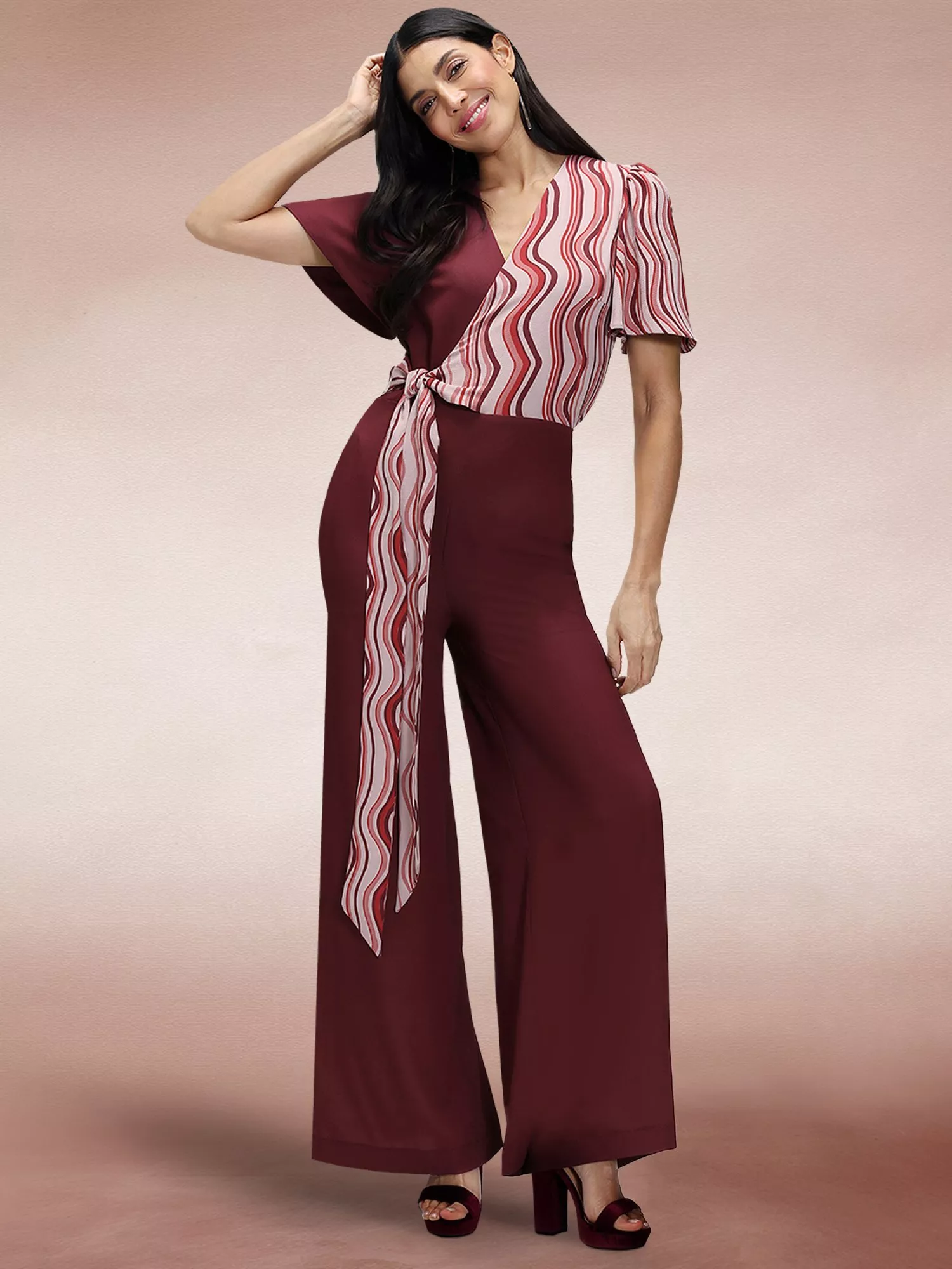 HotSquashOverwrap Printed Jumpsuit, Burgundy