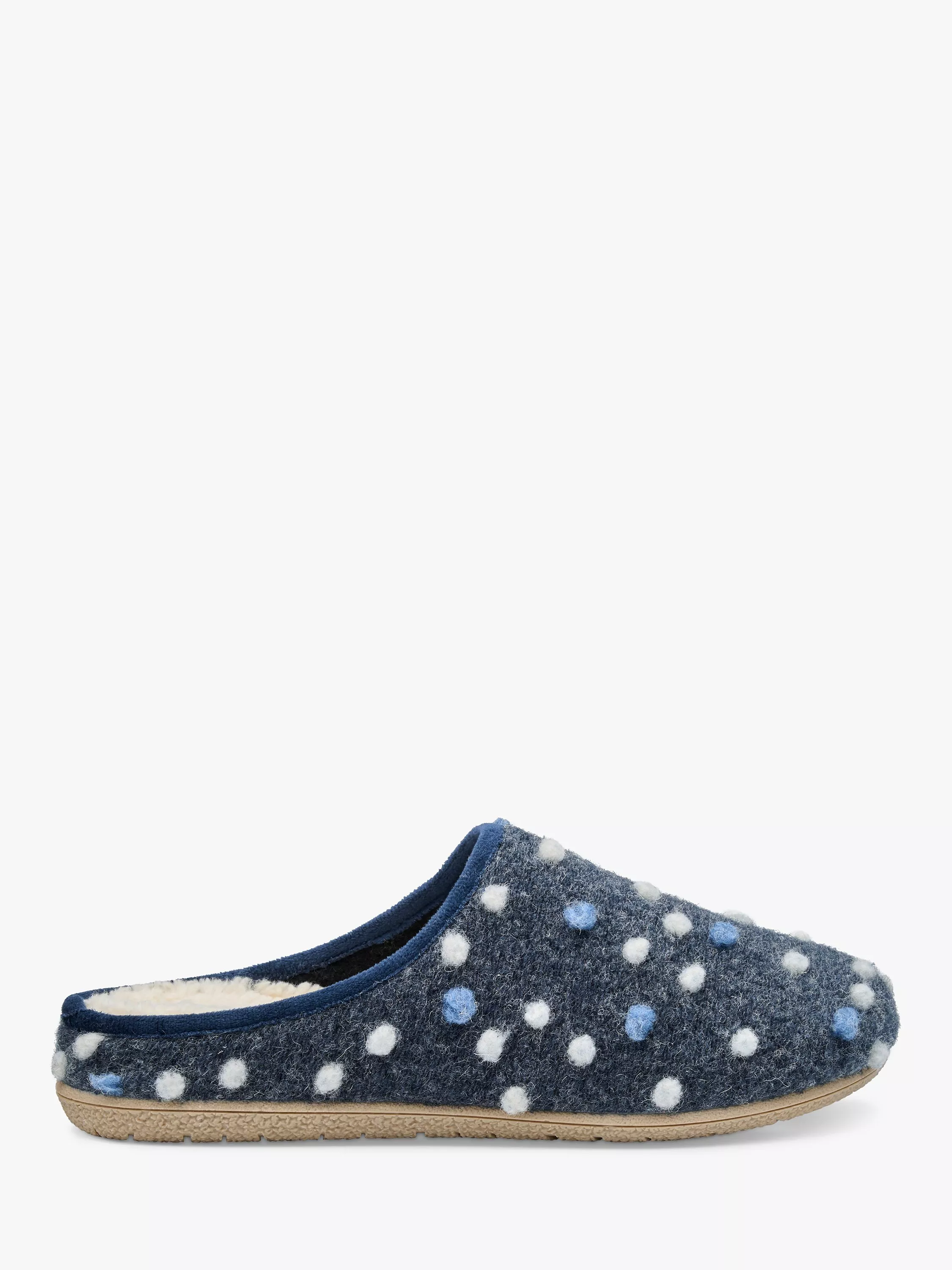 A practical choice for unwinding at home, these pretty backless slippers from Hotter are designed with a faux shearling insole, contrasting spotty detailing and crafted from recycled felt. A comfortable, cosy favourite.