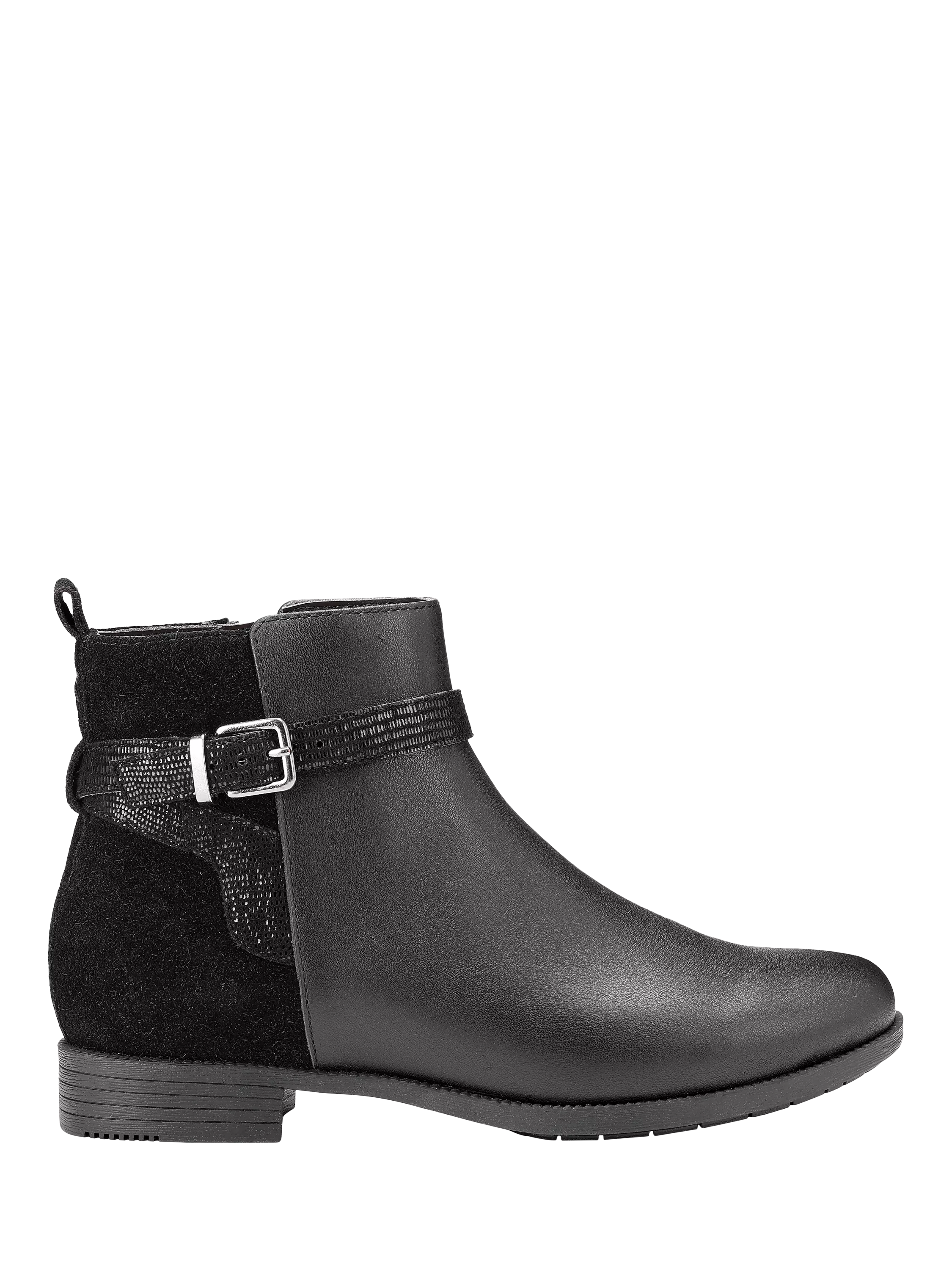 Meet Haydock, a chic ankle boot that blends smart style with sophistication. Crafted from smooth leather and suede with animal effect accents and a decorative buckle strap, it features a convenient inner zip for easy wear.