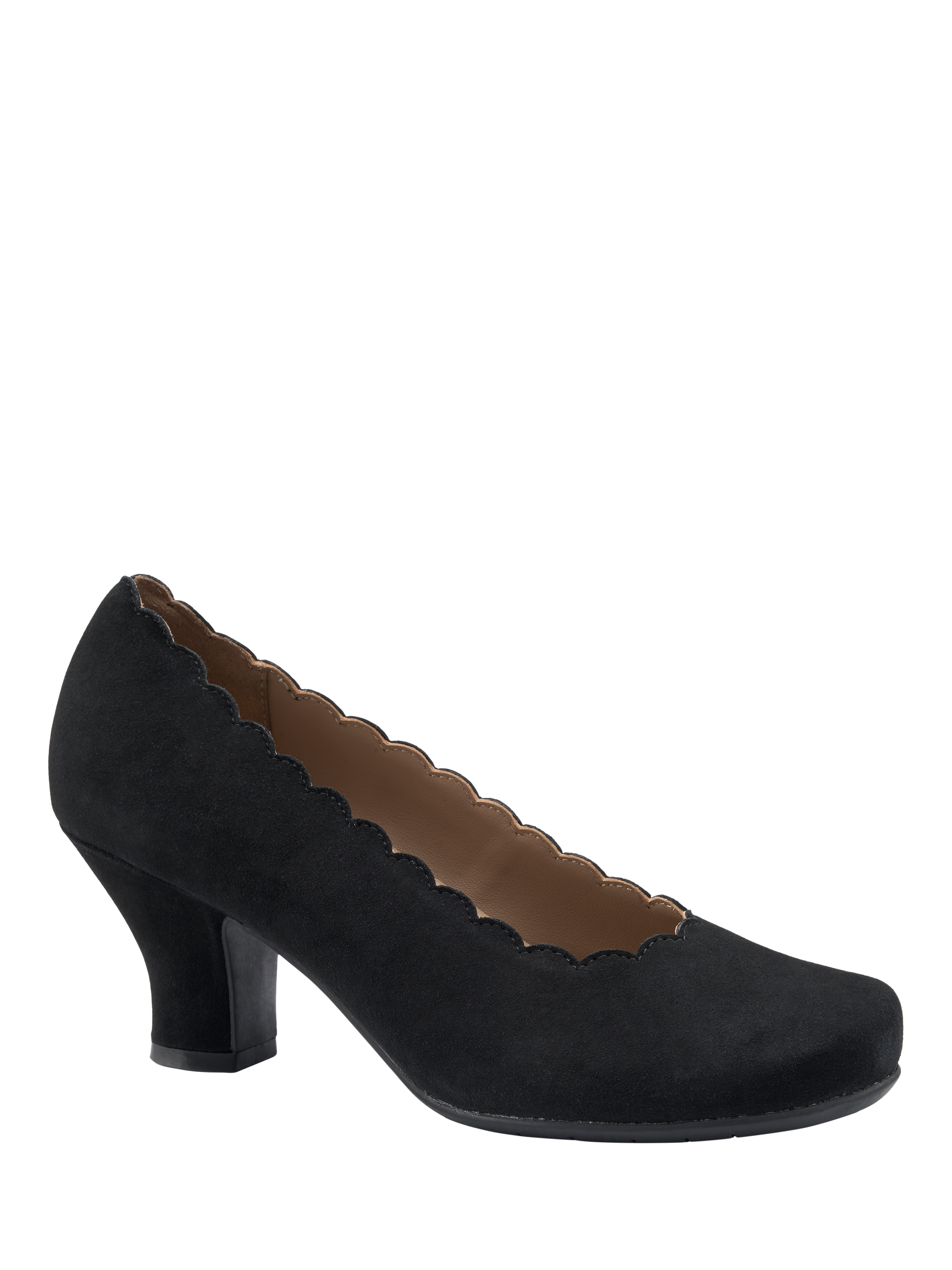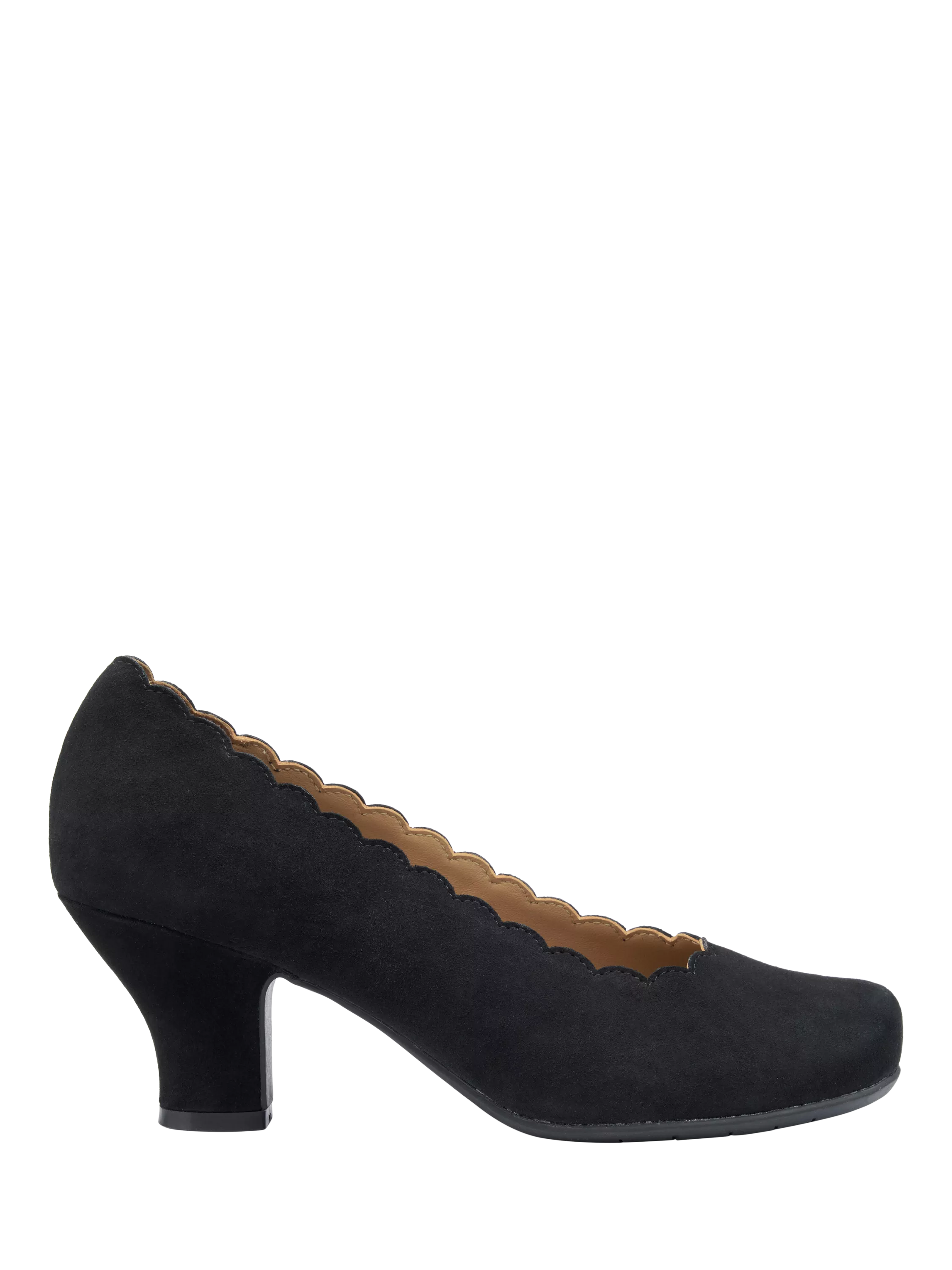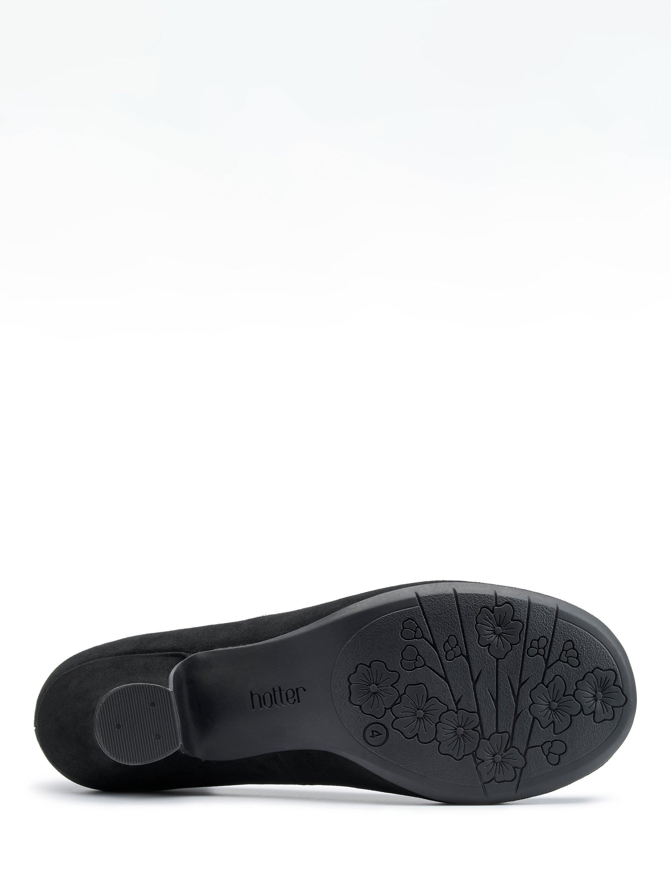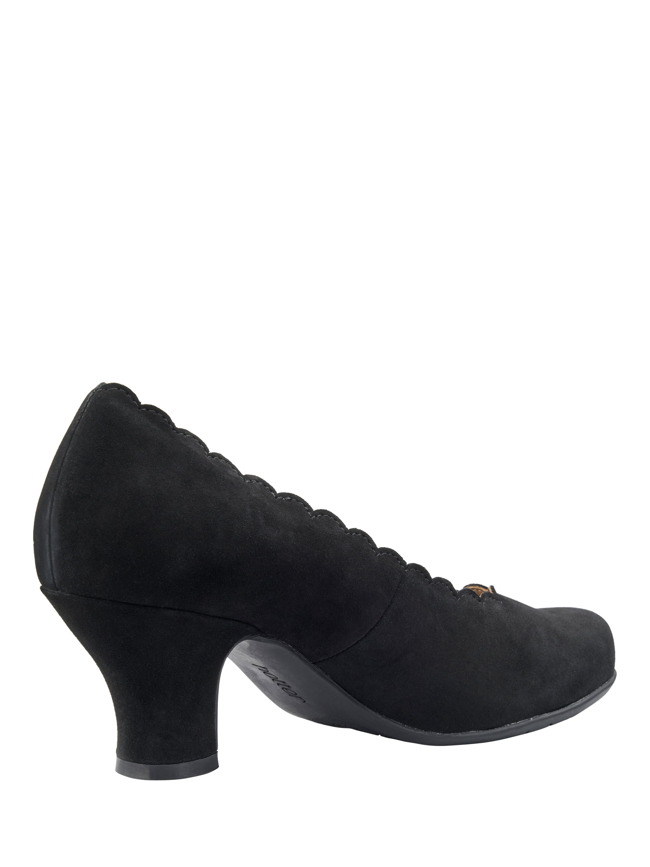 The ultimate in stalwart style, this pair of wide fit vintage-inspired courts from Hotter is crafted from a smooth suede for quality that lasts. Set on a covered block heel with a soft spacious rounded toe, they're finished with chic scalloped detailing.
