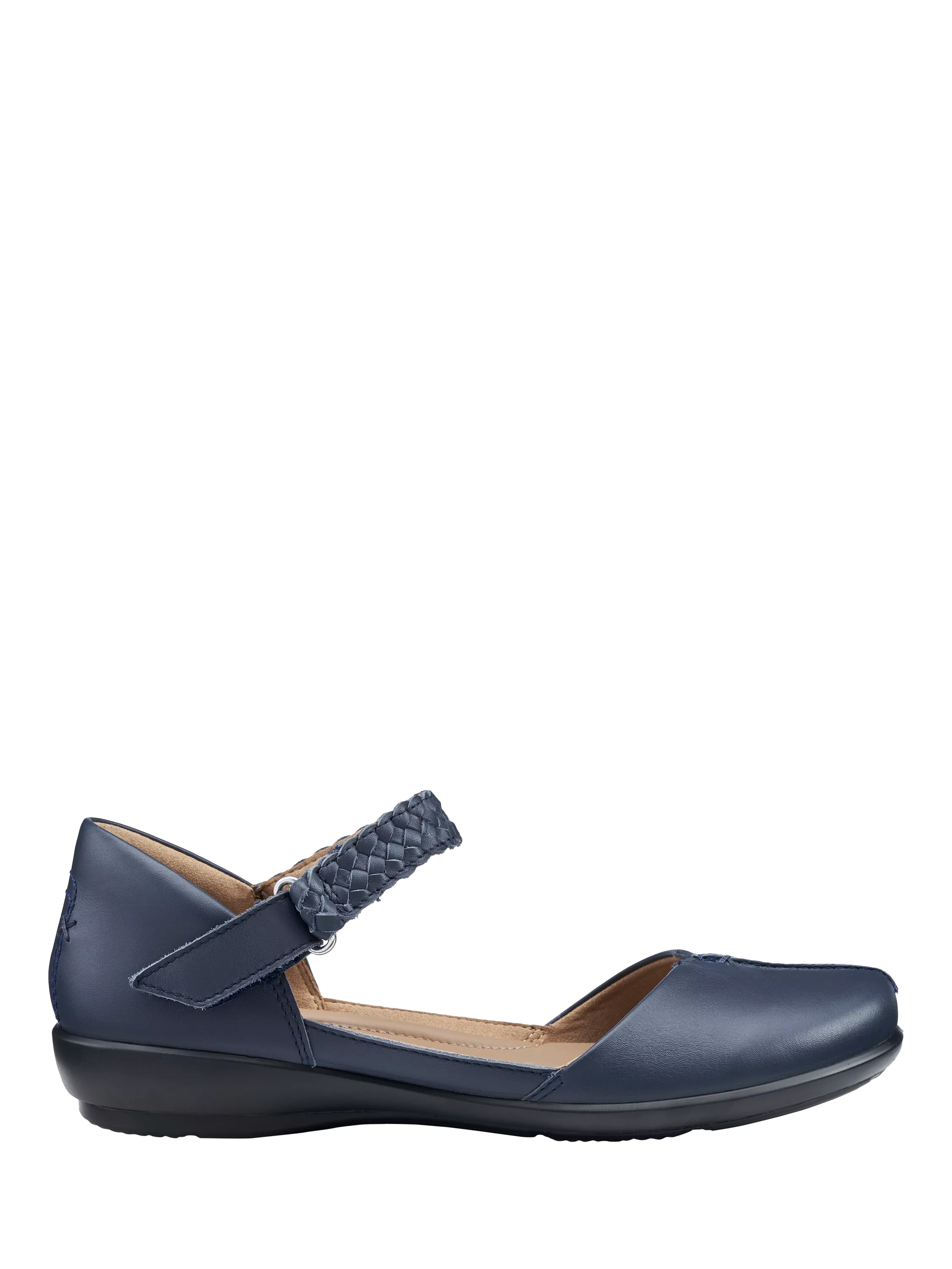 The perfect, breathable flat for long summer days, with a leather covered OrthoLite® foam insole for underfoot cushioning and Cushion+ for energy return. Consider Lake as your sandal inspired casual shoe, with a covered toe and padded heel for support. All finished with stylish stitch detailing and soft leathers, as well as an adjustable woven touch close fastening strap.
