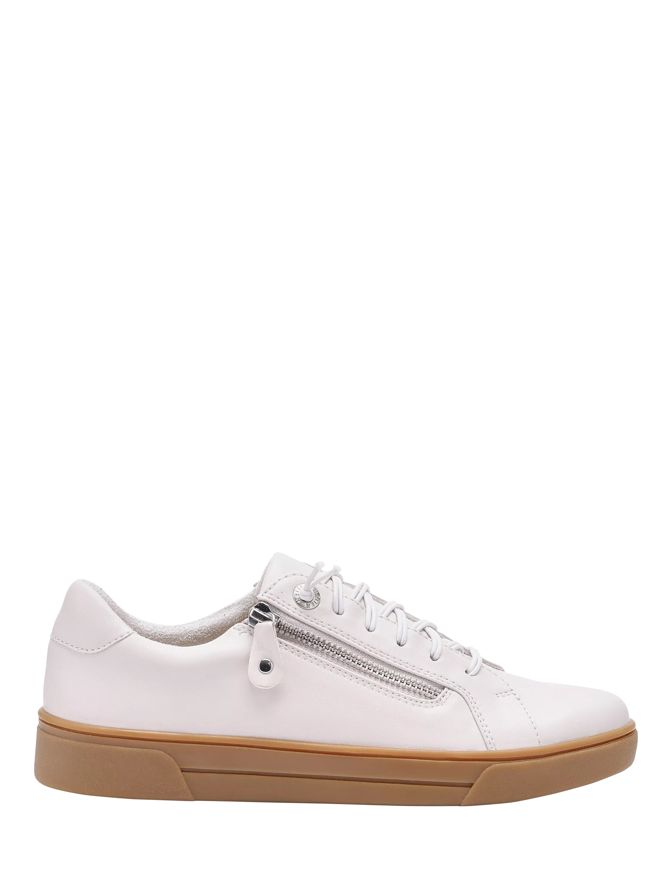 This versatile trainer by Hotter, with a soft-to-touch textile lining, will soon become an everyday favourite in your wardrobe. Enjoy flexibility with every step thanks to elastic laces and a secure fit with a handy side zip fastening. Supple uppers, soft insoles and contrasting rubber sole make this style a dream to wear.