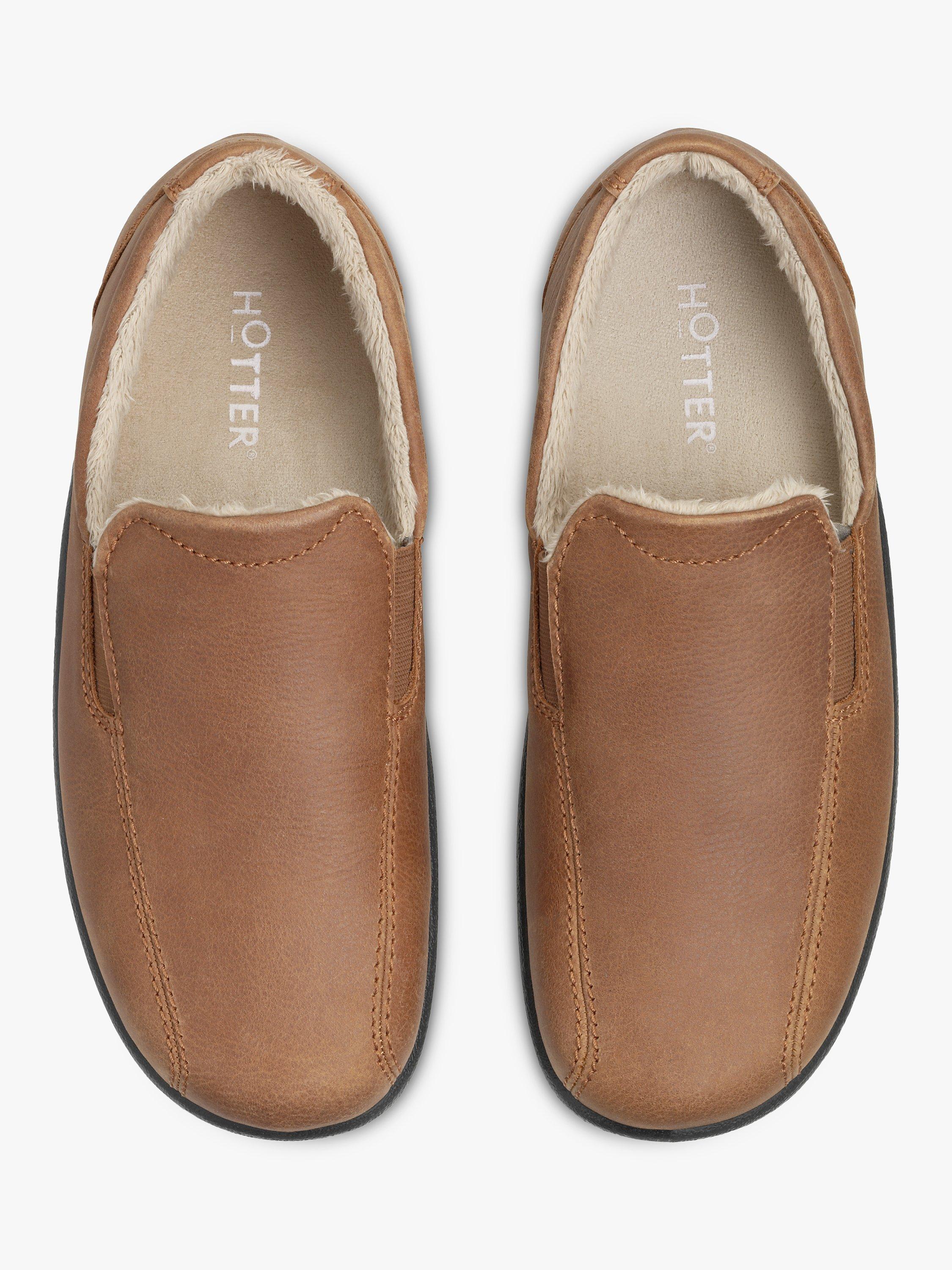 Slipping on with ease for relaxing at home, these slippers by Hotter are made from leather for comfort and quality that you can rely on.
