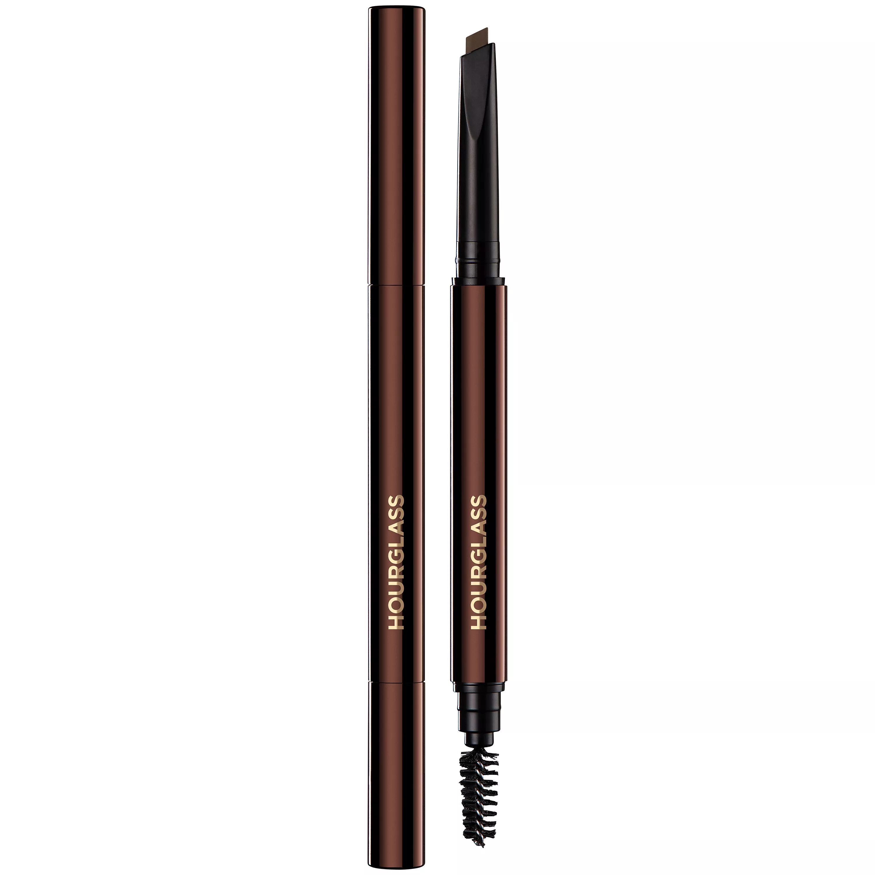 Sleek double-ended component has a brush to blend and groom brows into place.