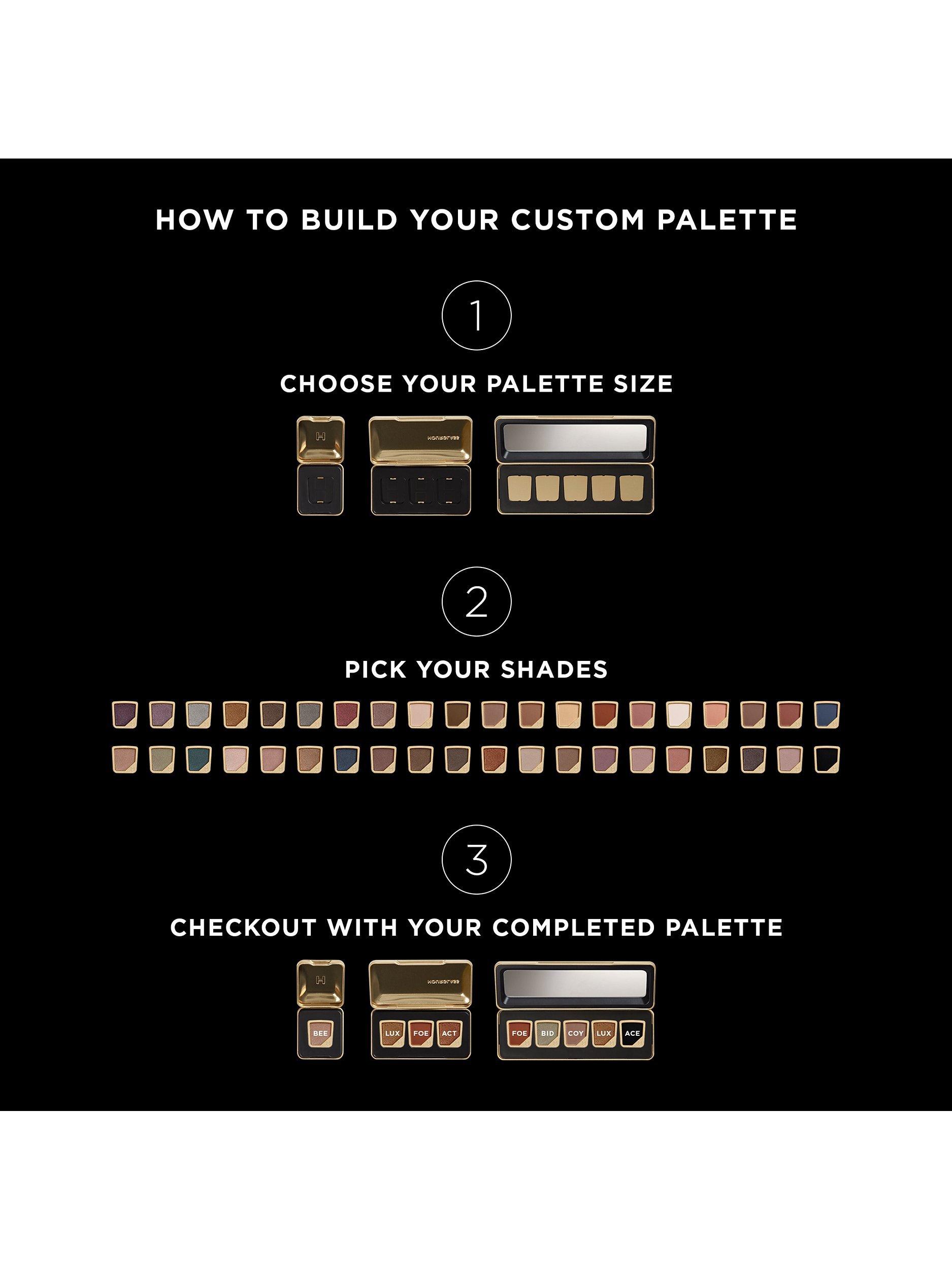 A customisable, 100% vegan eyeshadow collection featuring pressed powder shades across 4 finishes to achieve a limitless range of looks. The shades range from neutral to vivid in an array of matte, satin, metallic, and shimmer finishes.