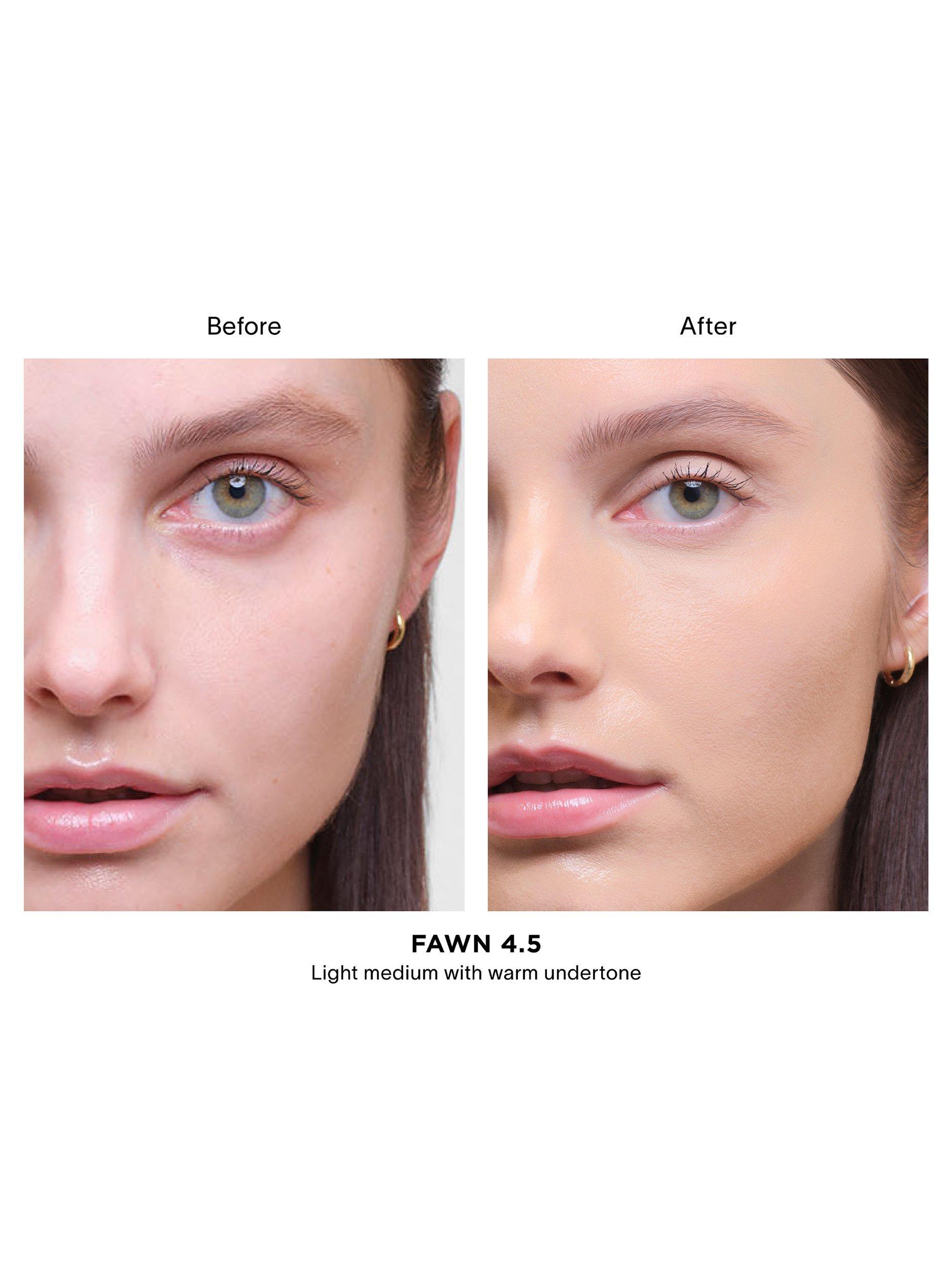 A weightless liquid concealer that instantly delivers full, undetectable coverage with an airbrushed finish. This long-wearing, crease-resistant and waterproof formula hides imperfections while blurring and evening the complexion. Innovative microspherical powders diffuse across pores, fine lines and wrinkles, reflecting light to smooth the skin’s appearance. With a high concentration of pigment, it gives maximum results with minimal product. Skin looks natural, brightened and refreshed, from morning until night.