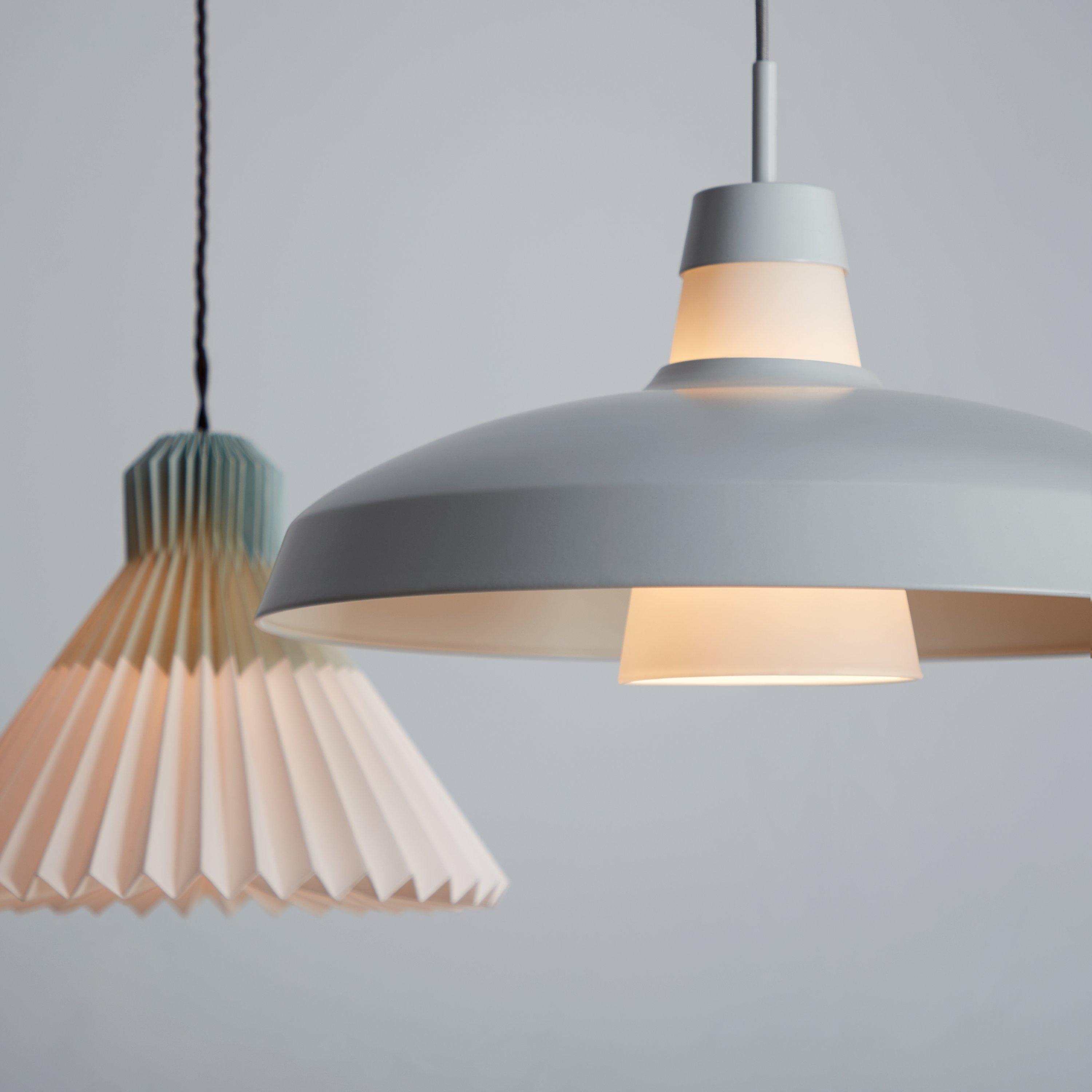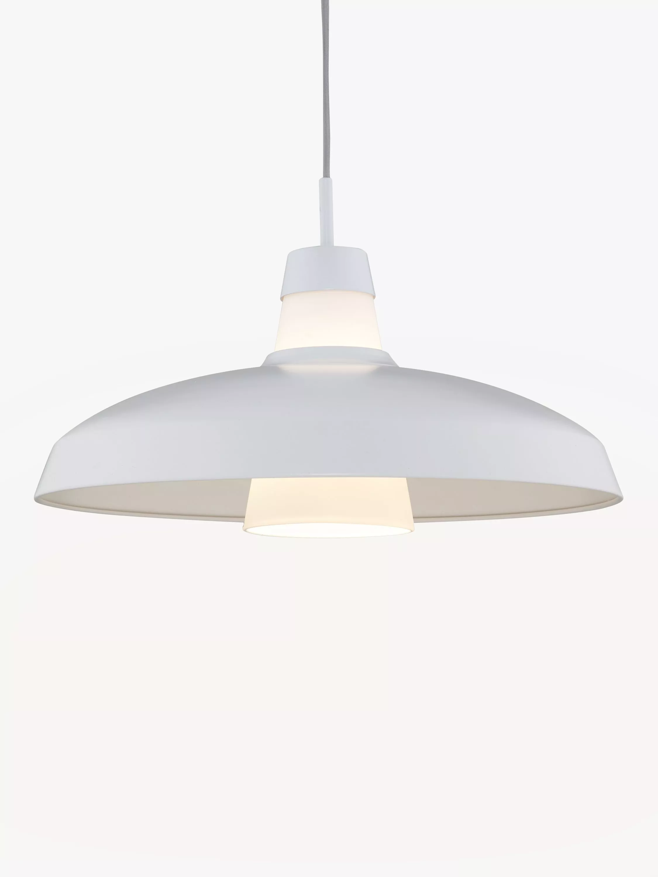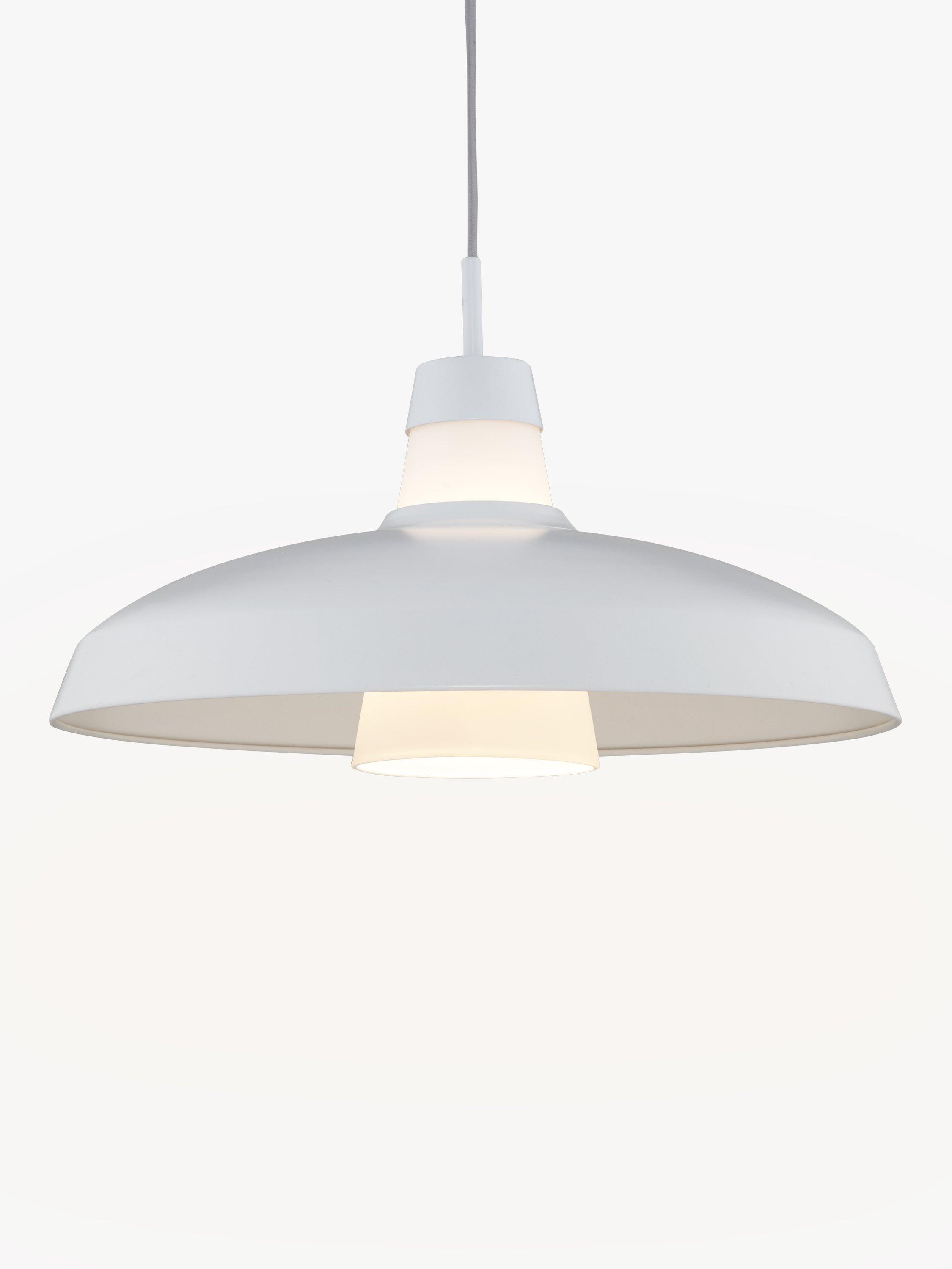 The light is softly diffused through the matt opal duplex glass shade, on top of which sits a second shade, finished in matte white paint for a beautiful contrast. Hanging from a braided flex, the height is adjustable. This stylish pendant is ideal to hang over breakfast bars, kitchen islands or dining tables.