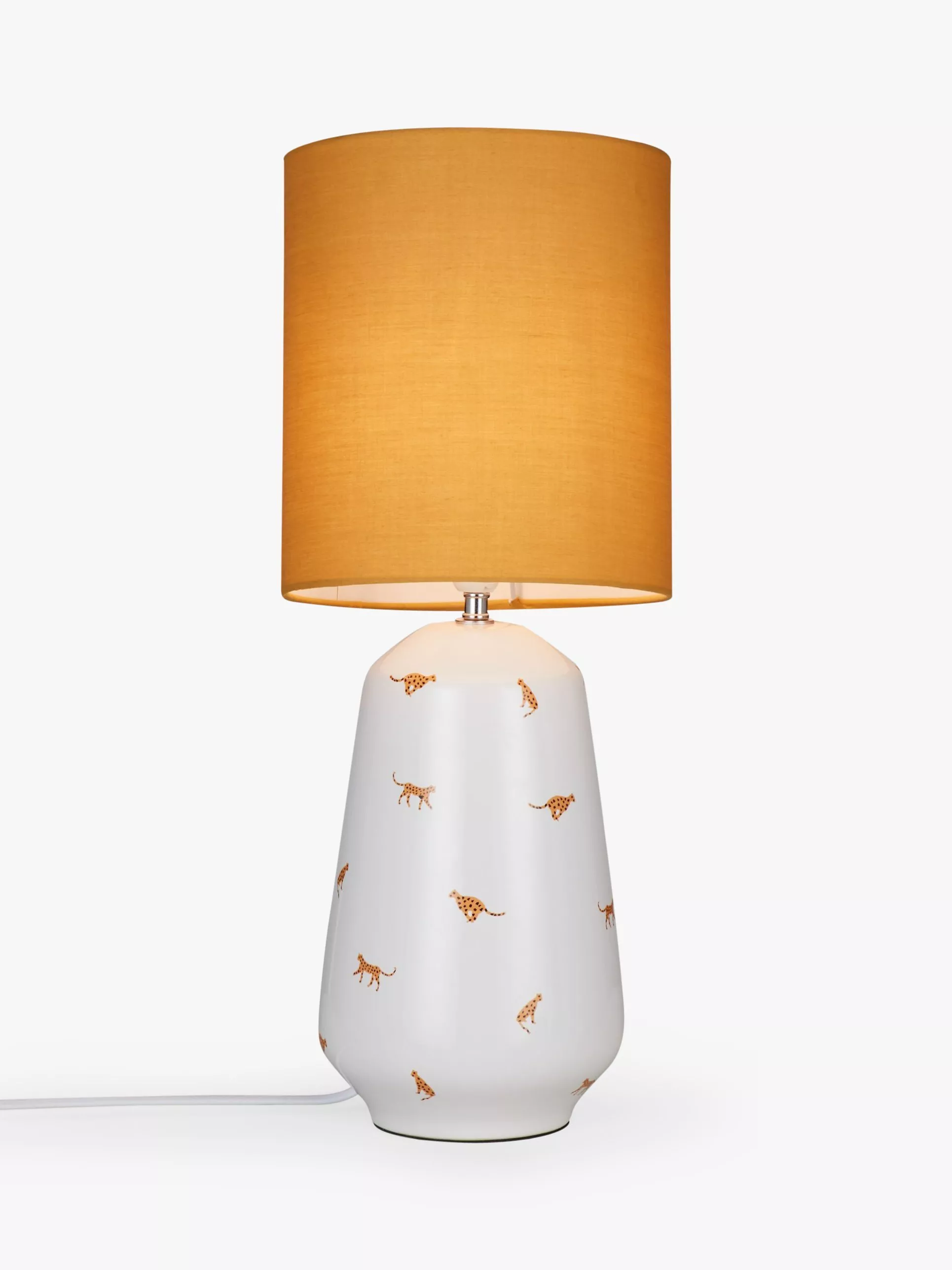 Light up your space with our playful Cheetah table lamp. Boasting a sturdy ceramic base that's finished with a smart glaze, it's teamed with a fabric lampshade that coordinates well with its considered painted cheetah pattern.
