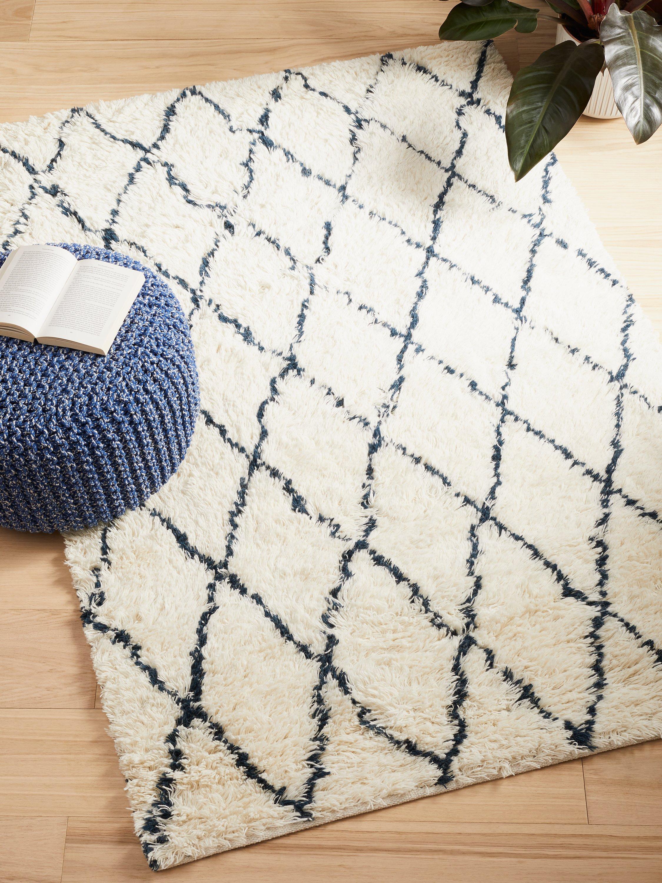 Opt for a modern touch with the Berber Rug which is offered in a contemporary diamond design and crafted from 100% wool.