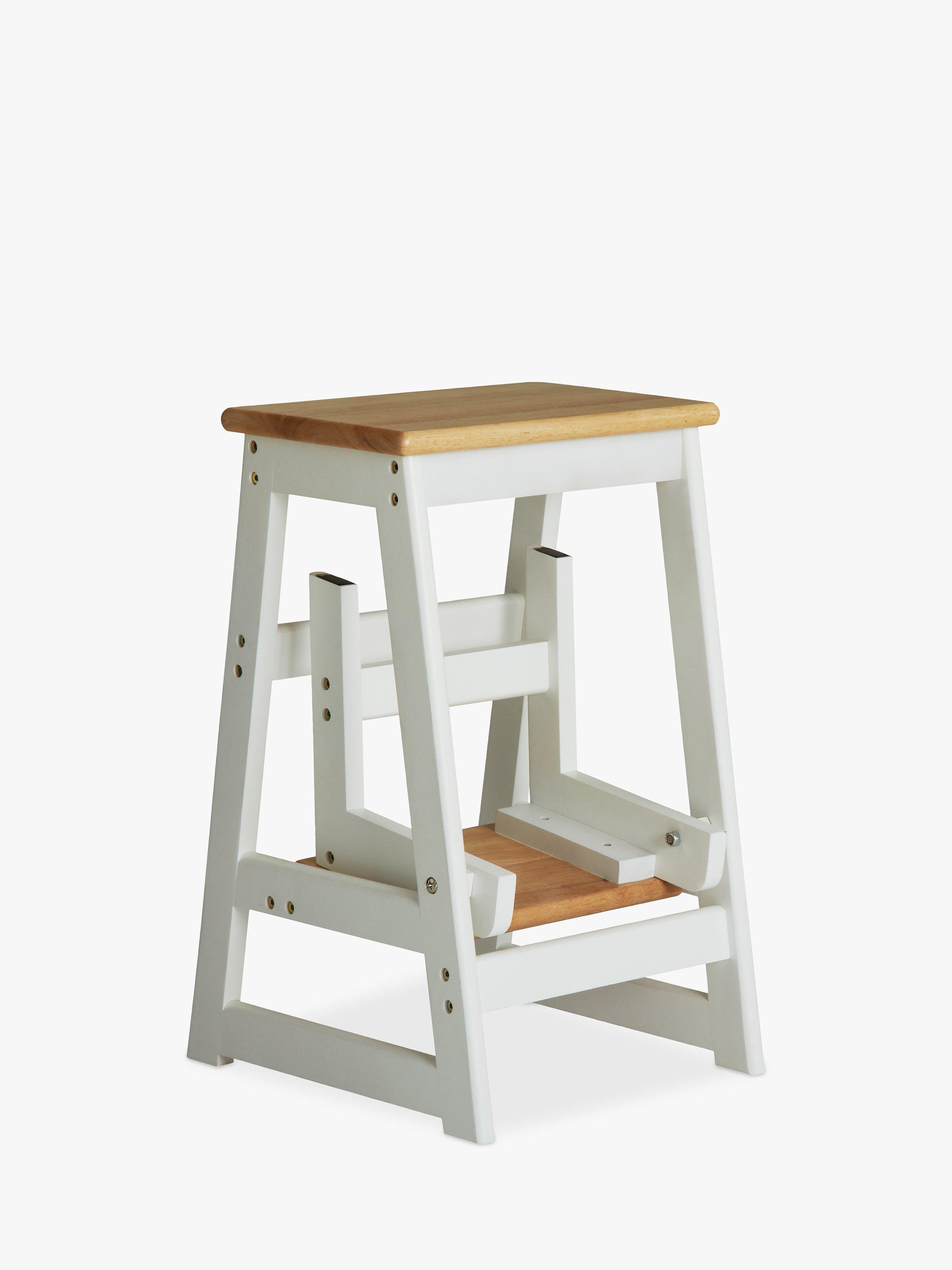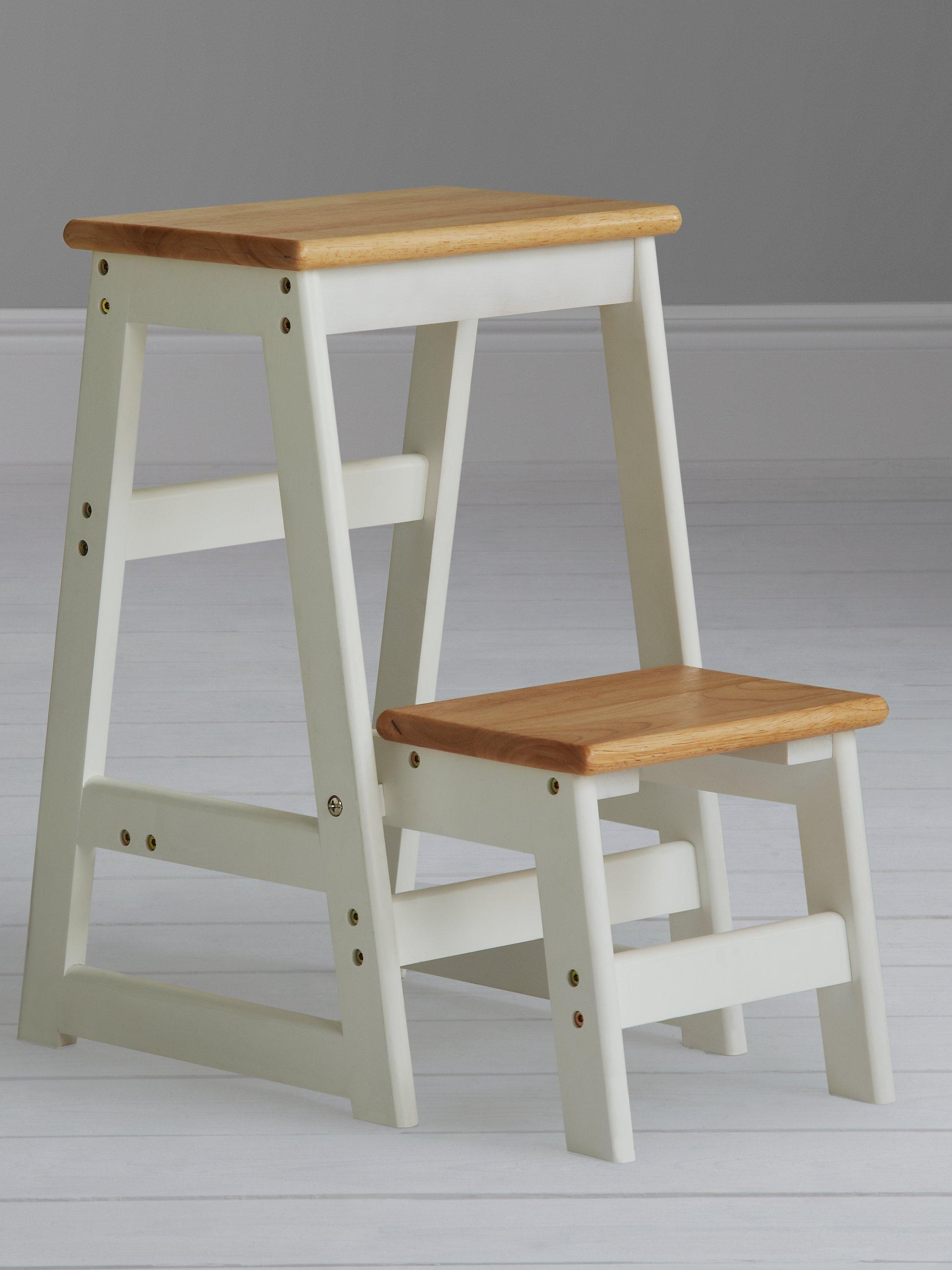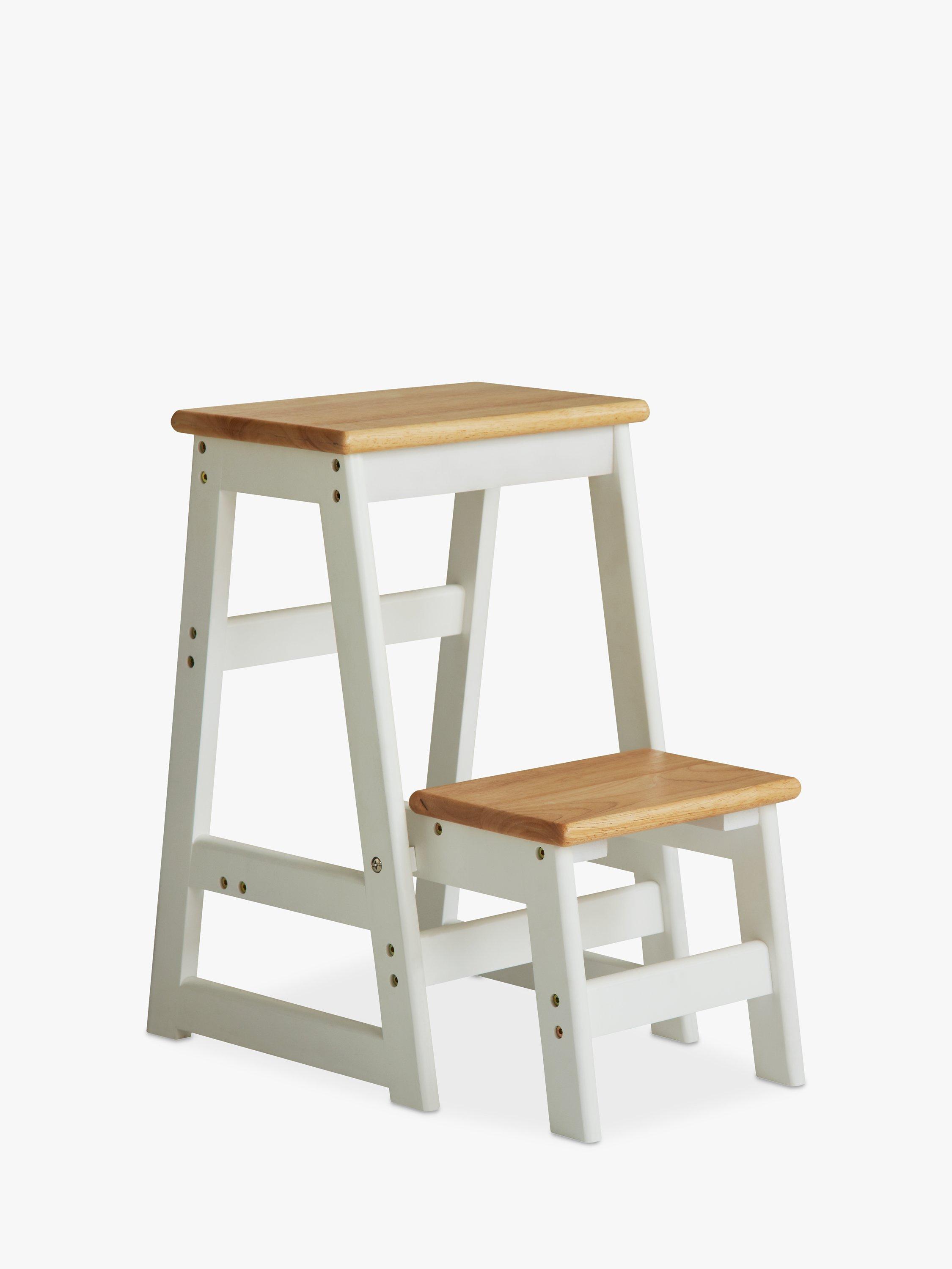 Crafted from sturdy wood, it features painted legs and natural steps, with a fold-in lower step for easy storage.