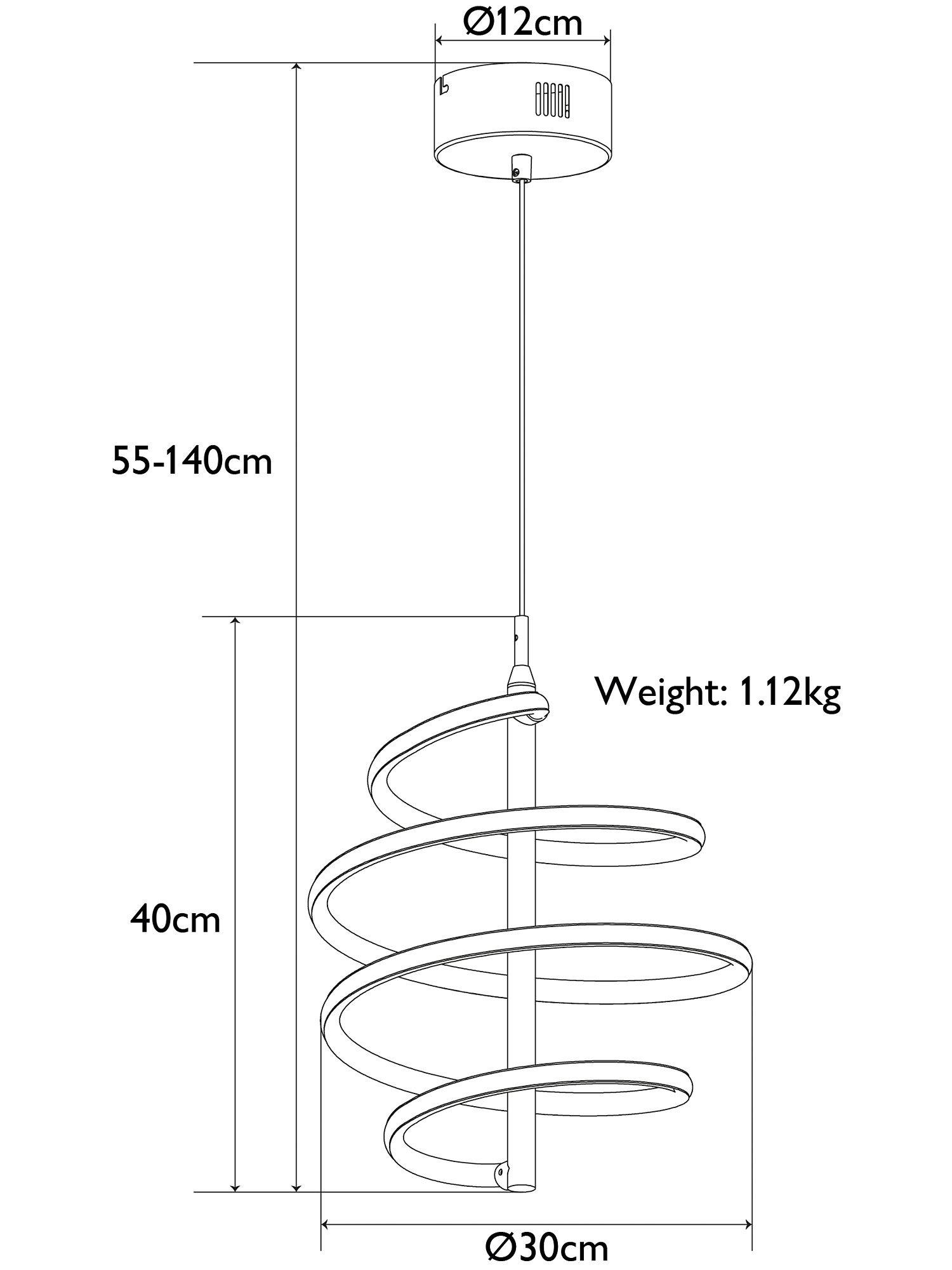 For a brighter, more focused lighting style at home, opt for this Spiral LED ceiling pendant. The sculpted spiral is designed with a continuous integrated LED strip of light that complements the painted, matt-finished metal centre. Ideal for modern interiors, its minimalist design provides striking illumination and the plastic ceiling cable is adjustable so it can be installed at your preferred height.