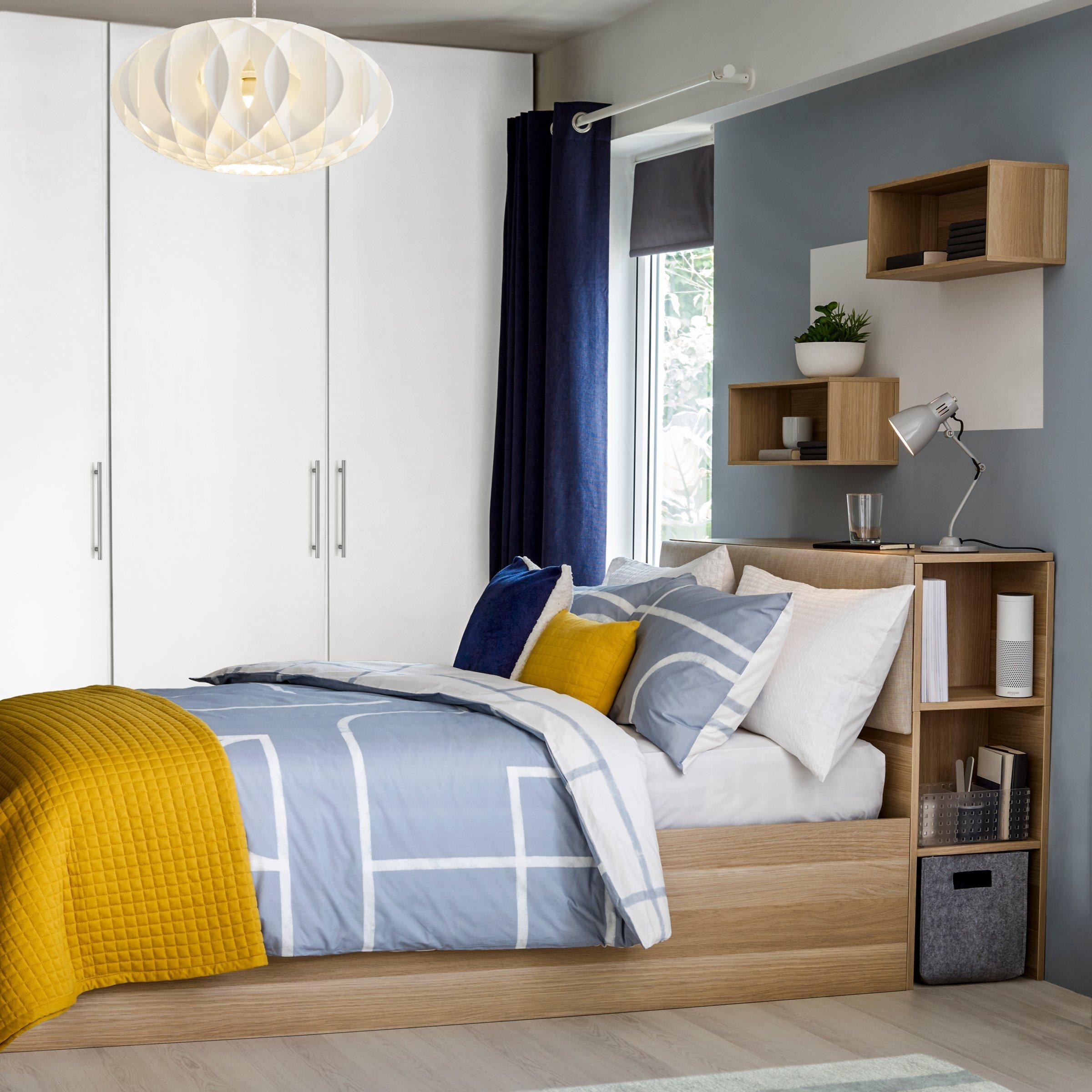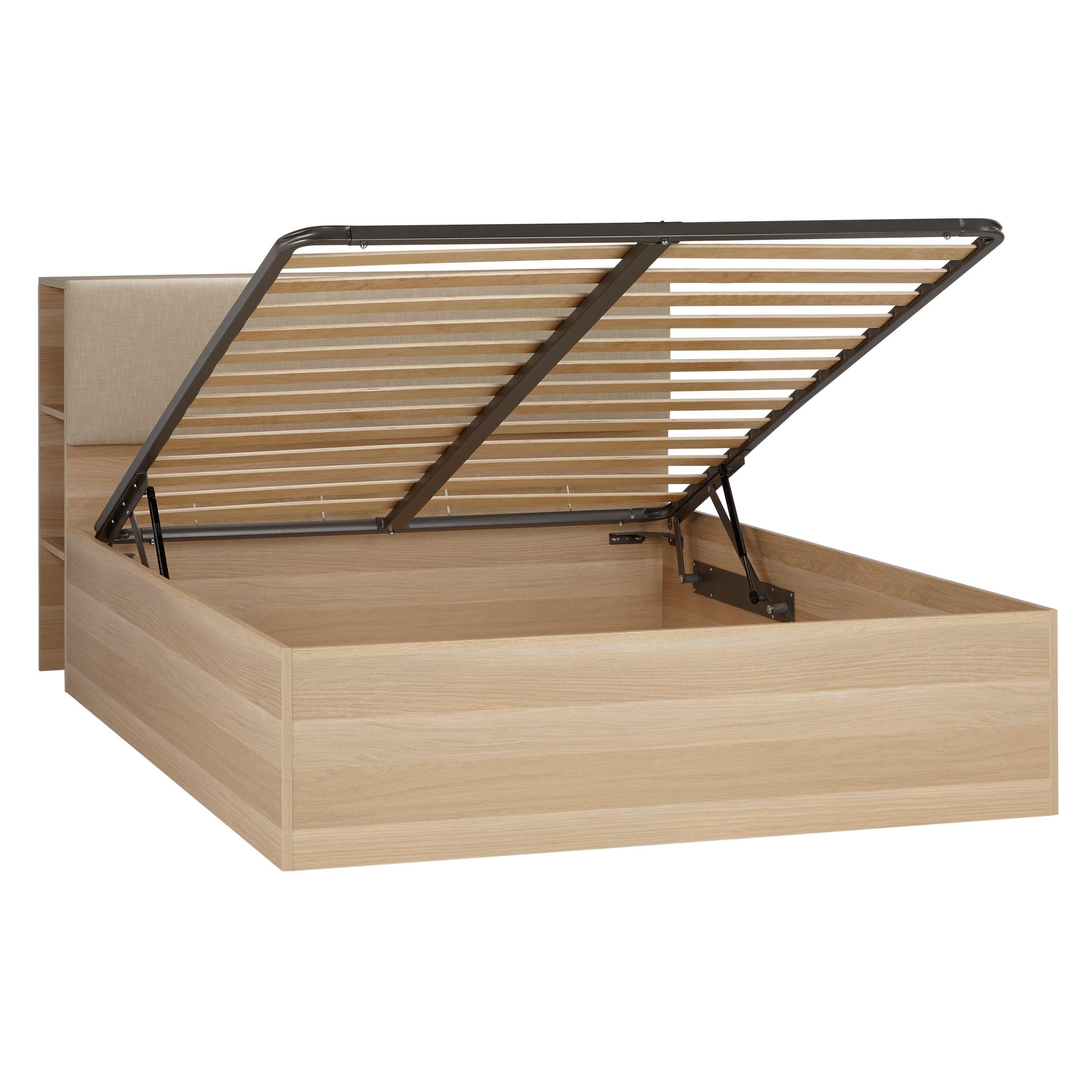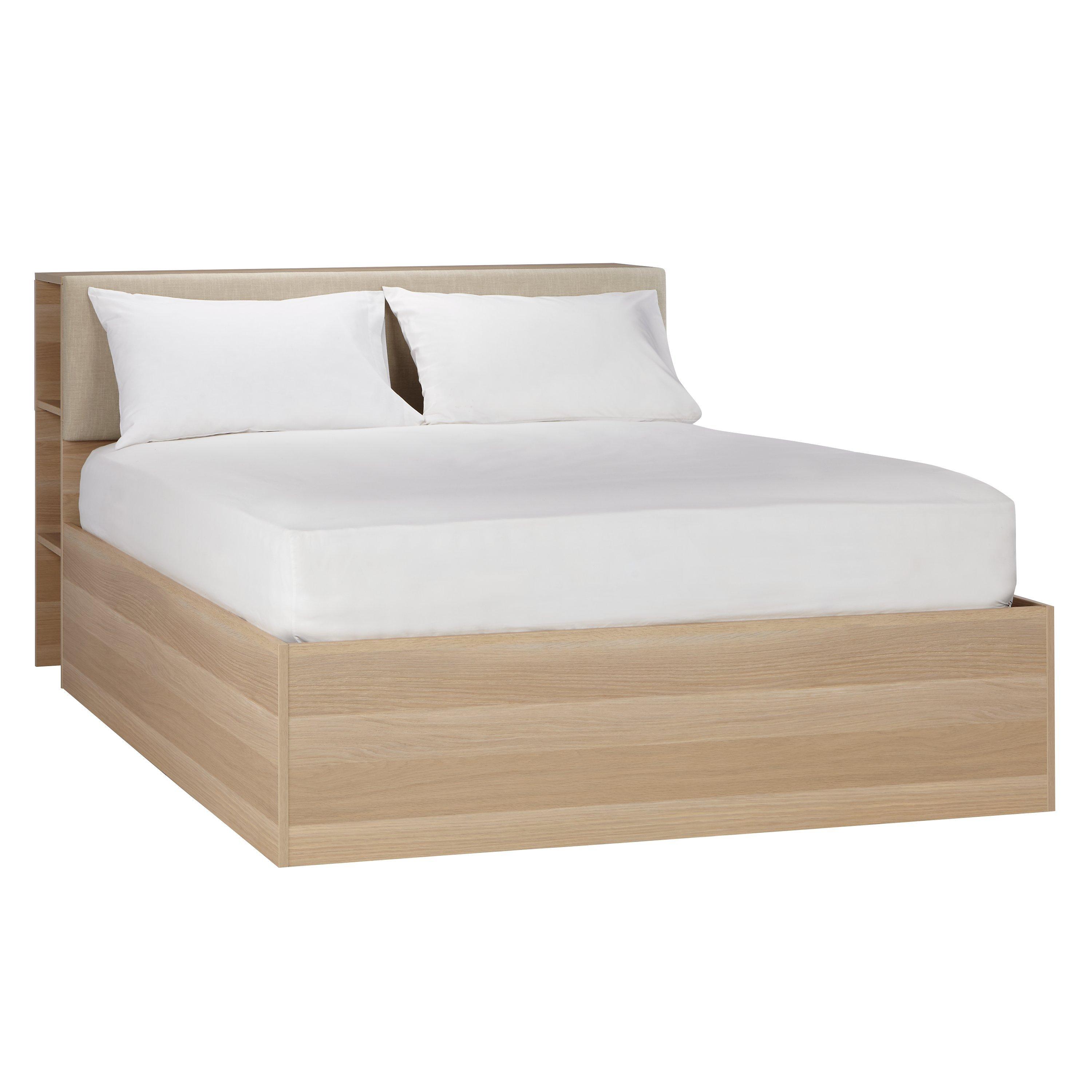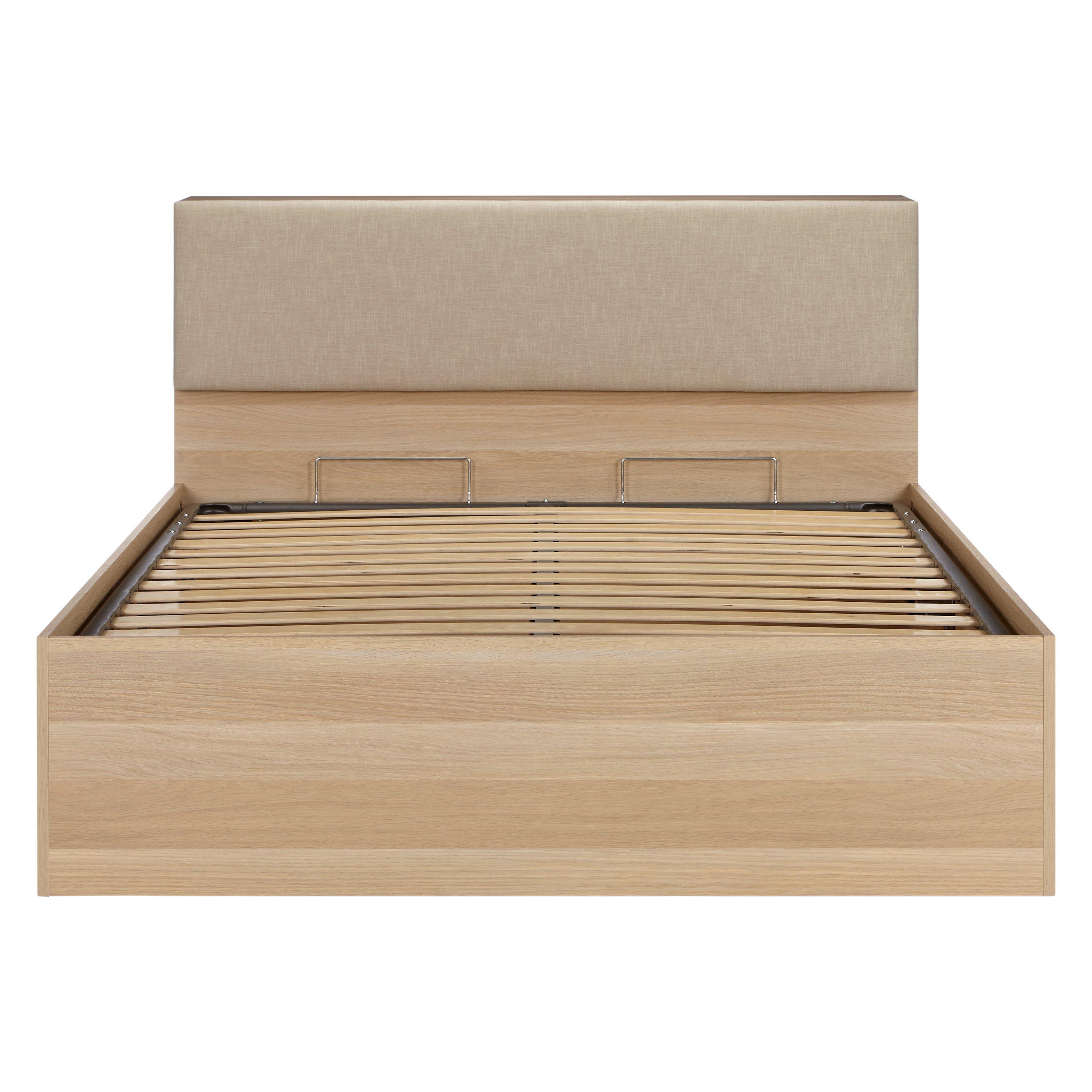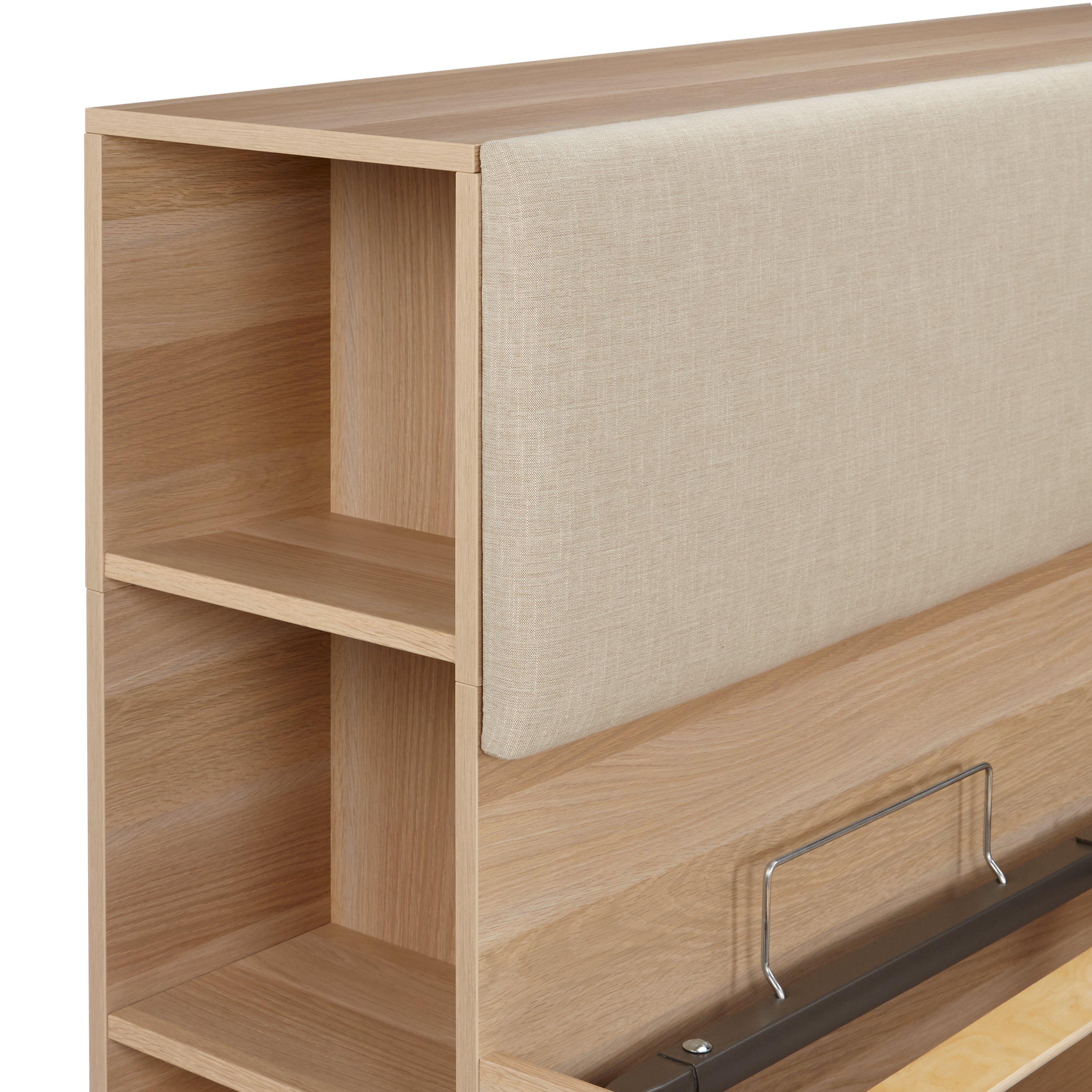 An innovative storage solution for your bedroom, this stylish and practical bed frame incorporates several space saving elements to help make life easier. Its modern shape and warm natural wood tone will work with a multitude of interior schemes, while the upholstered headboard offers additional comfort.