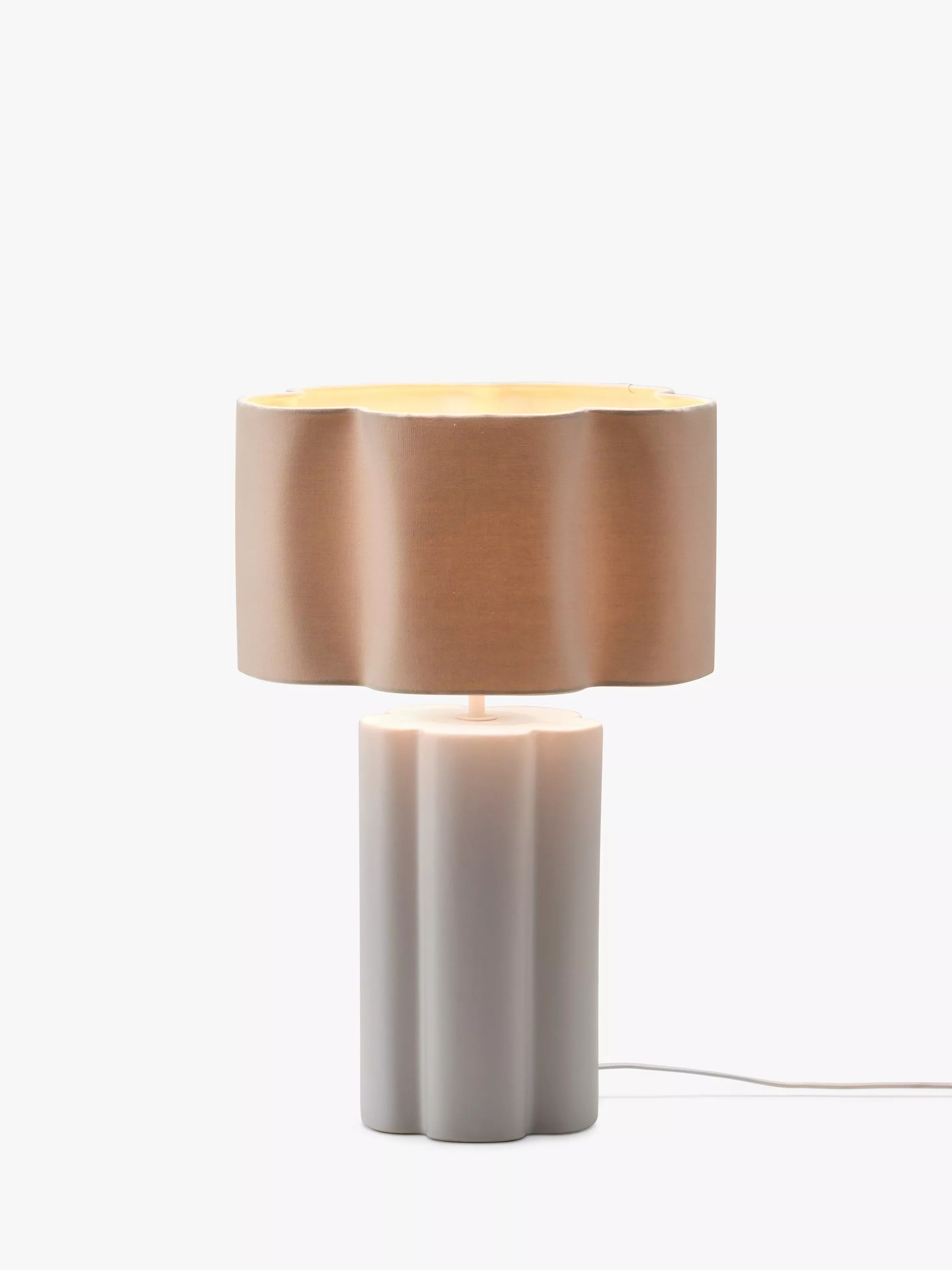 Soften your interior with the natural elements of ceramic and linen.The sculptural ceramic base complements the flower-shaped linen shade. Standing tall at 54cm, this table lamp will make a statement on a sideboard or create warmth in a hallway or bedroom.