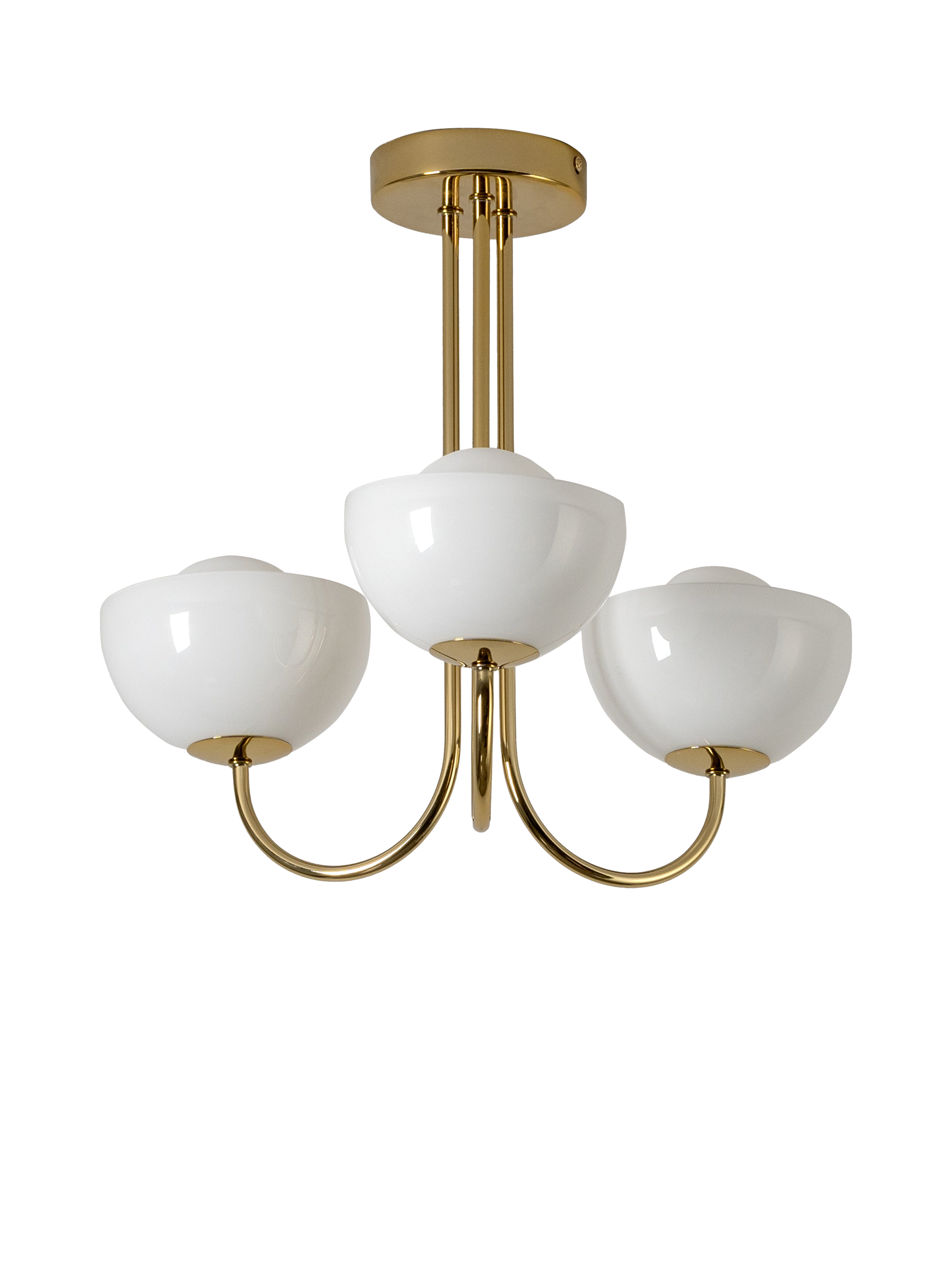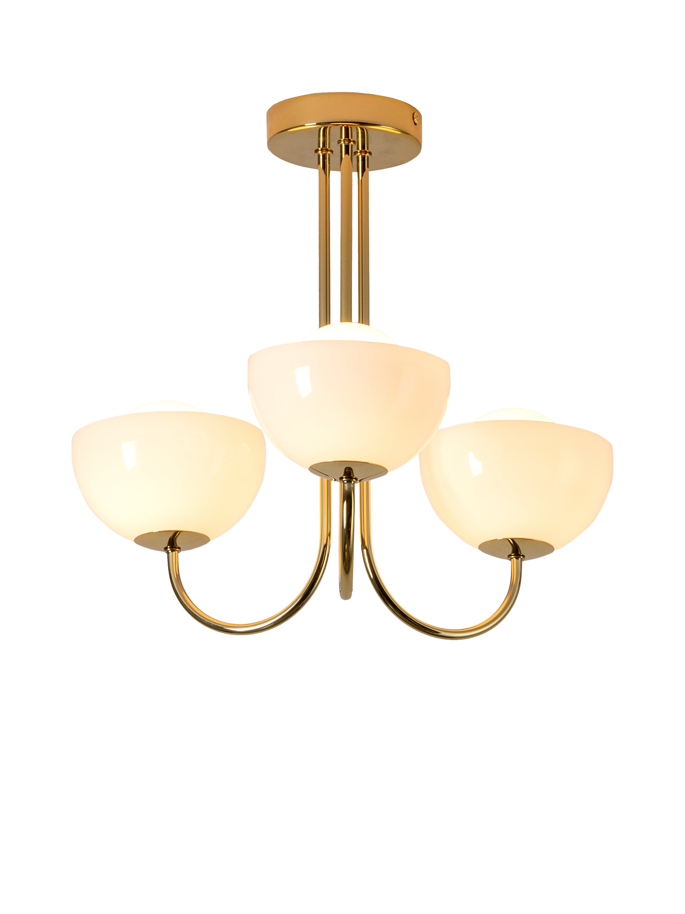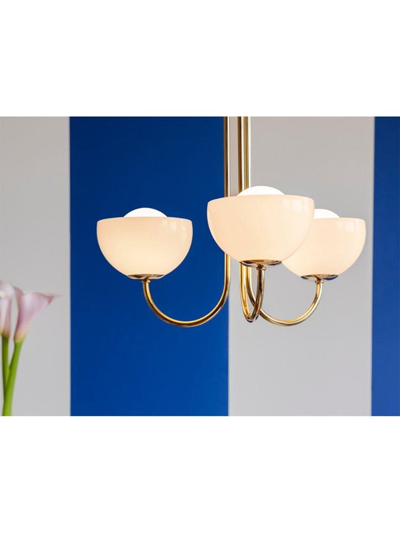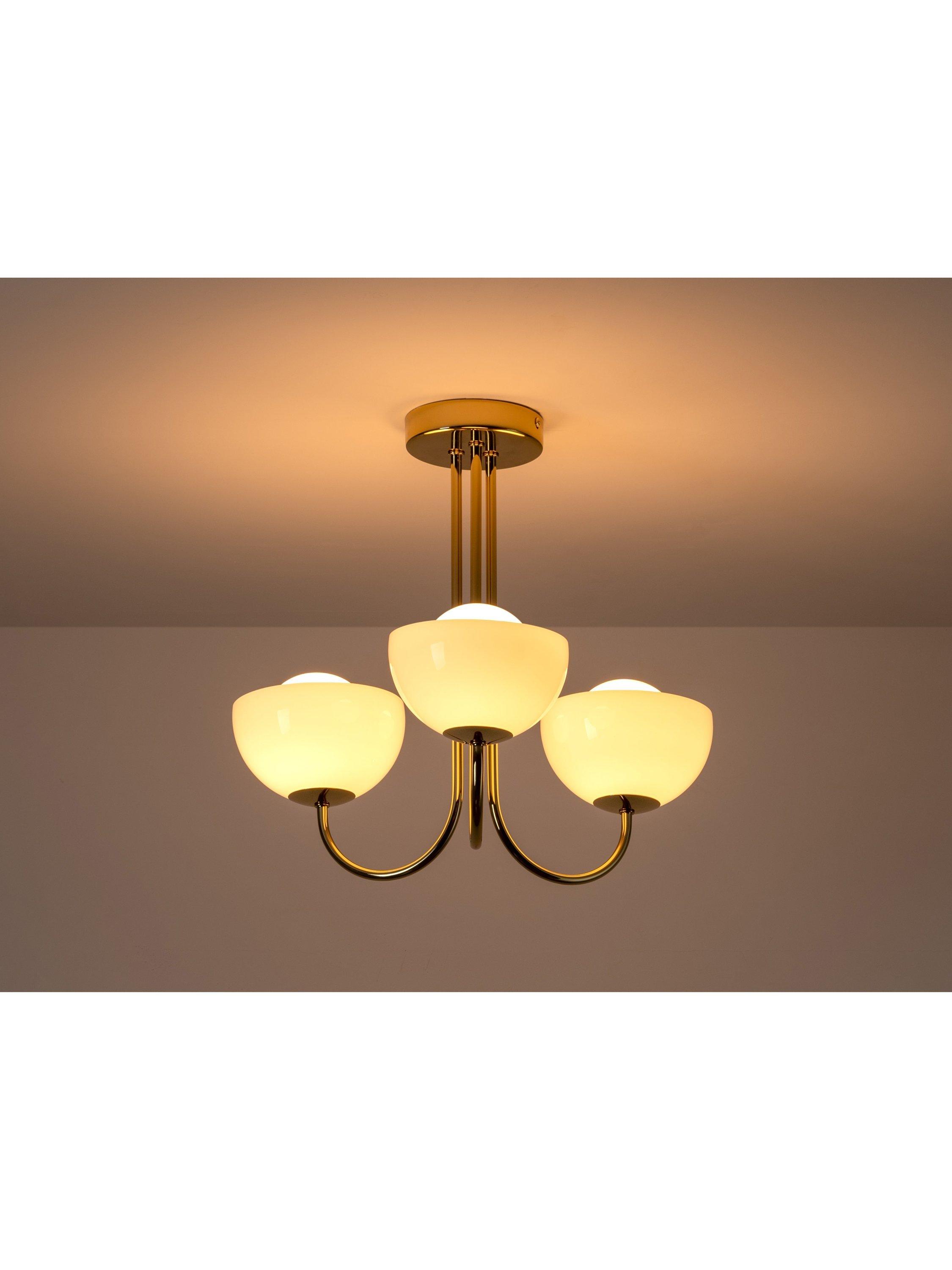 A playful modern design, this Glass Bowl Ceiling Light by Houseof features three rounded glass bowls that cast a warm, ambient glow. Great for cosy gatherings. Its compact design makes it an ideal choice for rooms with lower ceilings.