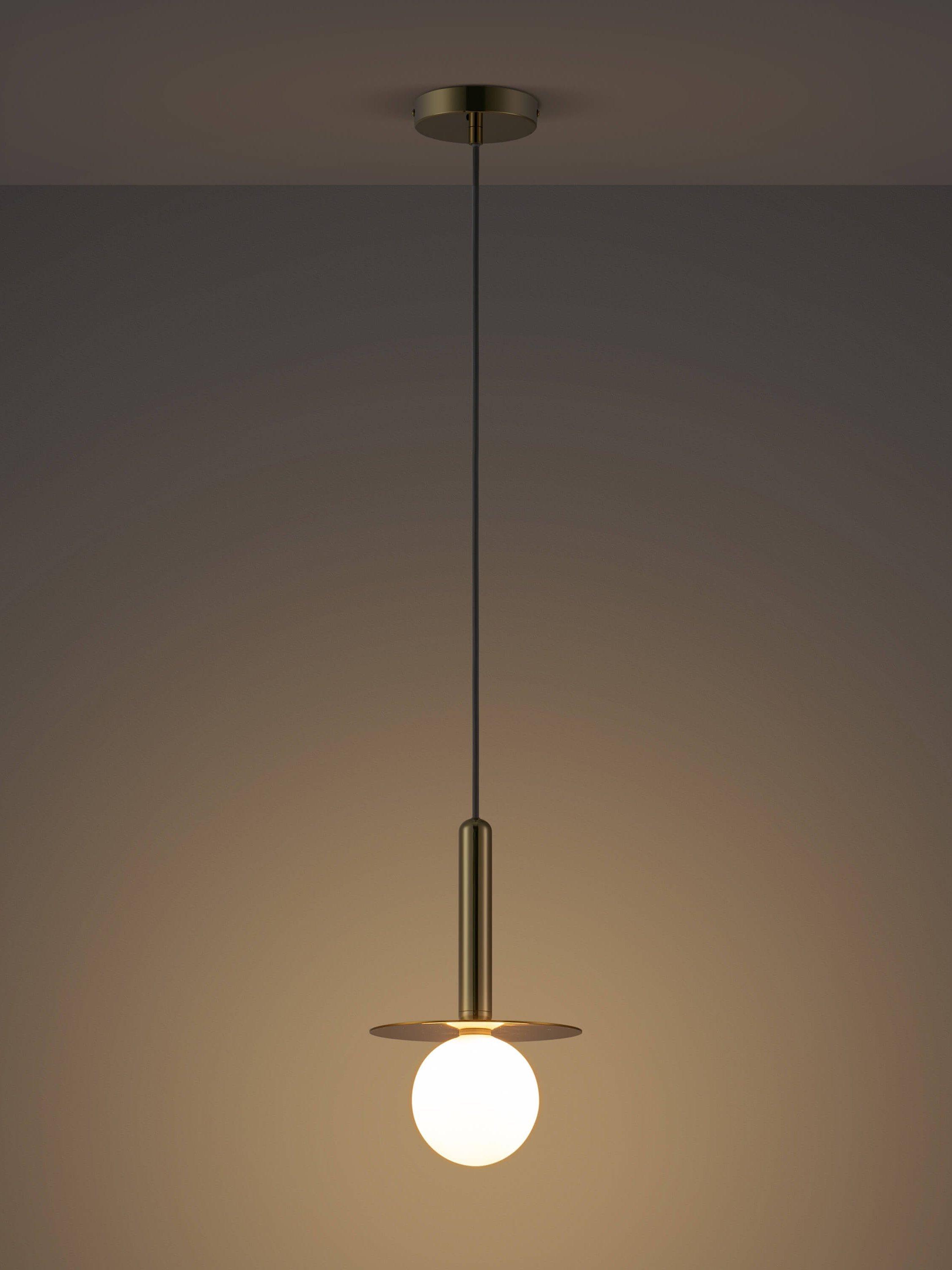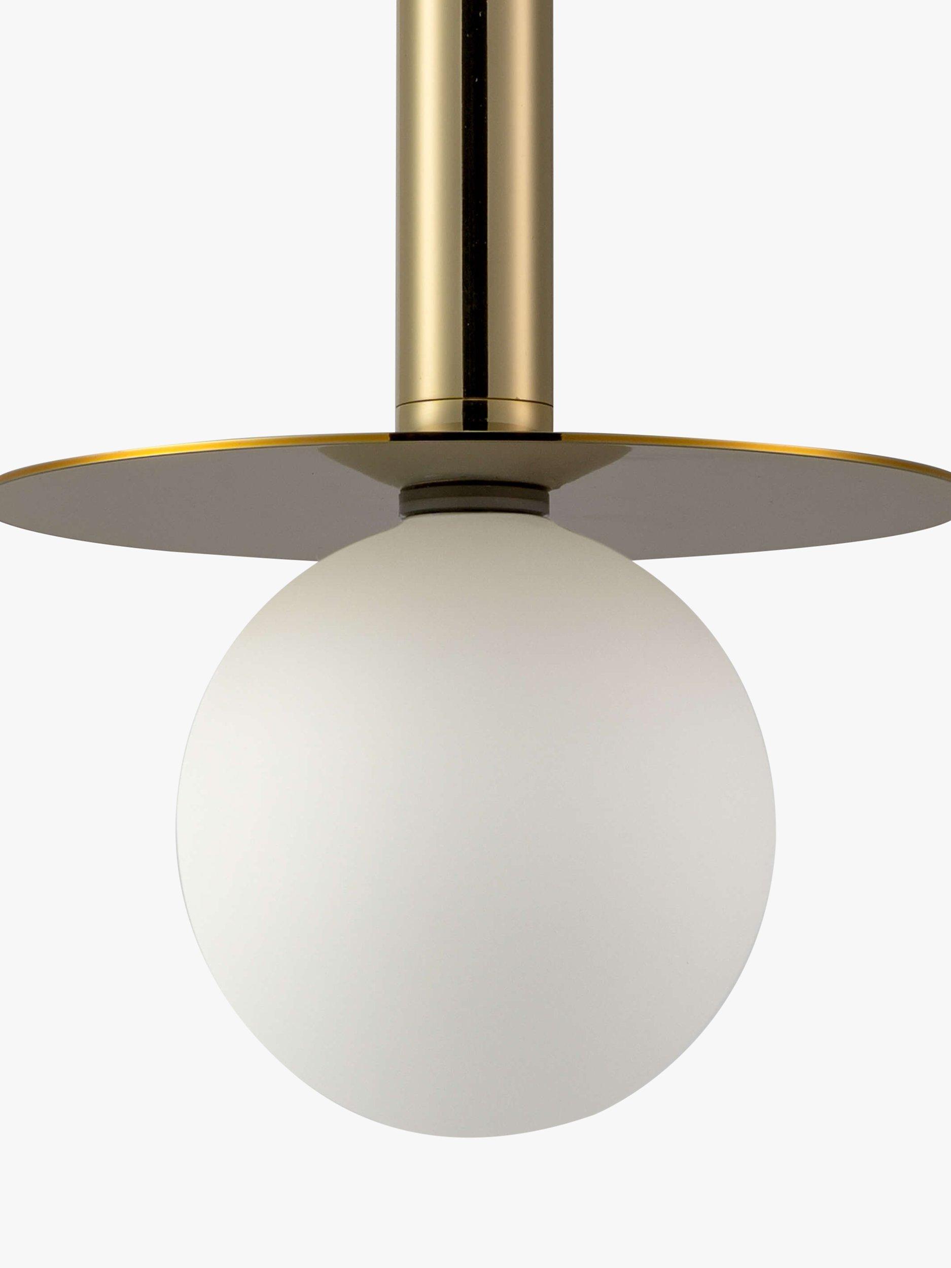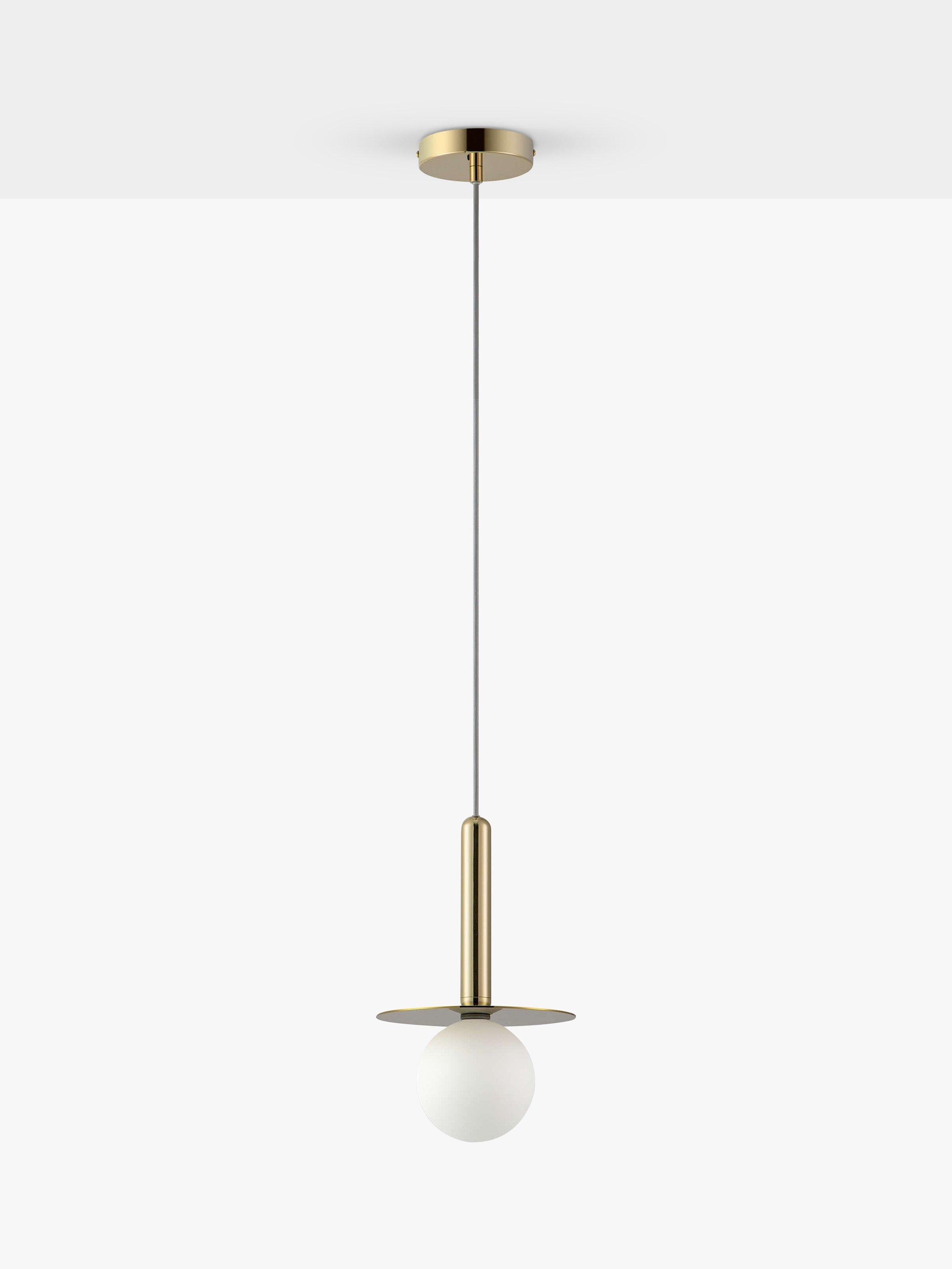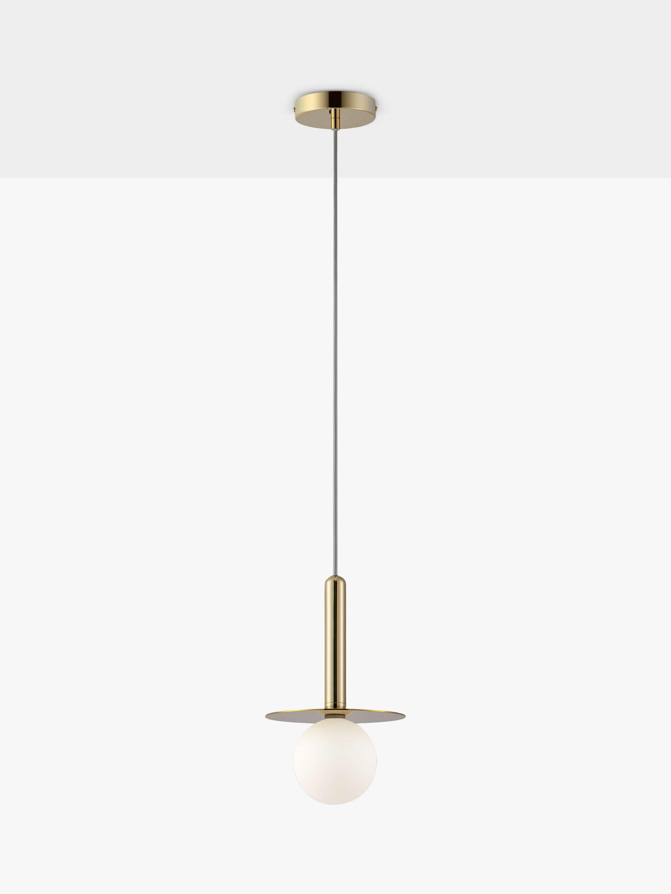 Illuminate your home with this ceiling light. A stunning, drop-down fixture that combines three geometric shapes which create a modern, sleek and stylish look. The polished oval body is designed with a horizontal metal plate holding a white opal glass shade, adding an ambient glow to your room. This versatile light will make a statement in your bathroom, hallway, over a kitchen counter or as a bedside light - perfection for minimalist interiors and striking when styled in multiples.