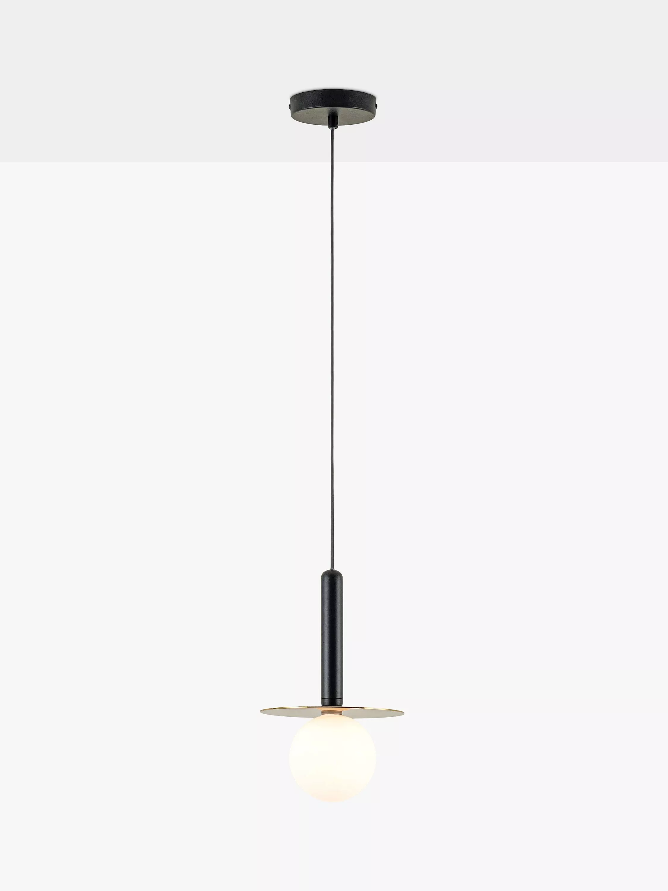 Illuminate your home with this ceiling light. A stunning, drop-down fixture that combines three geometric shapes which create a modern, sleek and stylish look. The polished oval body is designed with a horizontal metal plate holding a white opal glass shade, adding an ambient glow to your room. This versatile light will make a statement in your bathroom, hallway, over a kitchen counter or as a bedside light - perfection for minimalist interiors and striking when styled in multiples.