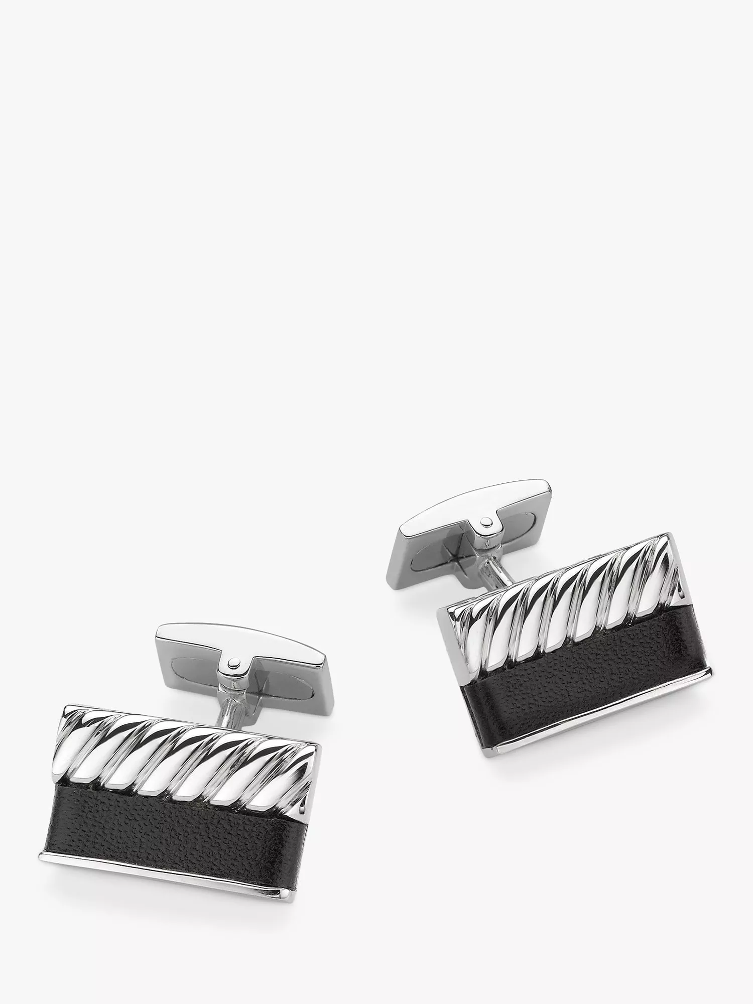 Hoxton LondonBold Leather Twist Rectangle Cufflinks, Silver/Black