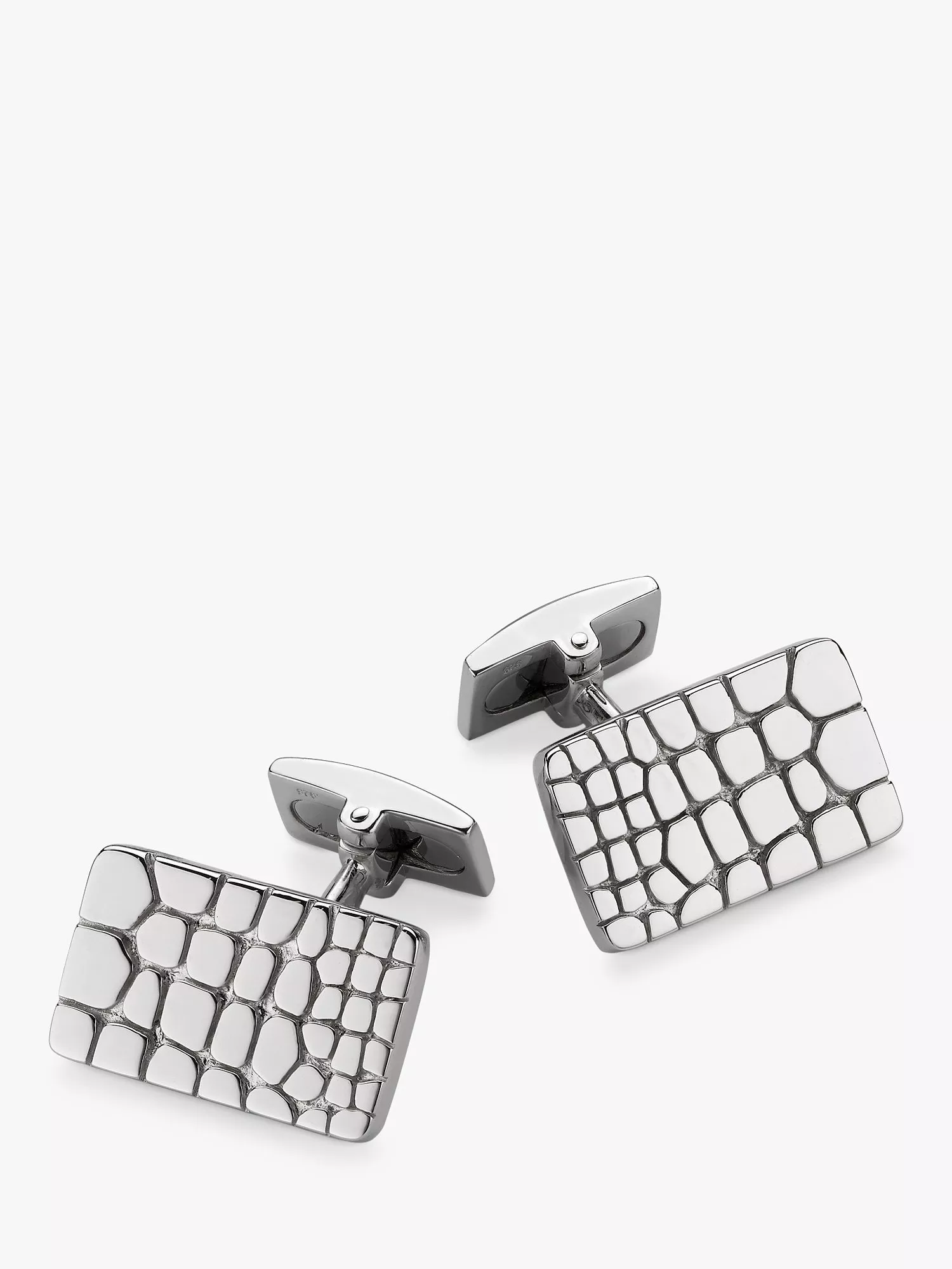 Hoxton LondonCrocodile Patterned Rectangle Cufflinks, Silver