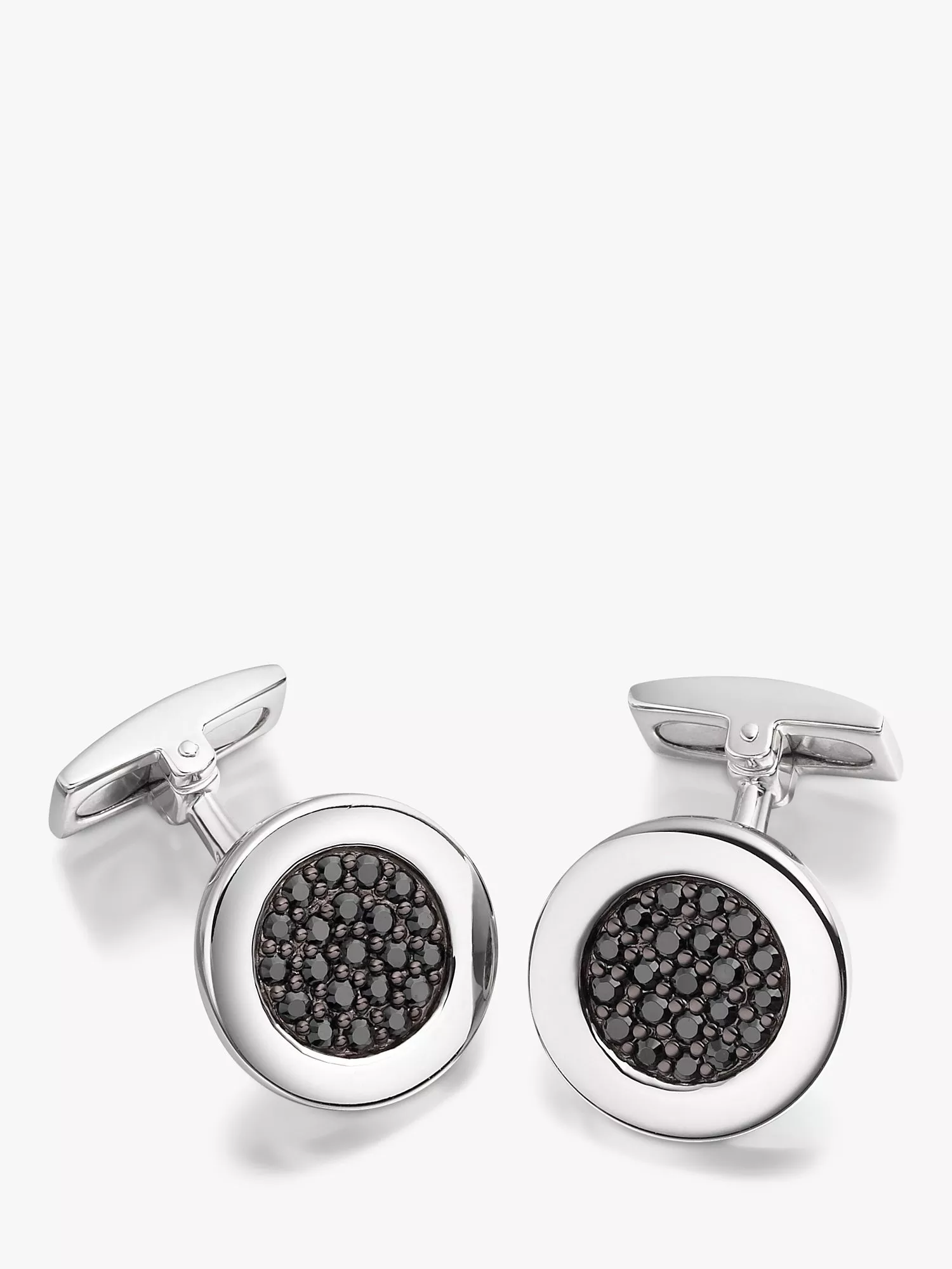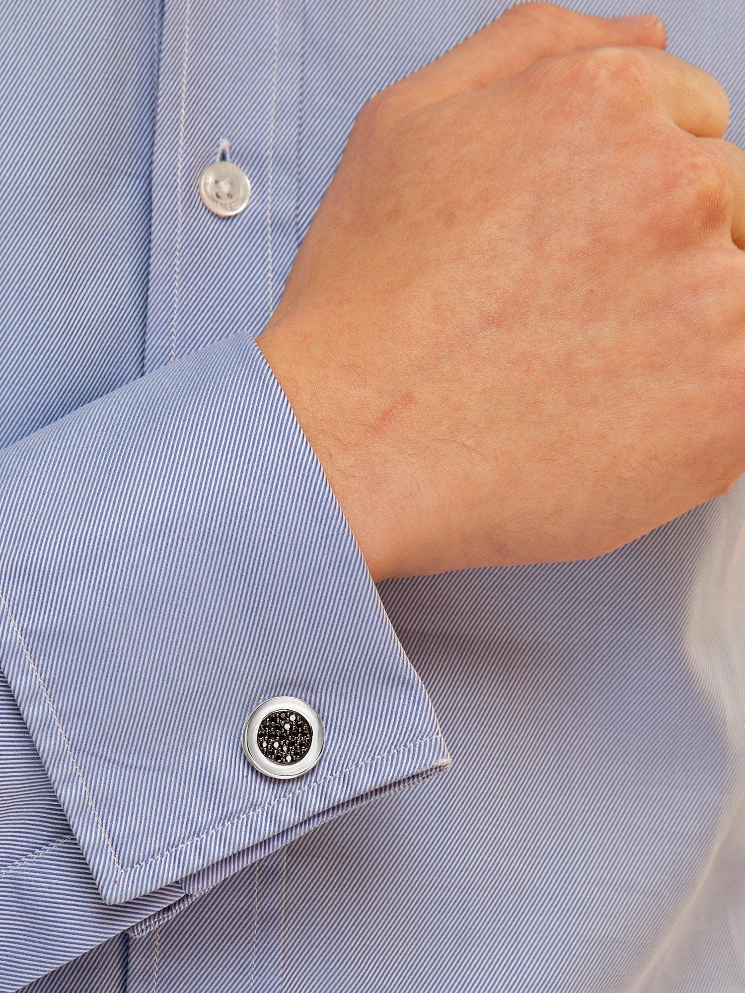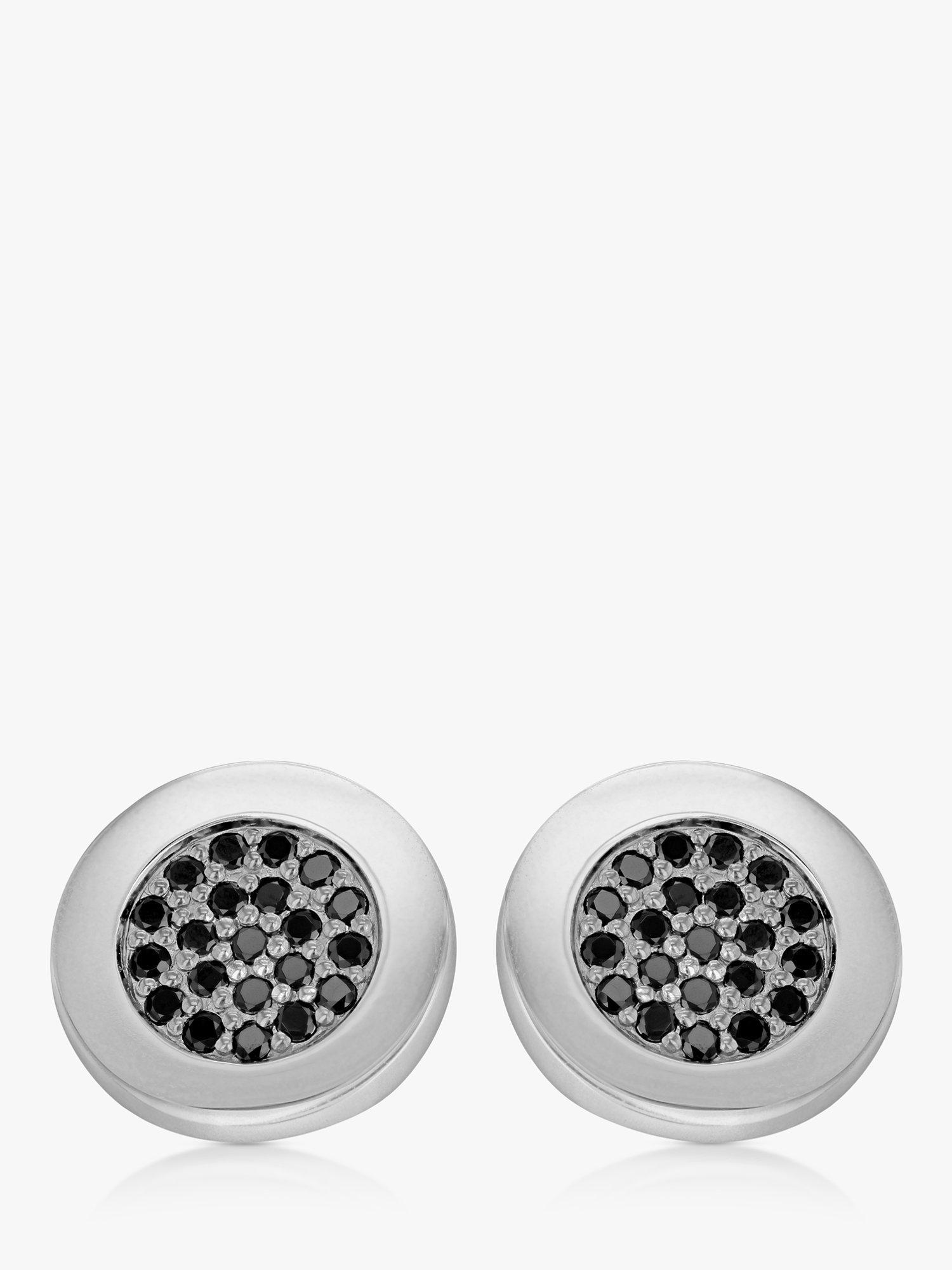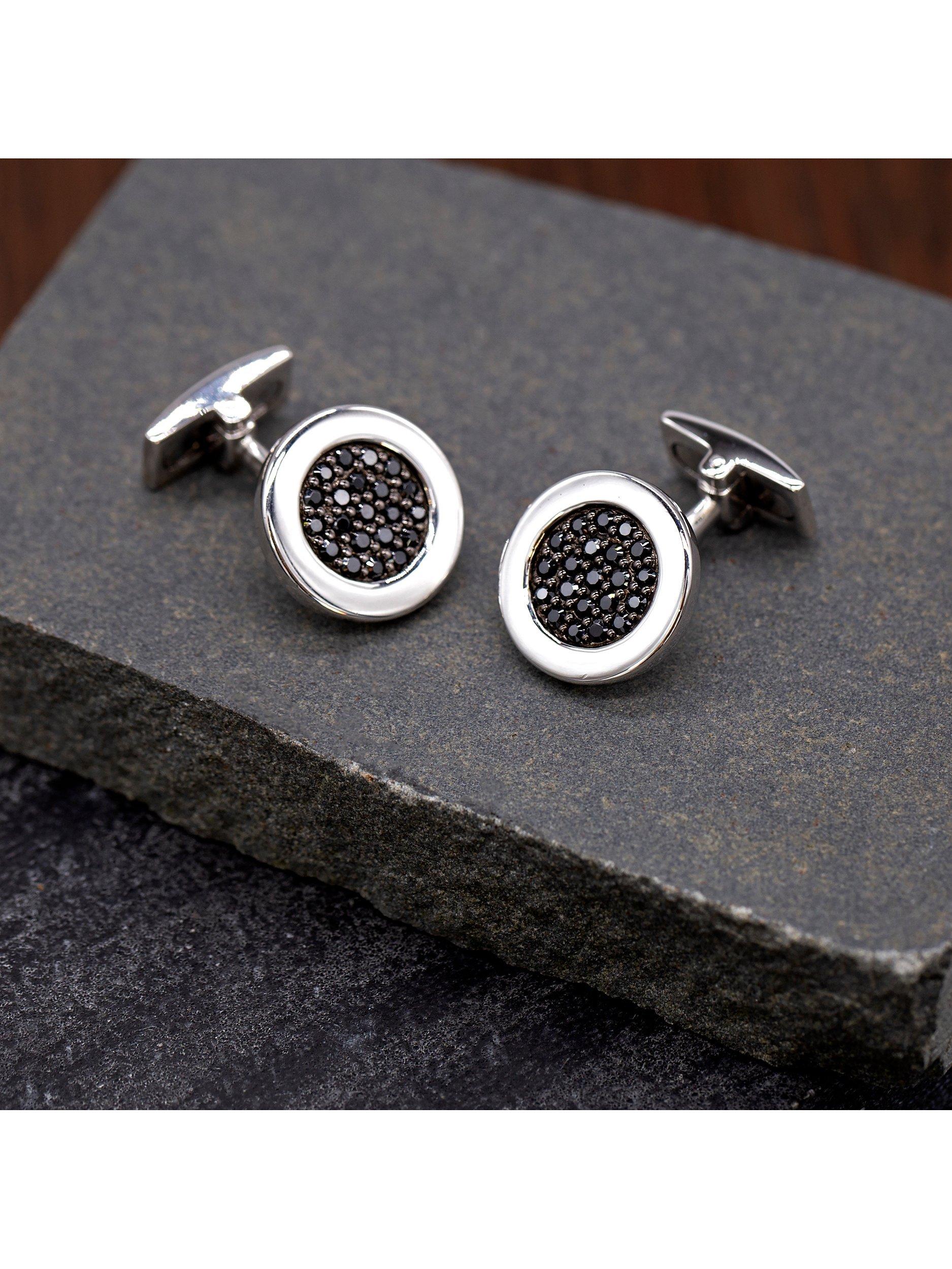 Hoxton LondonCubic Zirconia Round Cufflinks, Silver/Black