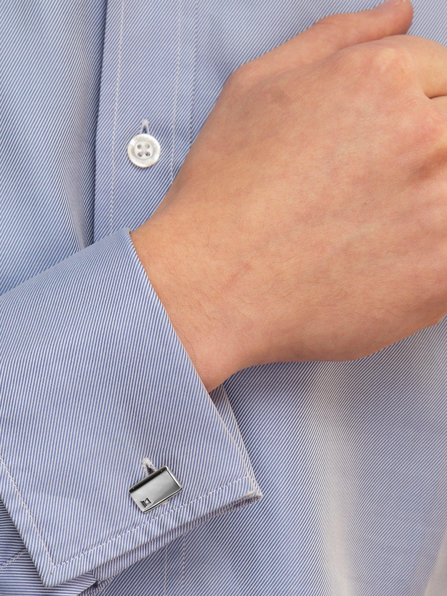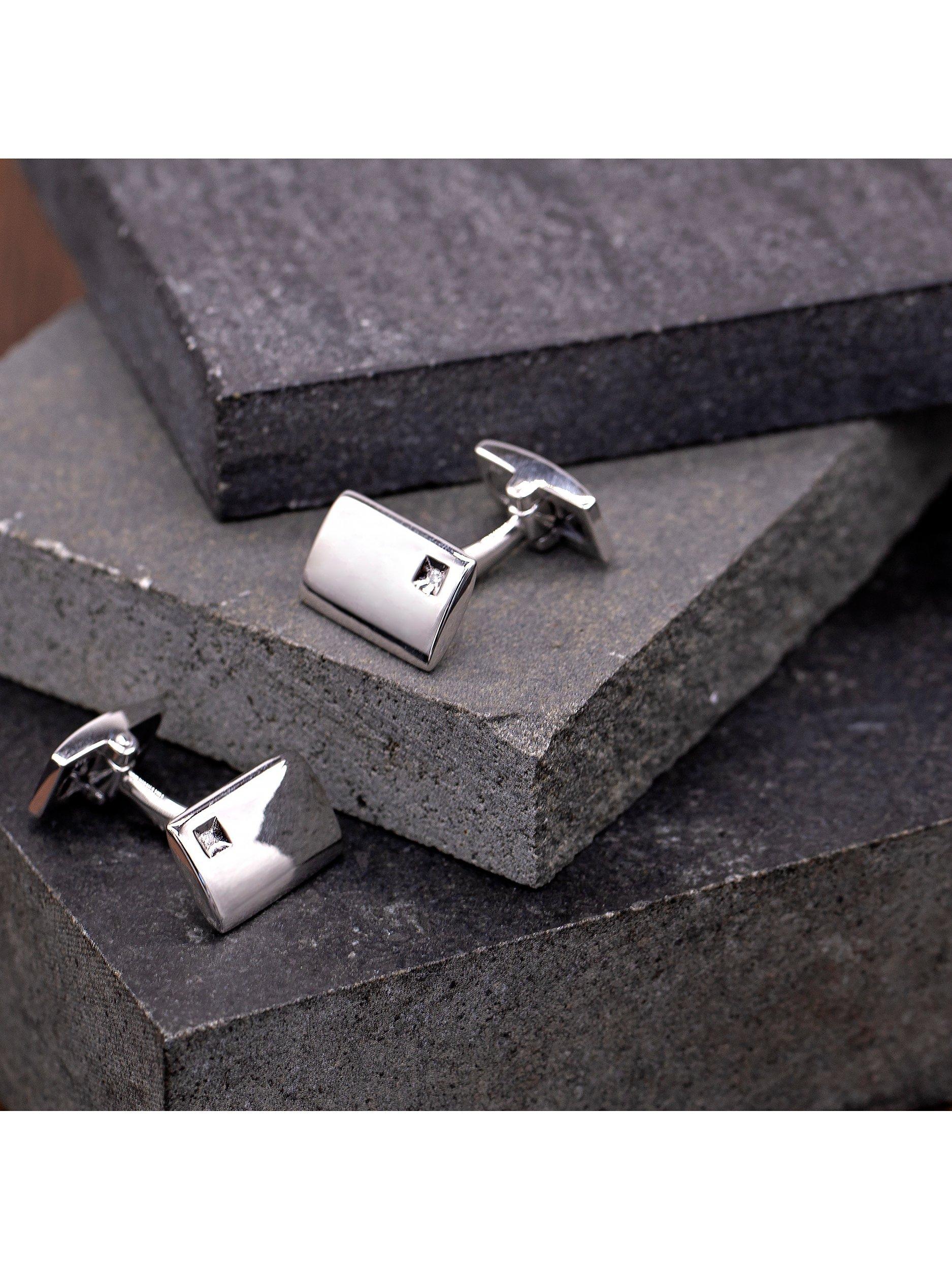 Simple square cufflinks, each set with a single 1mm round diamond.