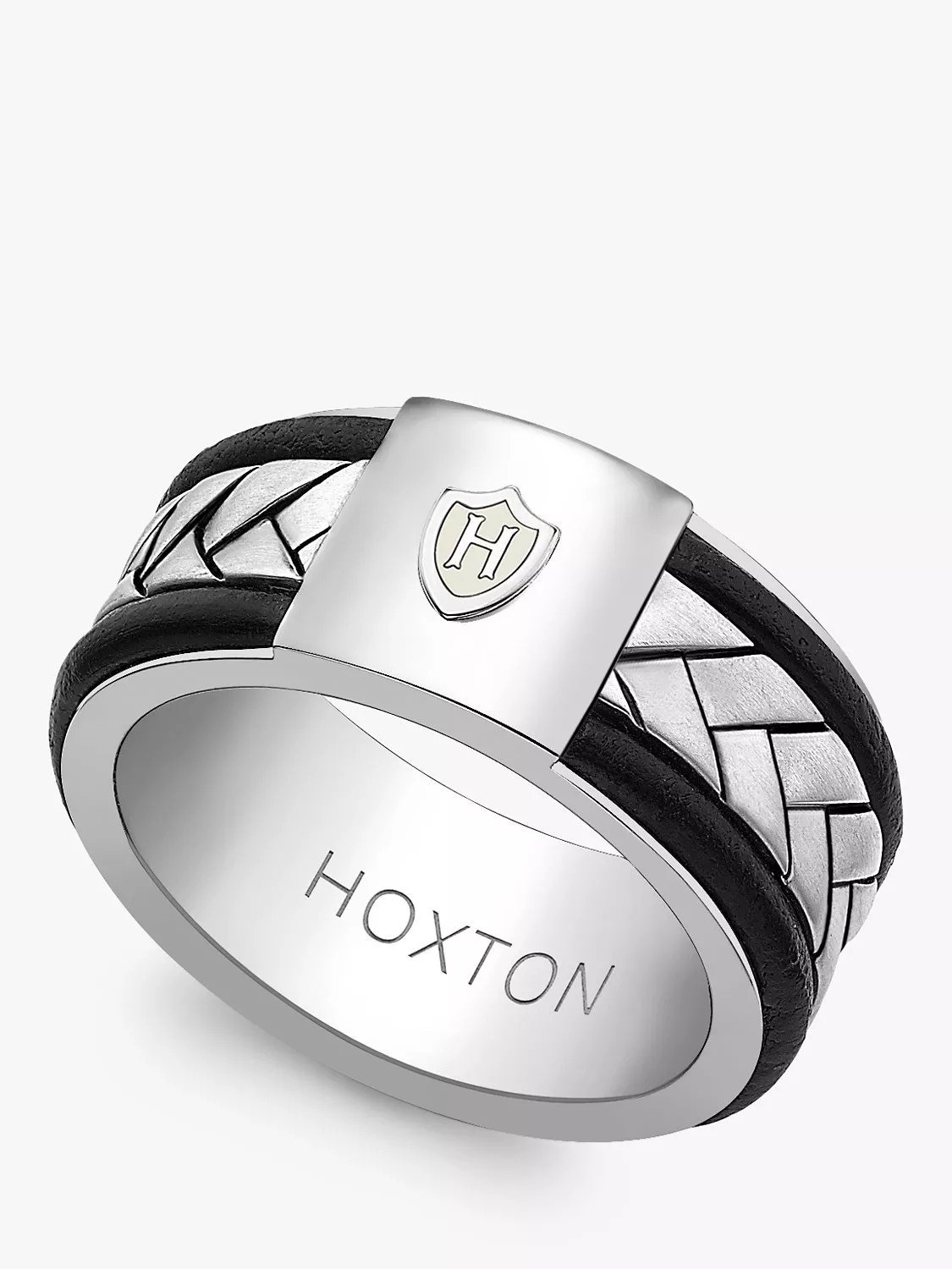 With an attractive herringbone pattern, this ring from Hoxton London combines leather and polished sterling silver for a sleek, modern finish. Pair with the matching necklace, cuff bracelets or cufflinks to complete the look.