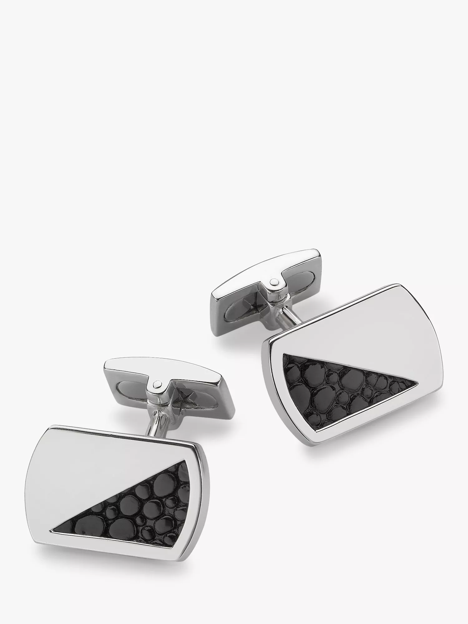 Hoxton LondonLeather Inlay Rectangle Cufflinks, Silver/Black