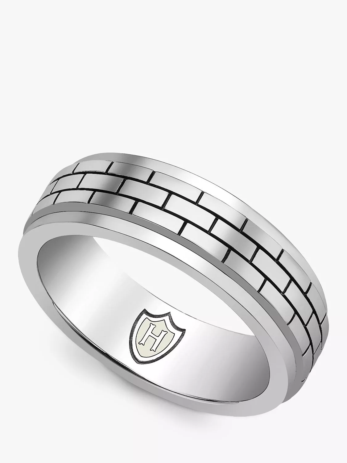 Hoxton LondonMen's Brick Textured Spinning Ring, Silver