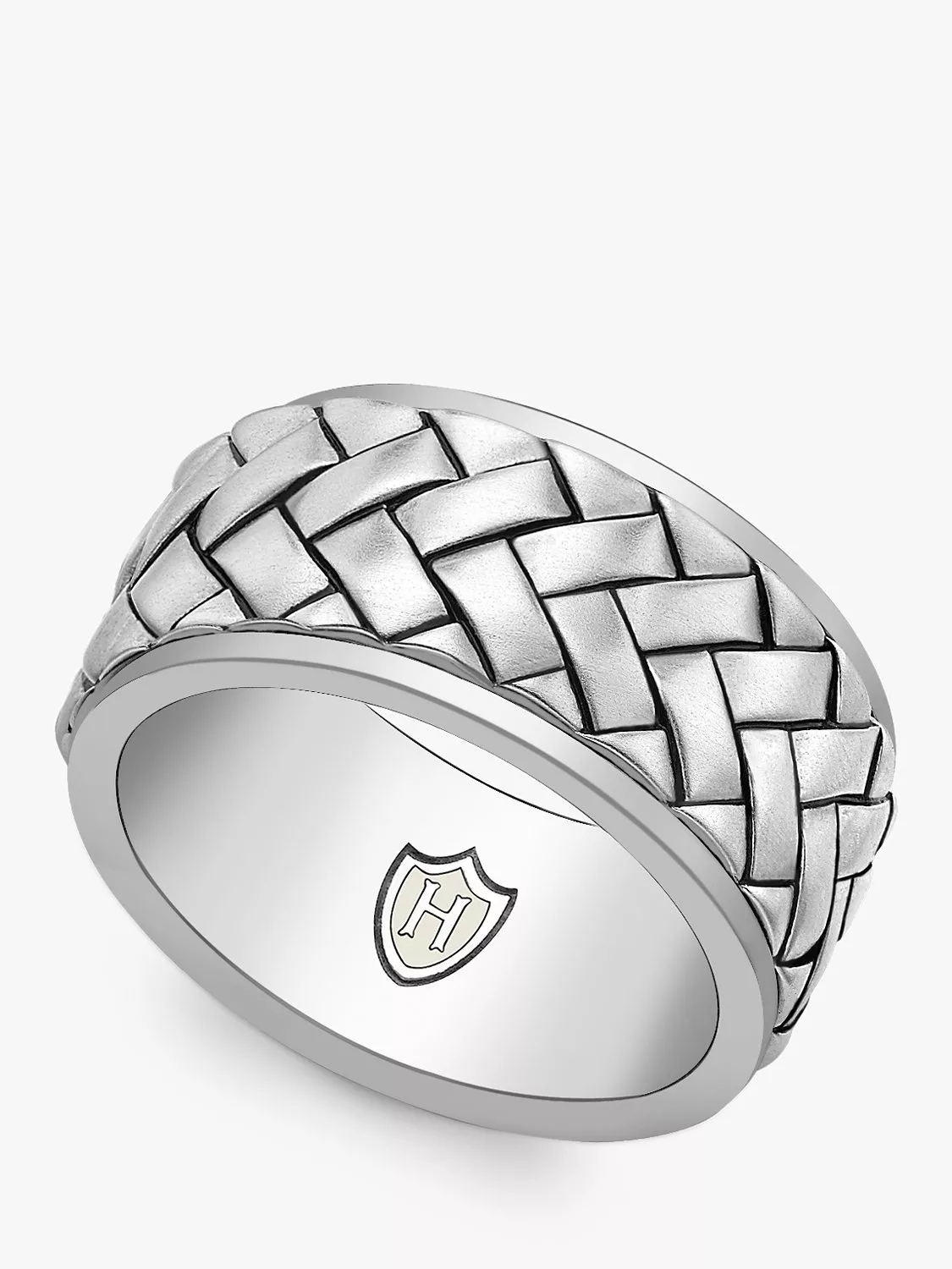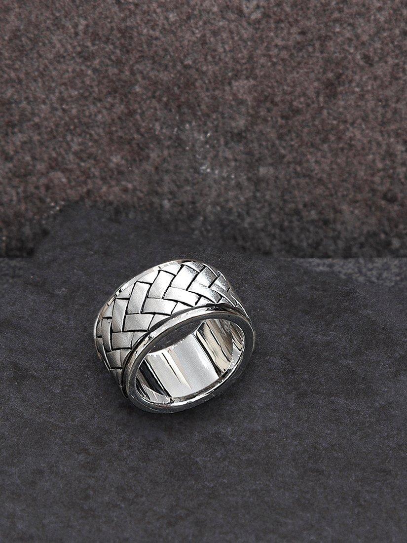 A fidgeter's dream, this ring spins. Made from sterling silver, it features a stylish herringbone pattern.