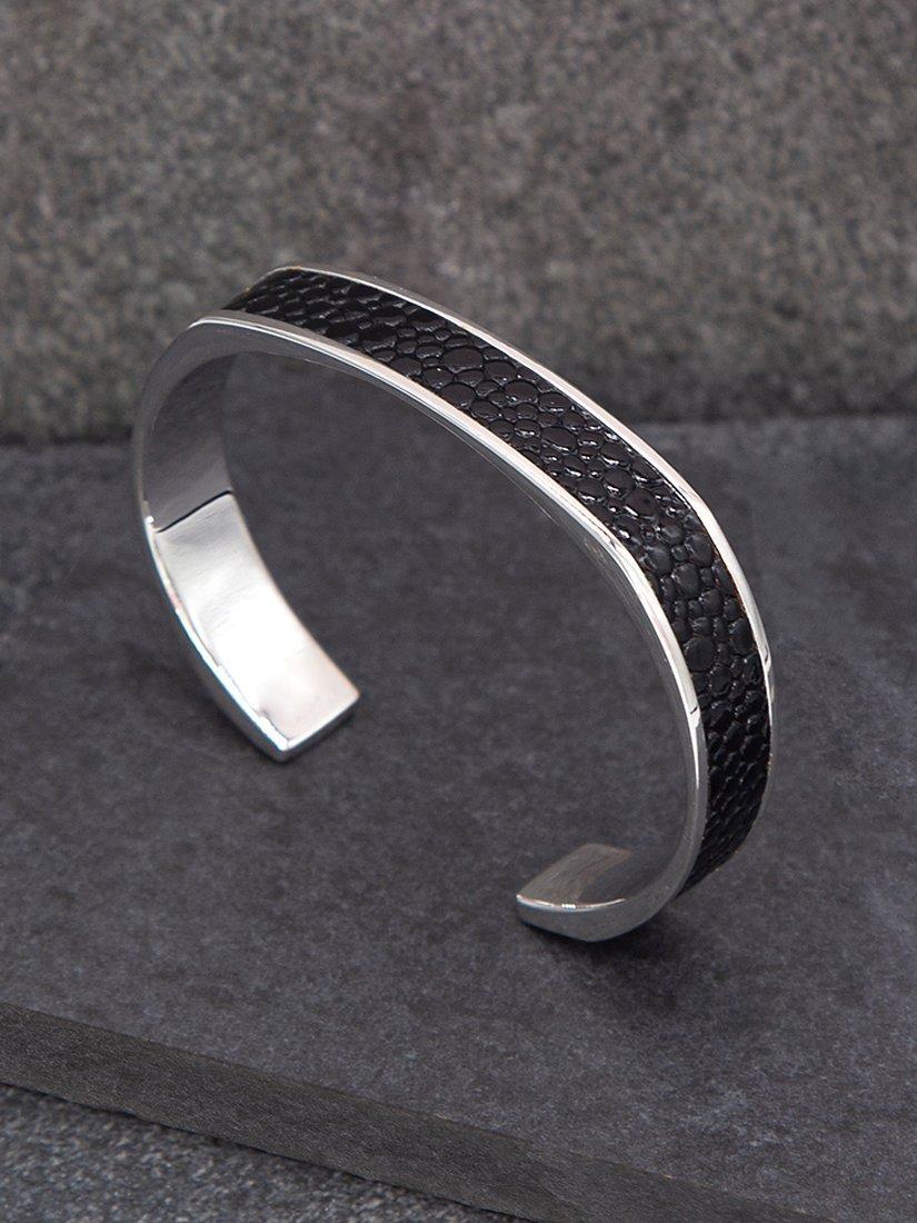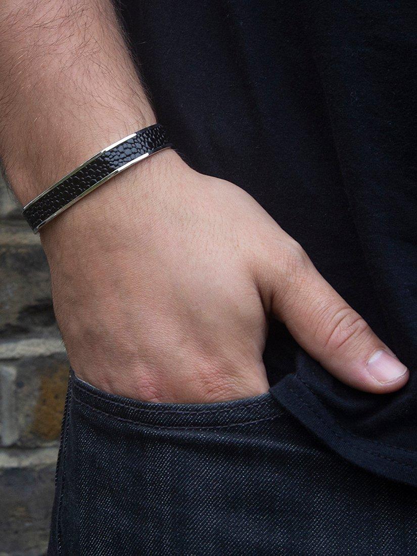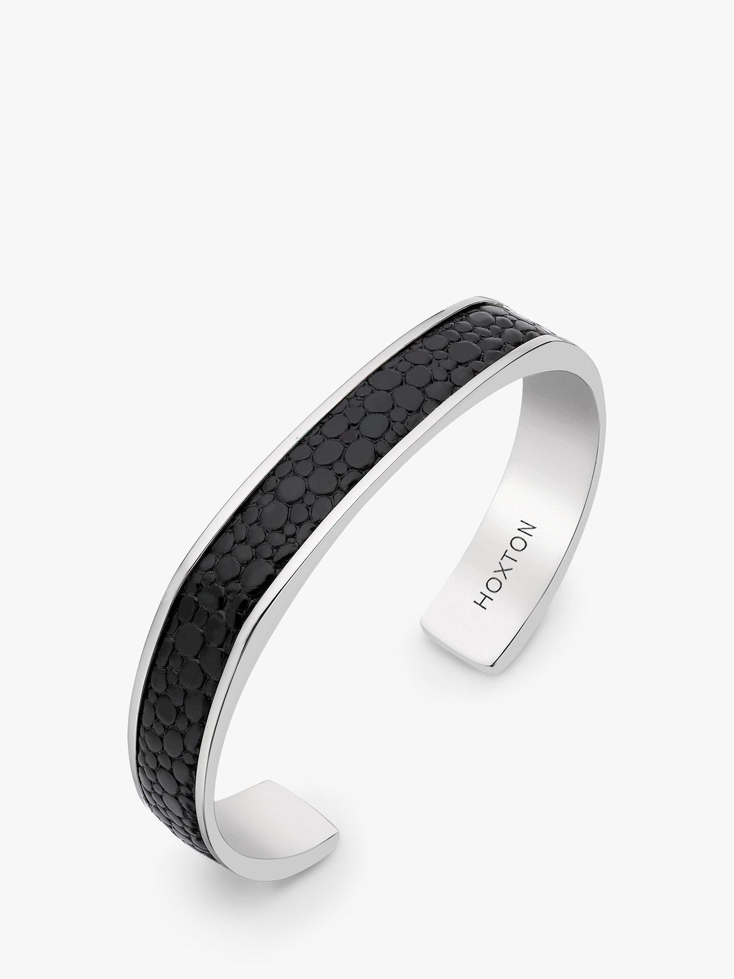Made from sterling silver inlaid with pebbled leather, this cuff bracelet from Hoxton London makes a stylish addition to your look.
