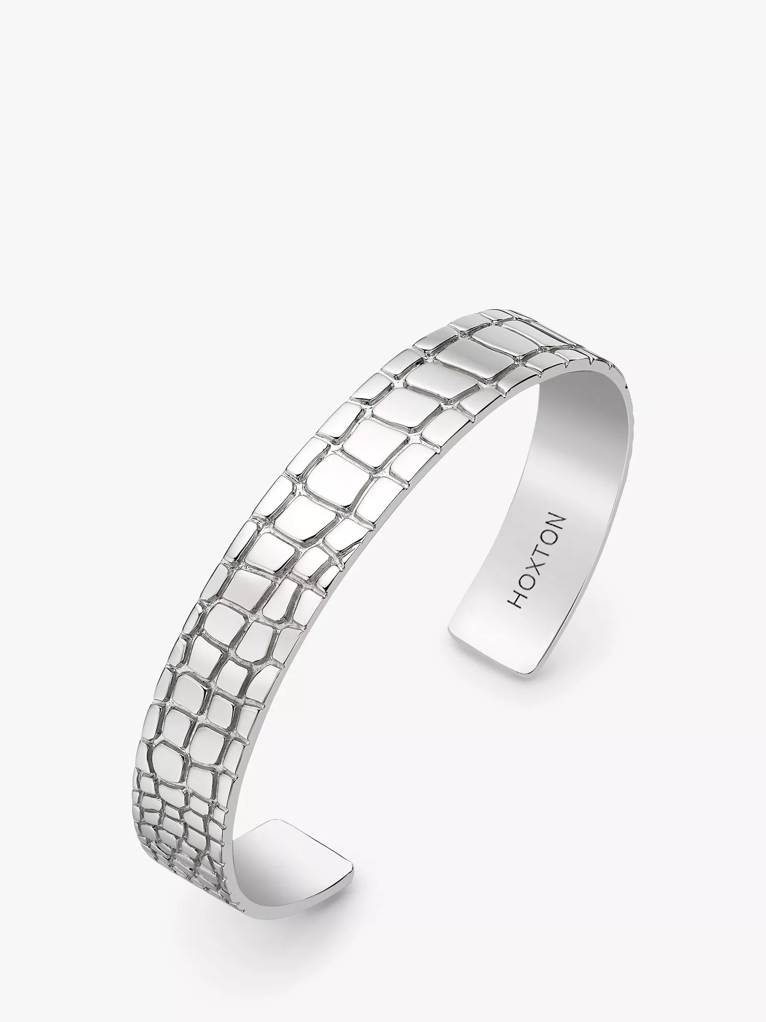 Hoxton LondonMen's Wild Crocodile Pattern Cuff Bangle, Silver