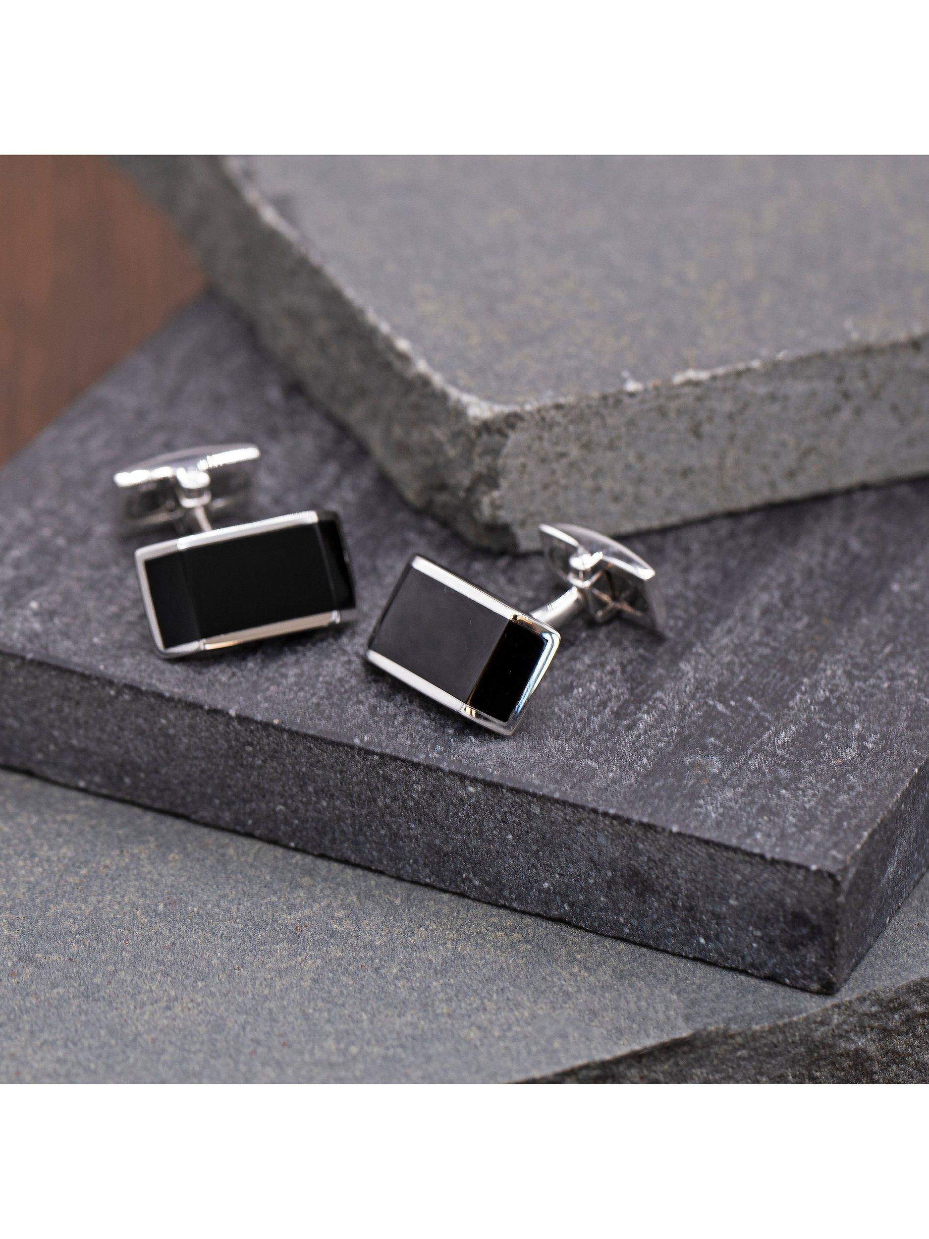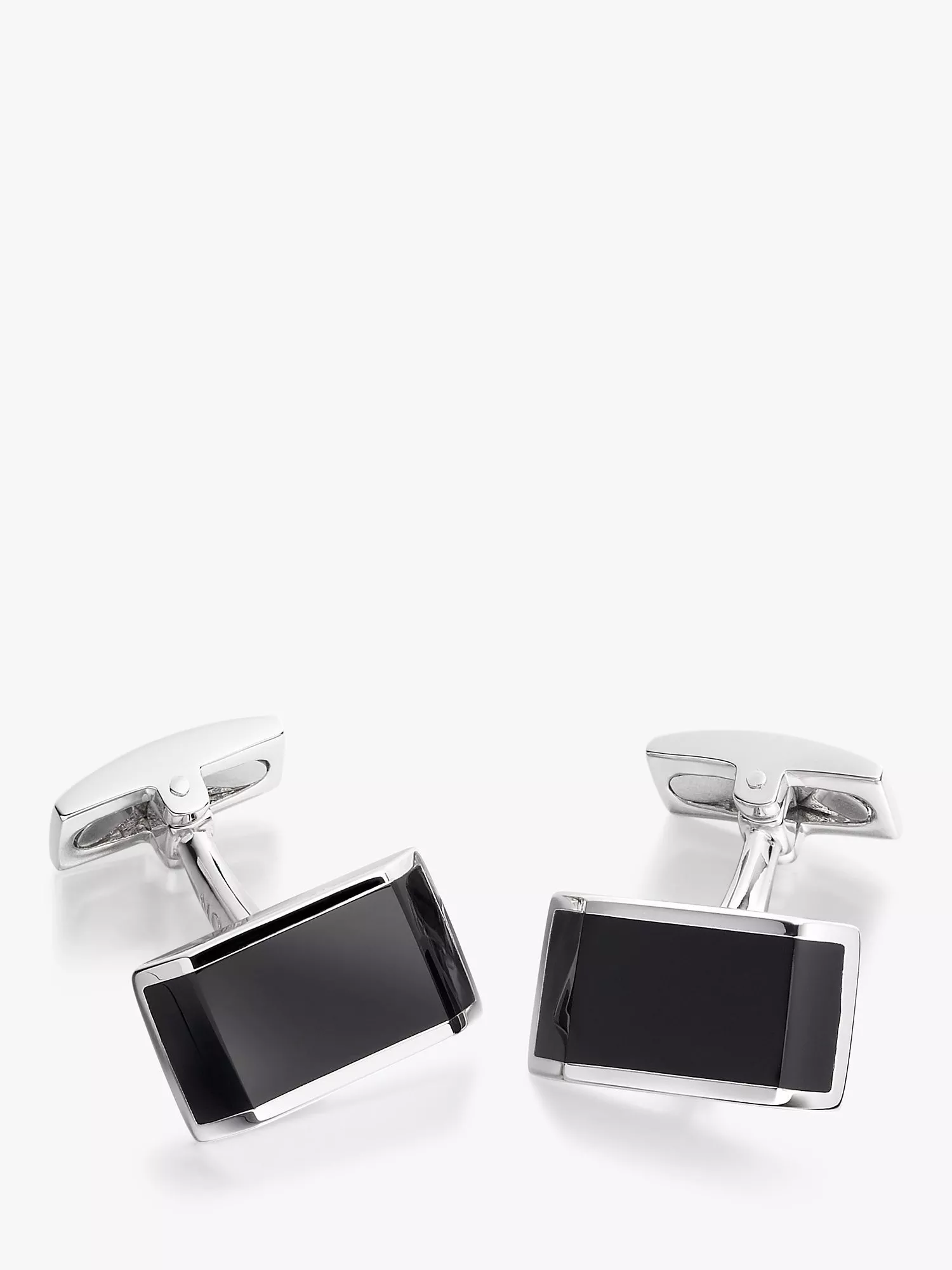 Hoxton LondonOnyx Rectangle Cufflinks, Silver/Black