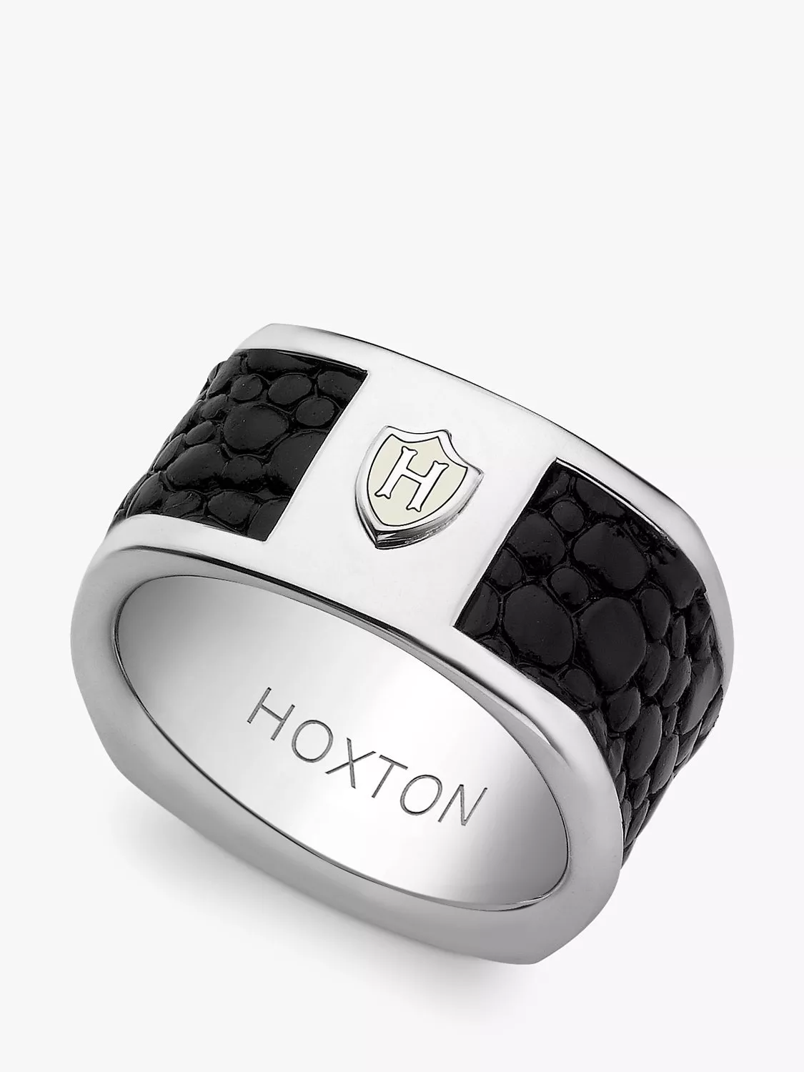 Hoxton LondonPebbled Leather Inlay Ring, Silver/Black, T