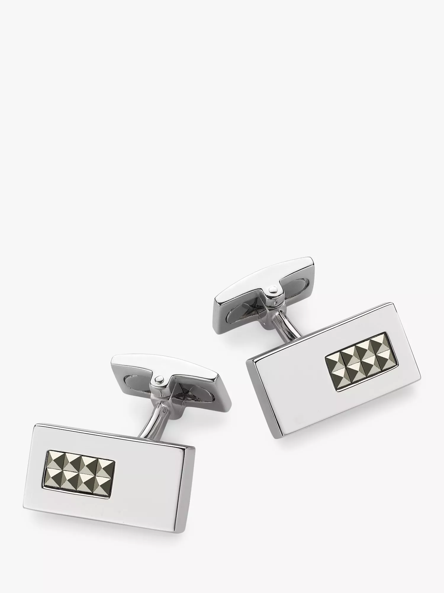 Hoxton LondonPyramid Marcasite Set Rectangle Cufflinks, Silver