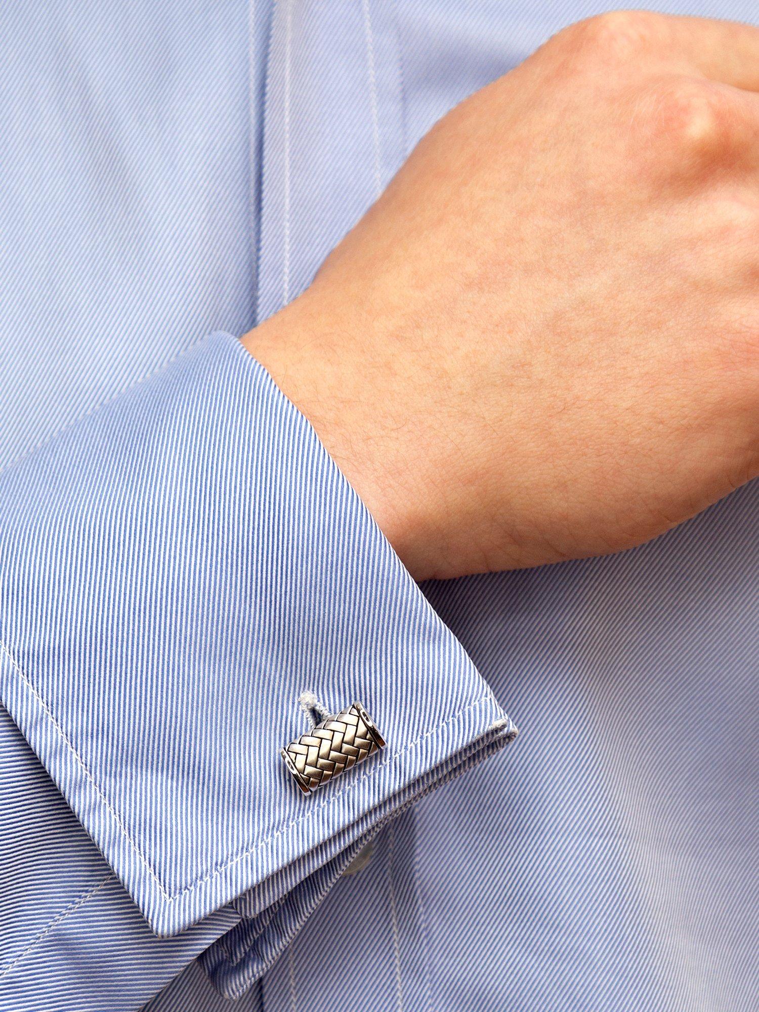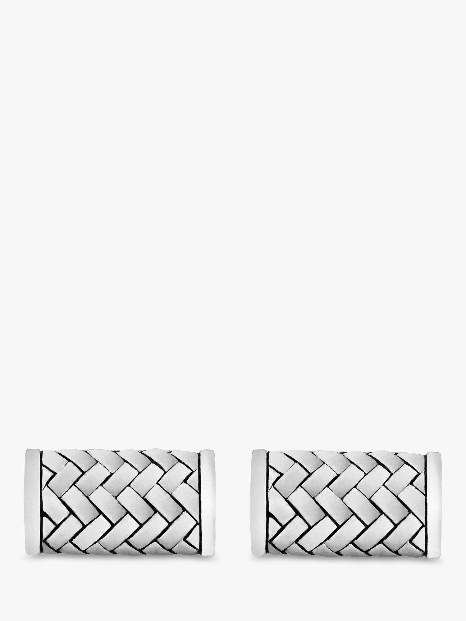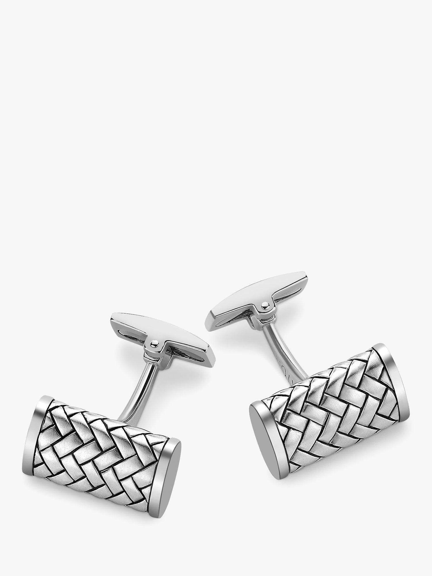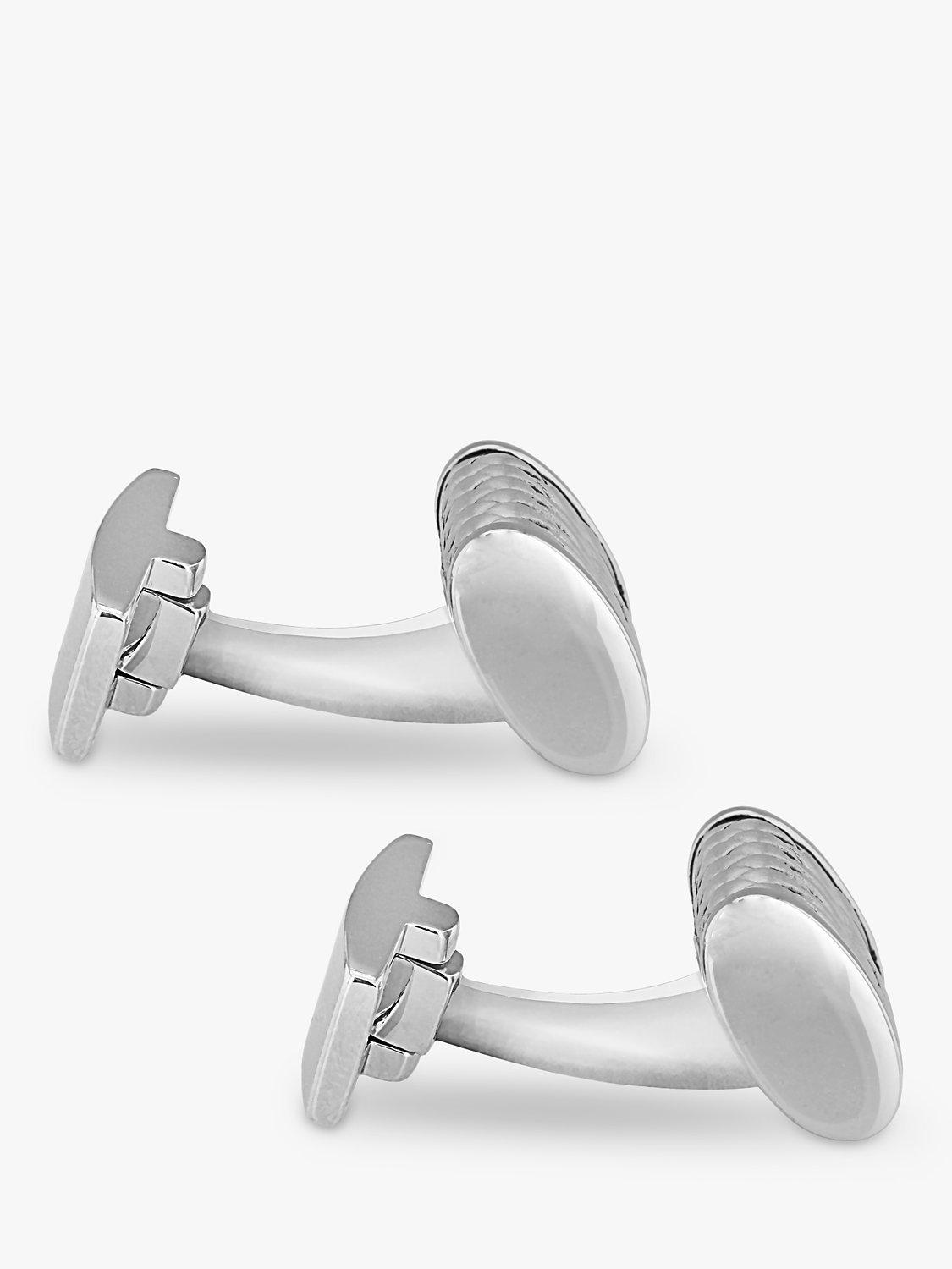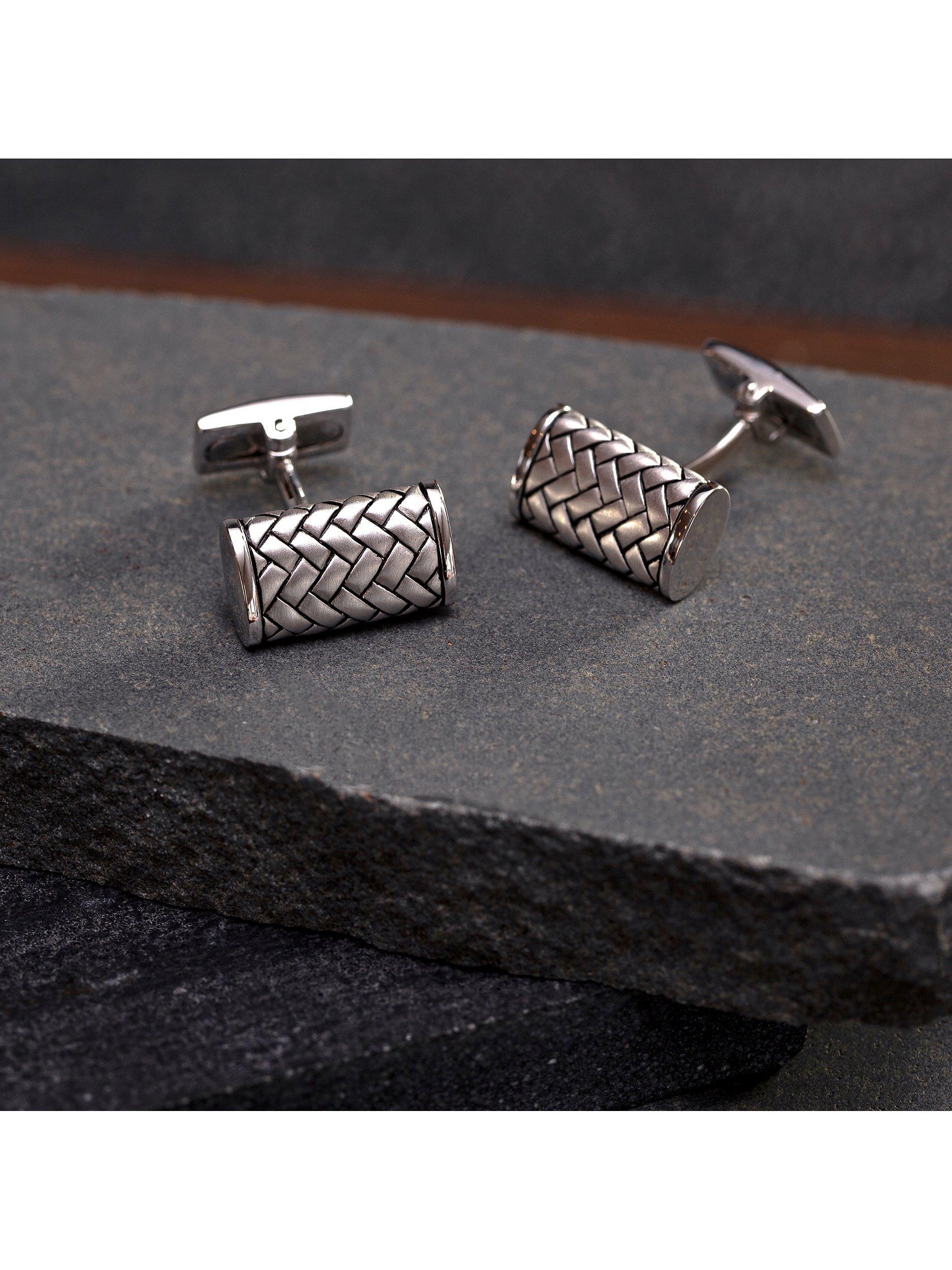 A stylish herringbone pattern is engraved in sterling silver in these Hoxton London cufflinks. They are completed with a rhodium-plated finish that helps prevent scratches.