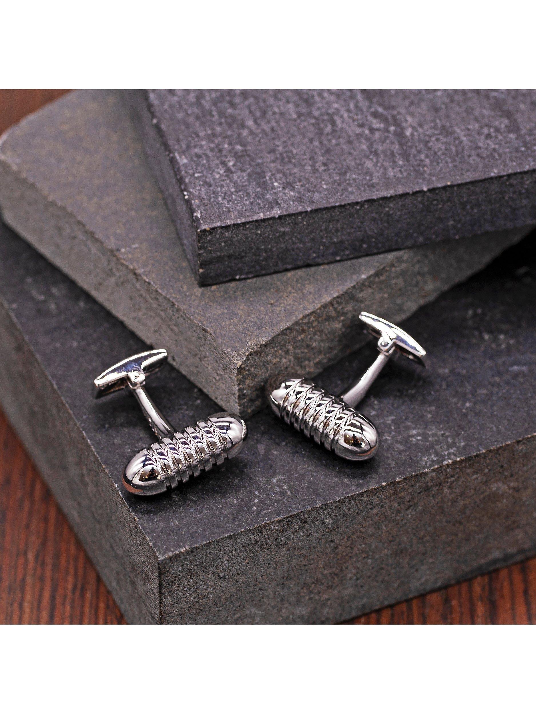 Sterling silver cufflinks from Hoxton London, in a contemporary ribbed bullet design.