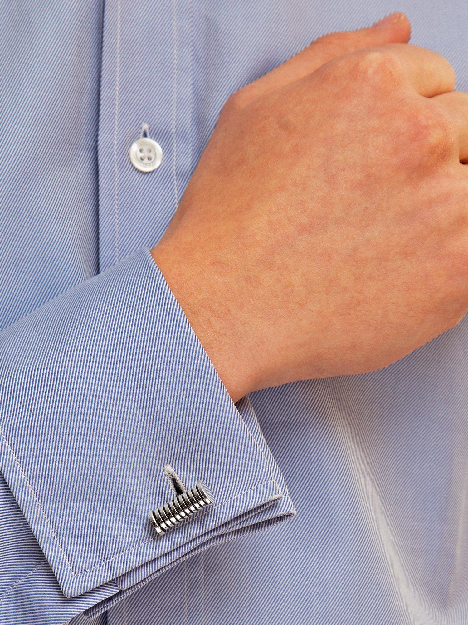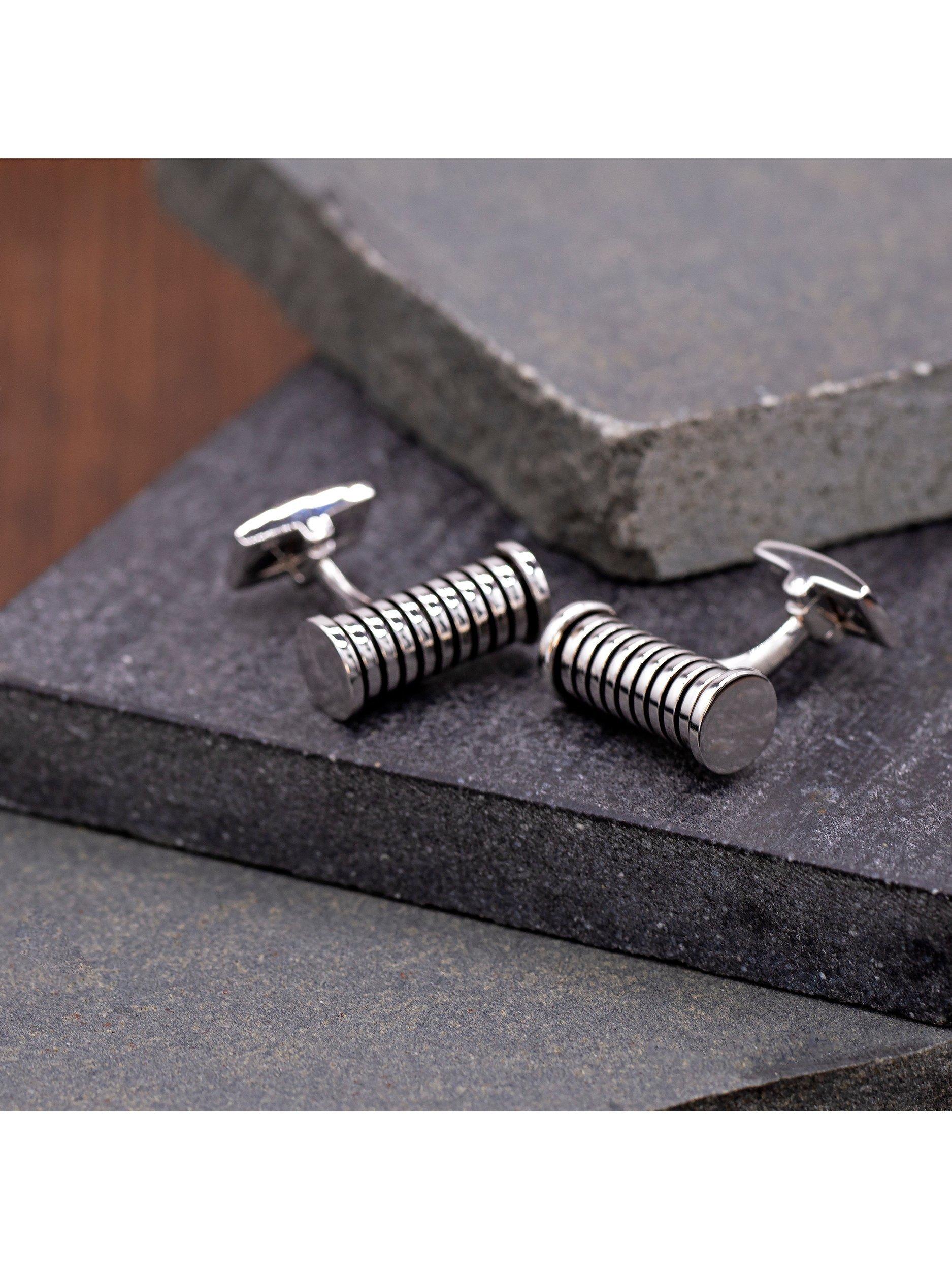 Hoxton LondonStriped Cylindrical Cufflinks, Silver