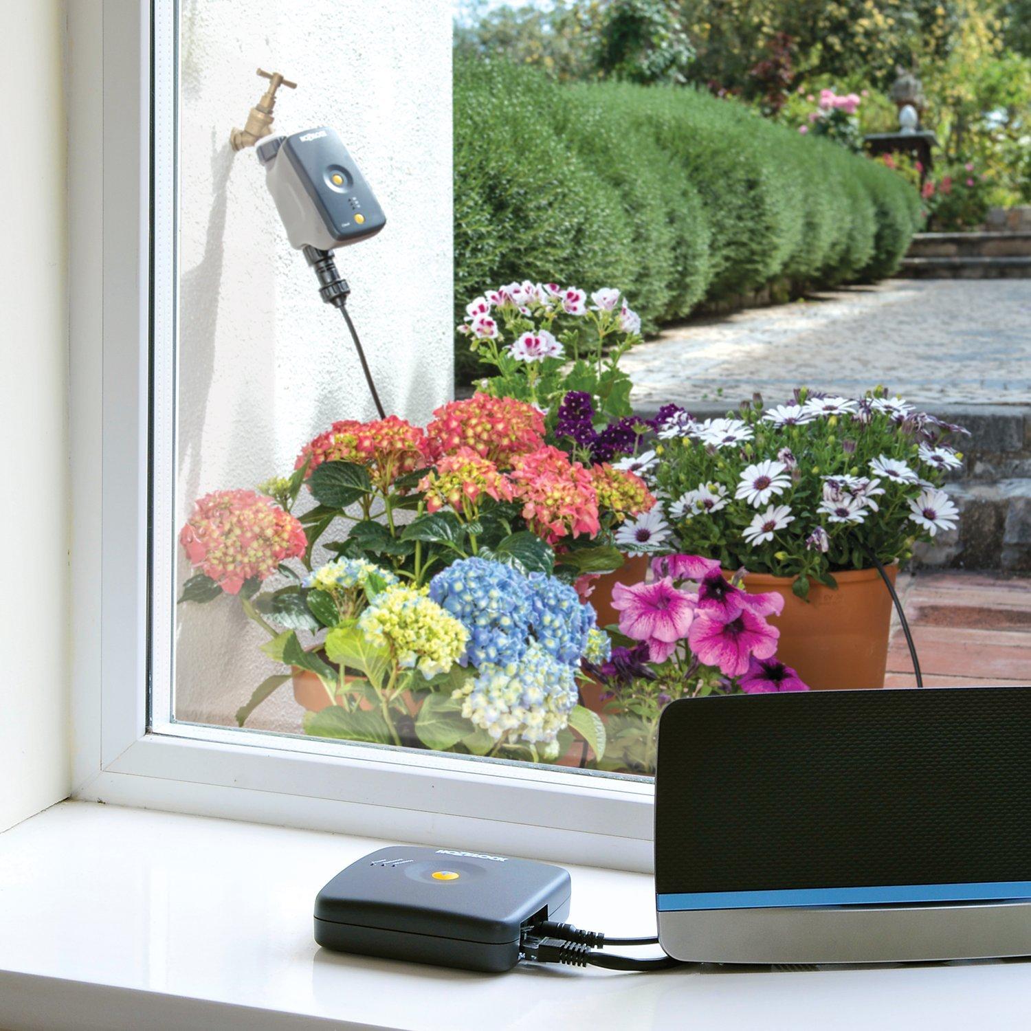 The hub plugs directly into your internet router supplying a secure connection and signal strength of up to 50m. Each hub can support up to four remote tap units for ultimate control over your garden watering.