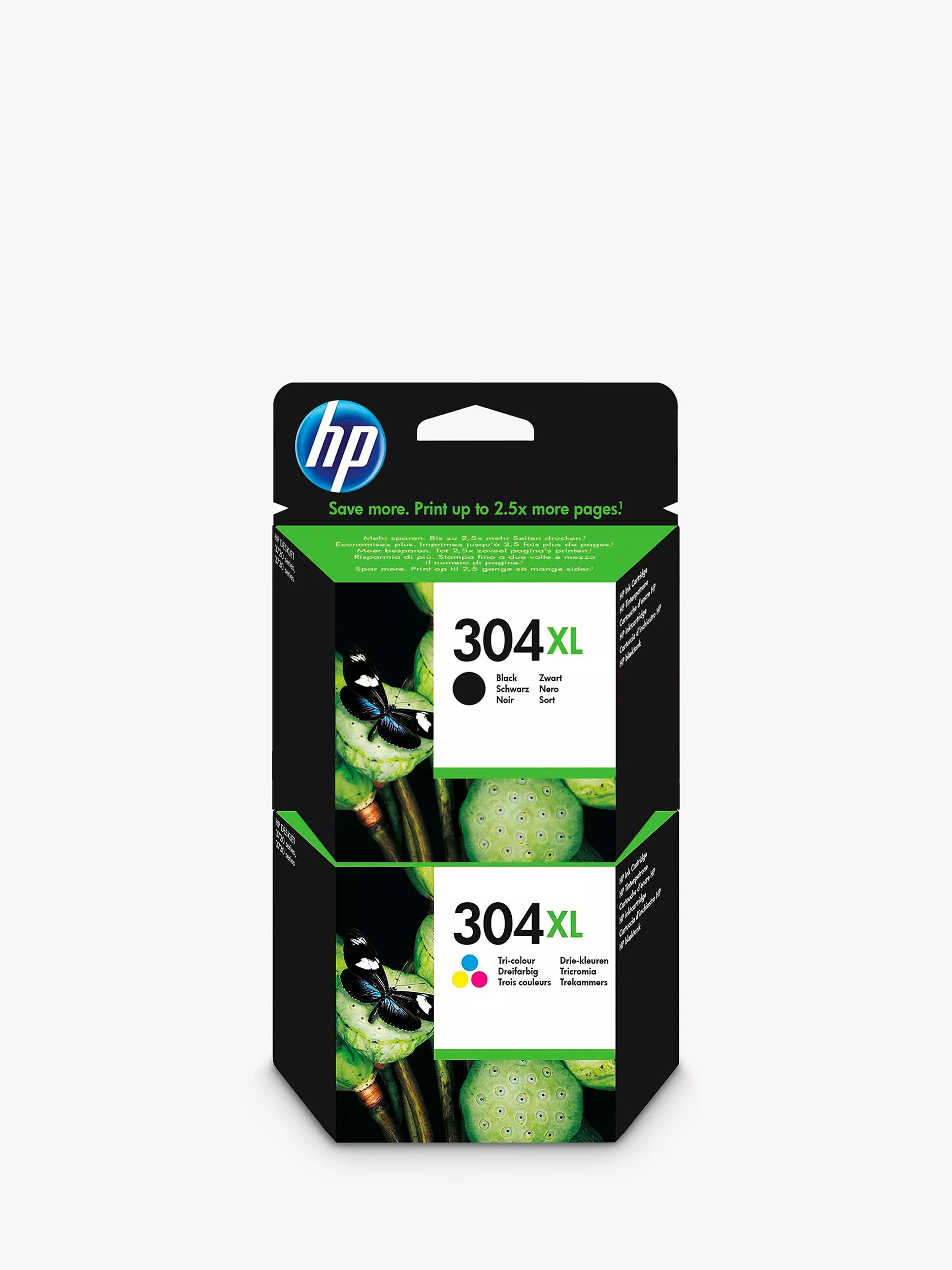 Print high-quality documents with this double pack of reliable HP 304 XL High Yield Original Ink Cartridges, featuring both Black and Tri-Colour. The brand's commitment to sharp, long-lasting prints translates wonderfully to these affordable cartridges. They also feature smart low-ink alerts so you can keep on top of your printing. XL high yield cartridges go further so you can print longer.