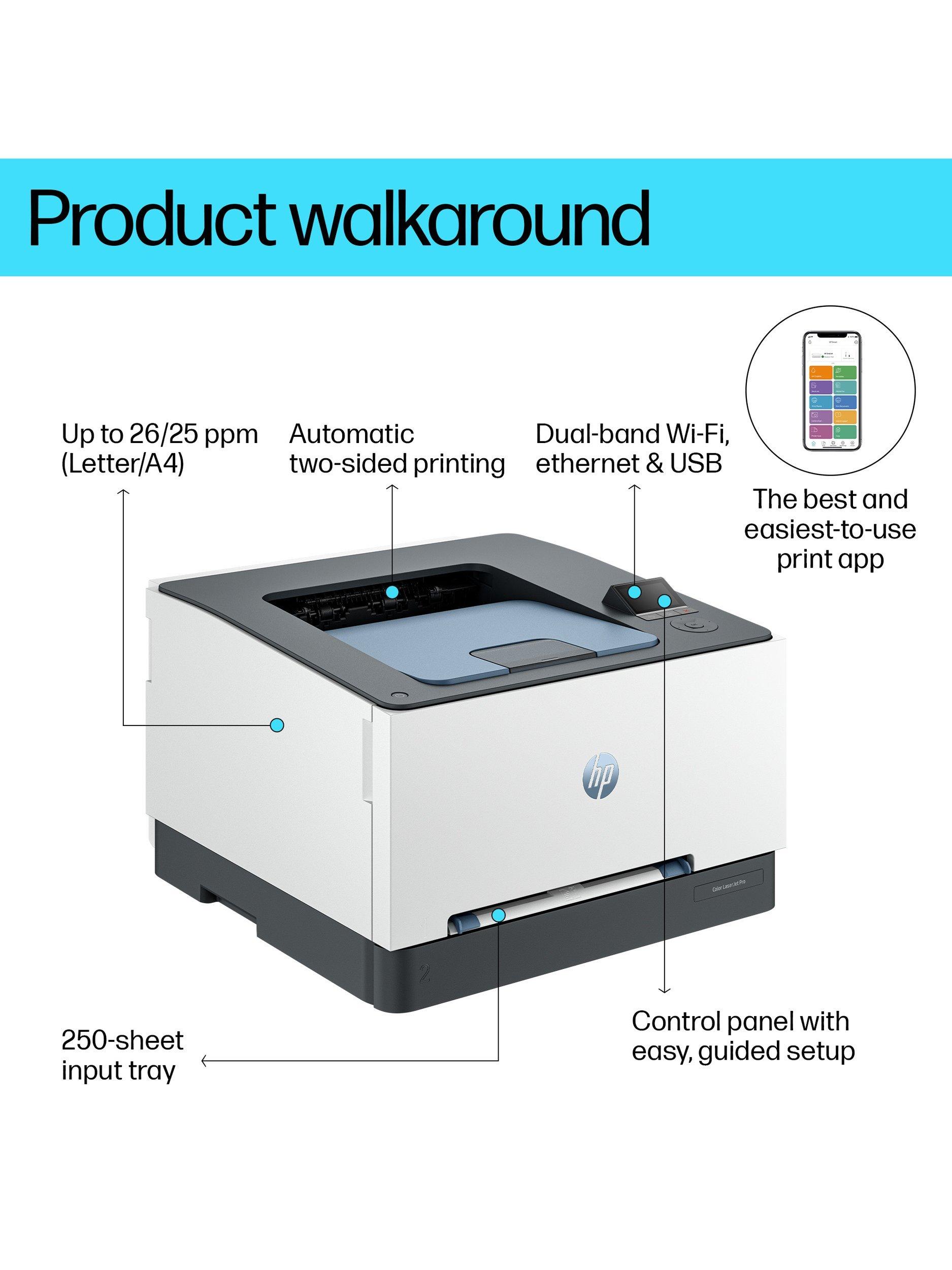 - 499R0F HP Color LaserJet Pro 3202dw, Power cord, Toner cartridge, User Guide, Flyers