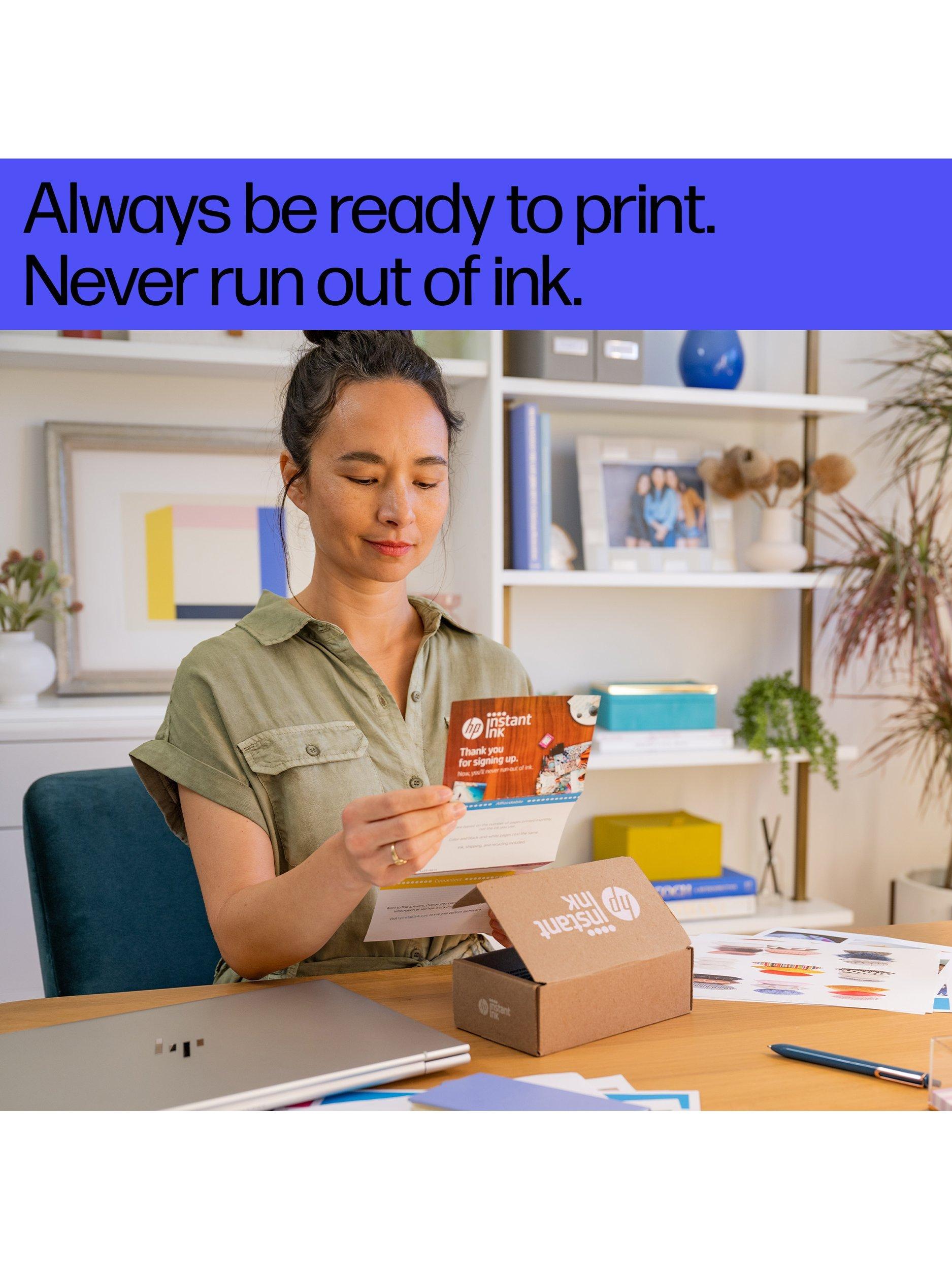 HP Instant Ink is a replacement ink service that saves you time and money ensuring that you always have ink before you need it. HP Instant Ink eligible printers that are connected to the internet send a message to HP when you need new cartridges and they'll be shipped directly to you. Designed to ensure that you're paying for the number of pages you print as opposed to the ink itself, it'll help you get the most out of your printer.