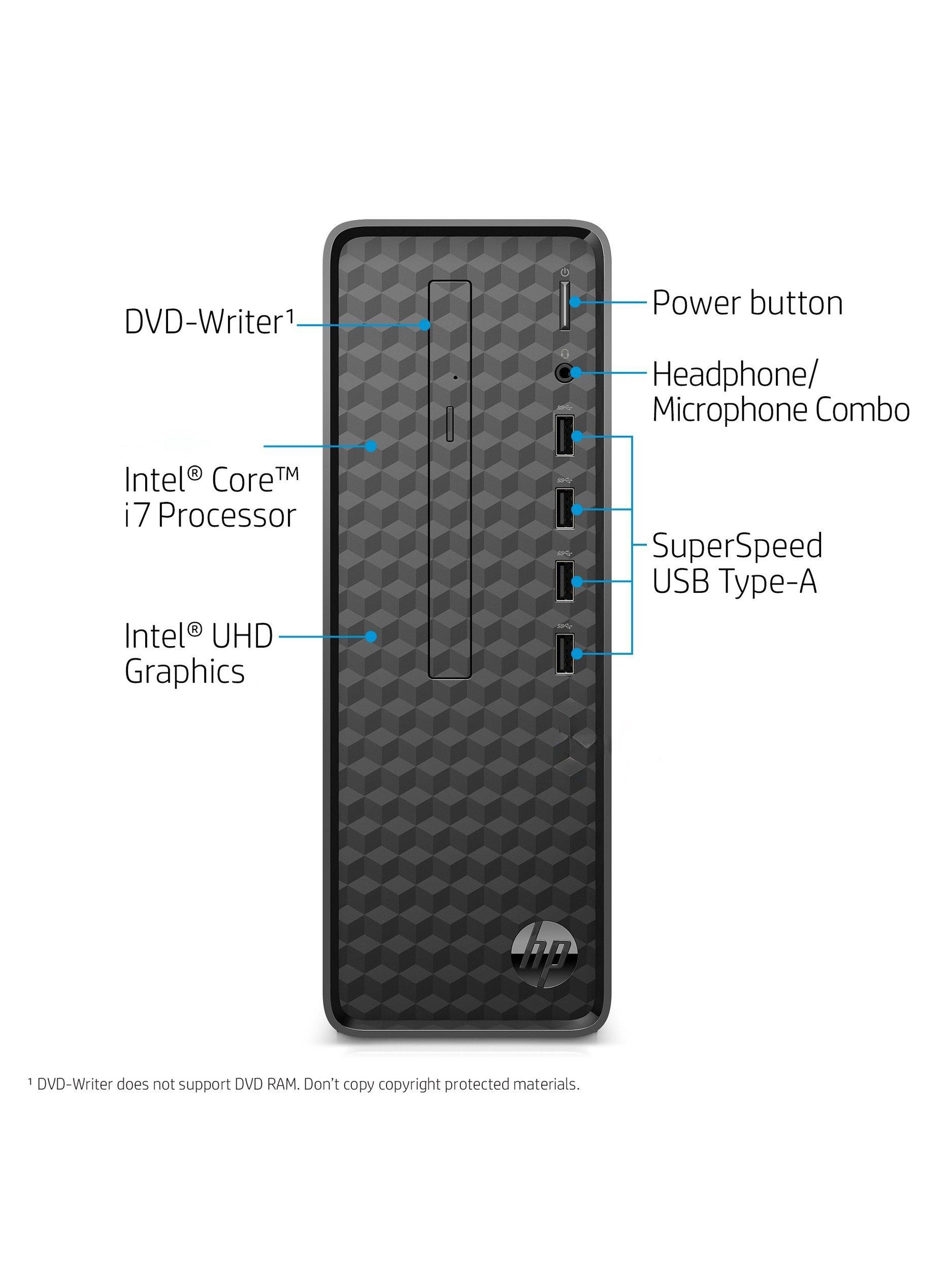HPSlim S01-pF2007na Desktop PC, Intel Core i7 Processor, 8GB RAM, 512GB SSD, Dark Black