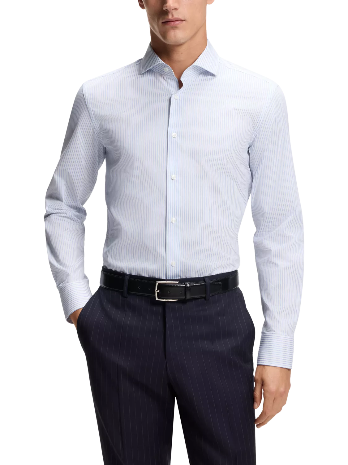This striped shirt from BOSS comes in a sharp slim fit. It moves with you from meeting to evening, while mostly importantly keeping you comfortable.