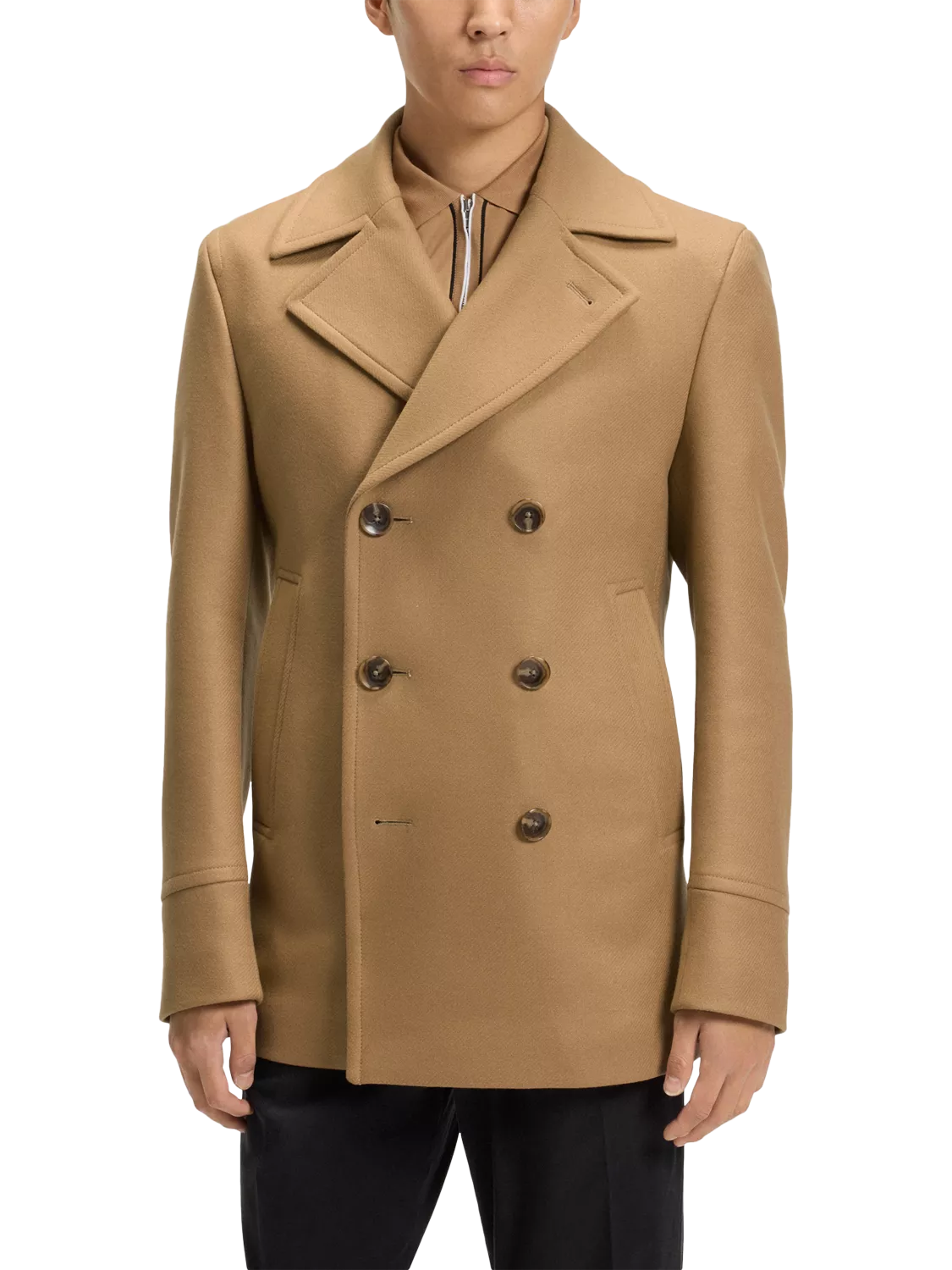 This BOSS coat keeps you sharp on busy mornings and smart at evening catch-ups. Thoughtfully crafted in a wool blend, it delivers warmth and comfort, keeping your day stylish and hassle-free whatever your agenda.